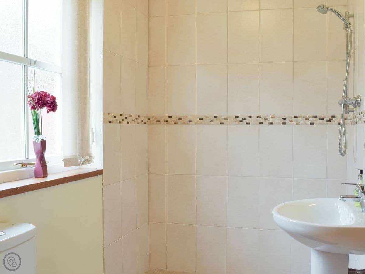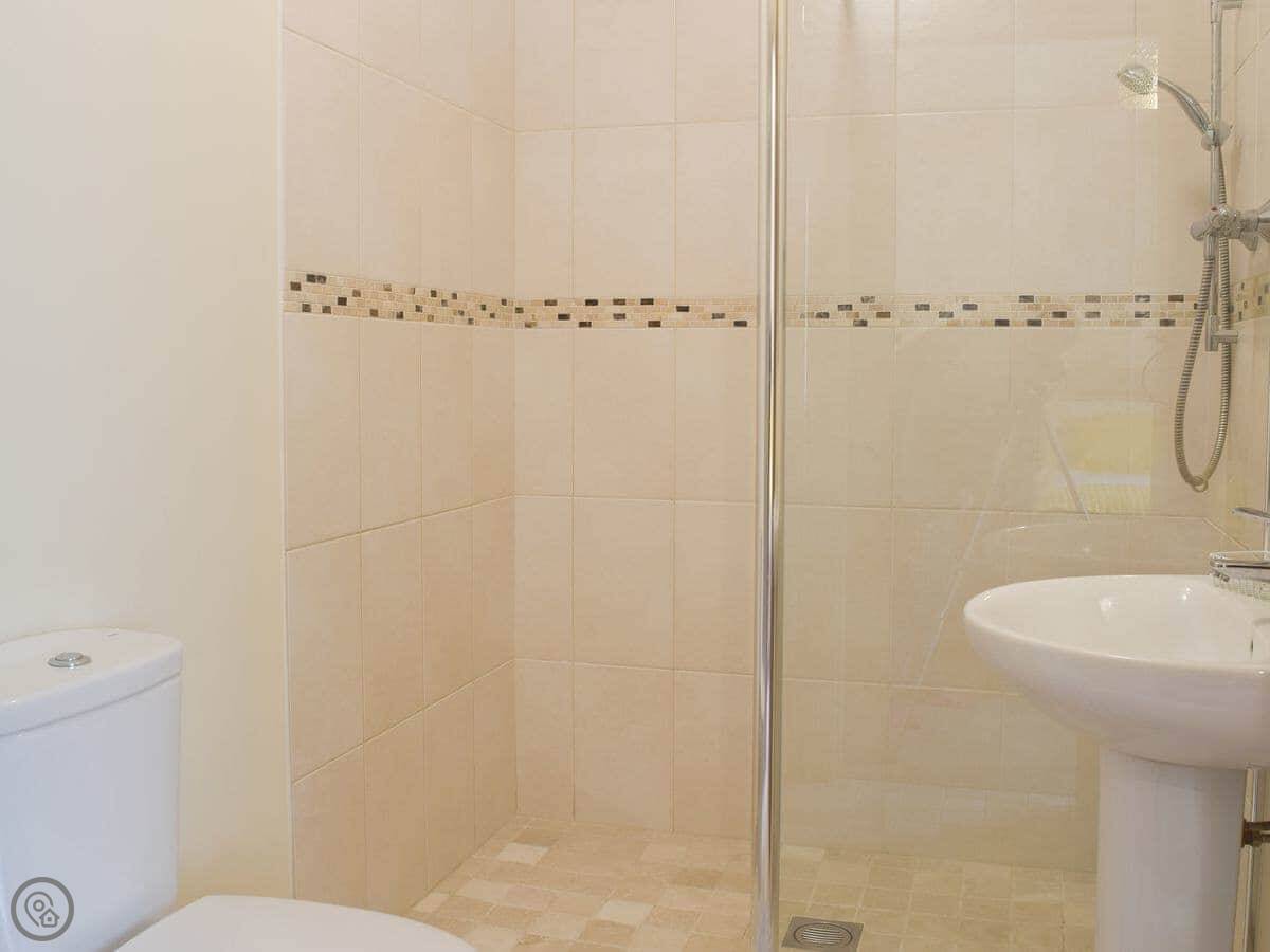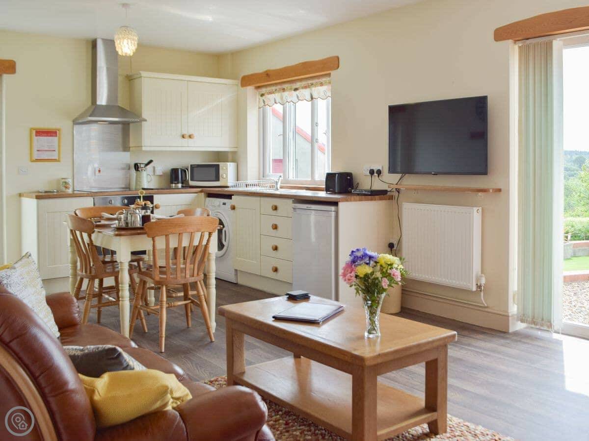 It sleeps four. Two bedrooms, both with their own bathrooms. It's got a 4 Star rating so the fixtures and fittings are good. The whole downstairs is one open plan room with a galley kitchen.
