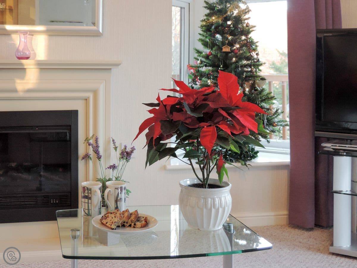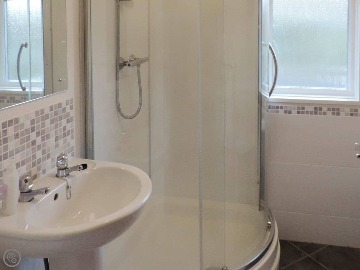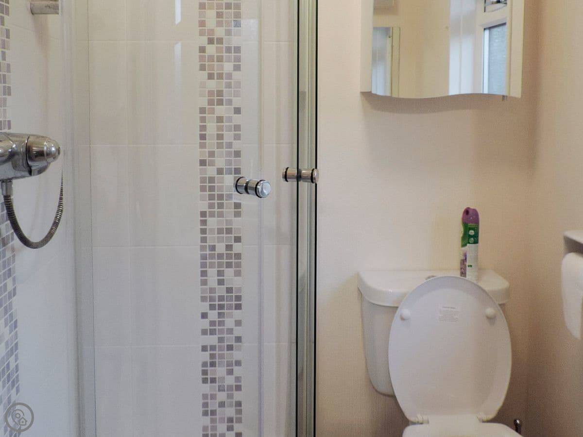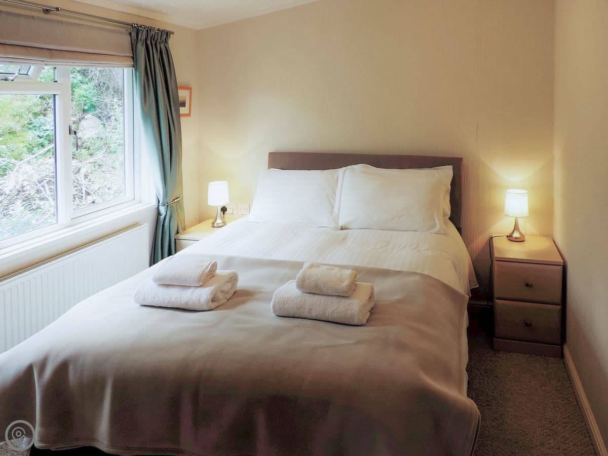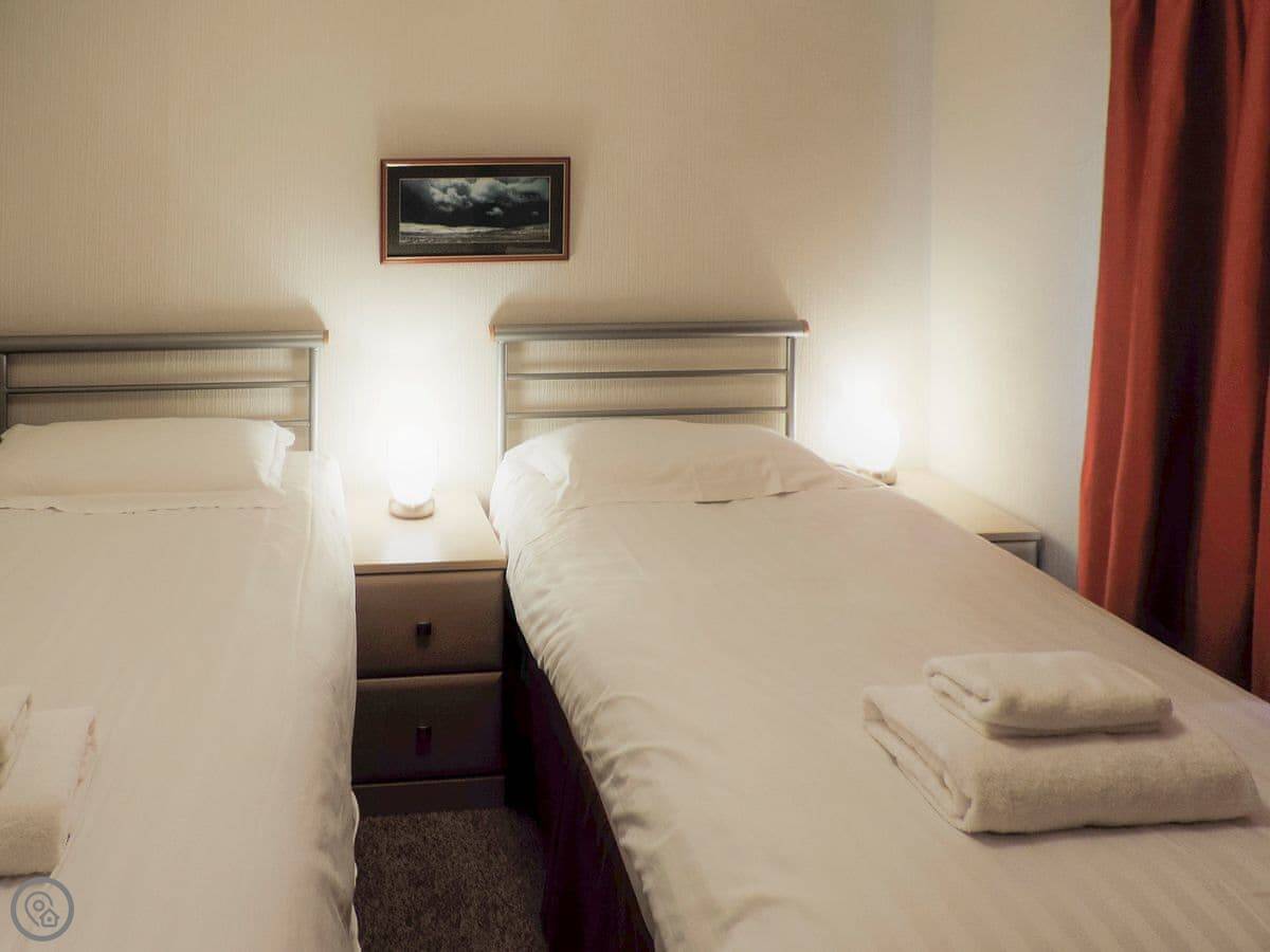 The lodge sleeps four. Two bedrooms, two bathrooms. It's got a 4 Star rating, which means it's comfortable and well-equipped. Everything is on one level, which is handy.