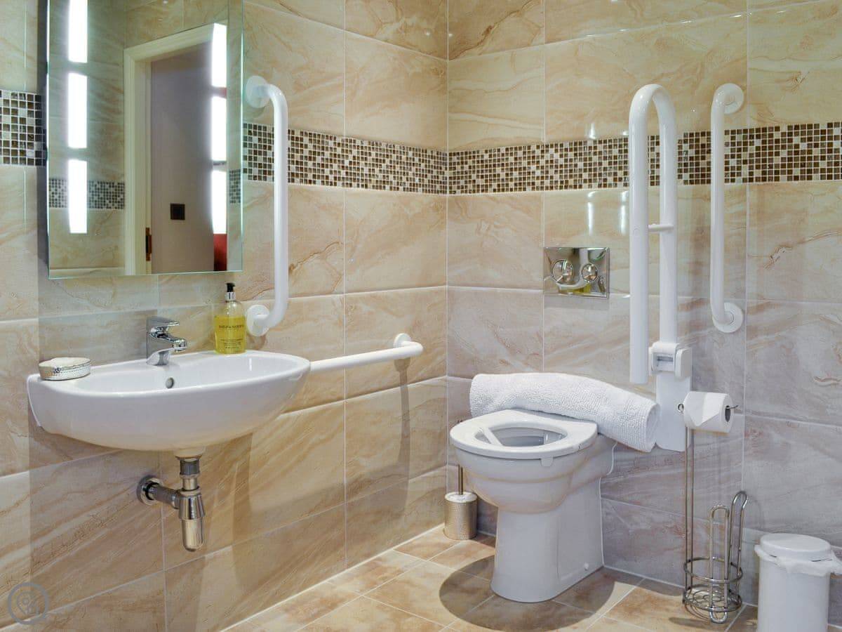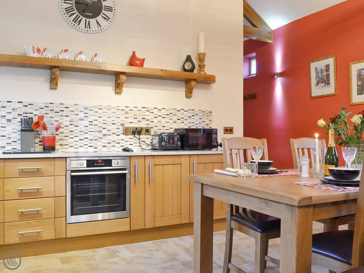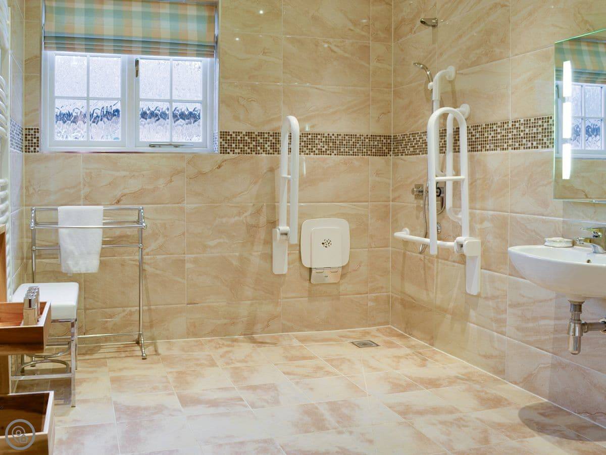 It's for two people. One bedroom, one bathroom. It's got a 5 Star rating. It's very well finished and comfortable. The living area is all open plan, with a wood burner. The kitchen is good if you like to cook. The bedroom has a kingsize bed. The wet room is big, with a shower seat and grab rails.