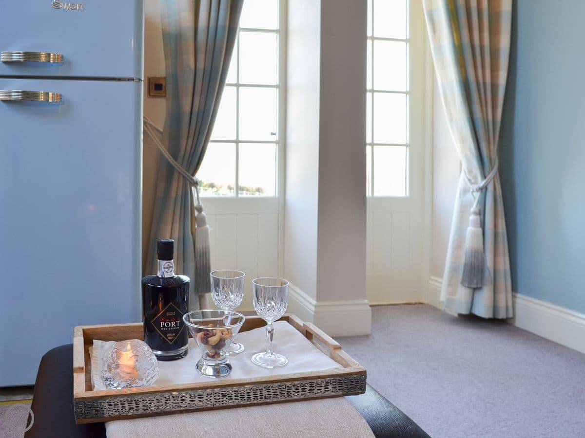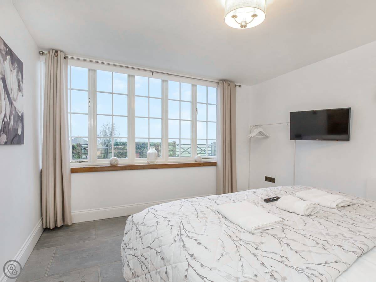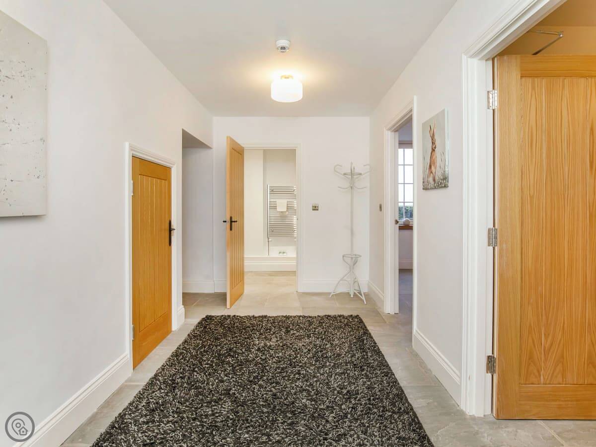 It's on a private drive off a quiet lane, near the village of Holtby. The views from the windows are over fields. You can walk to a pub in about twenty minutes. A shop is two miles away.