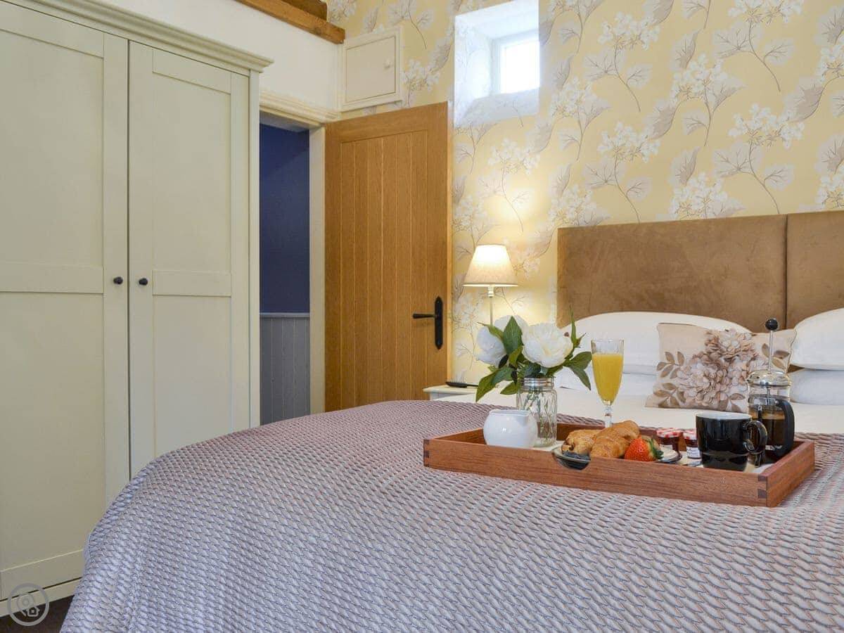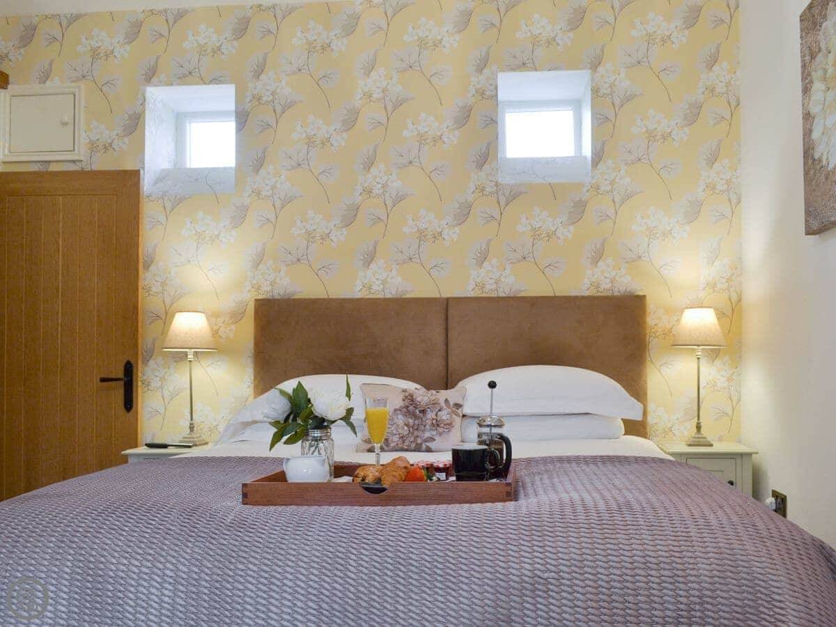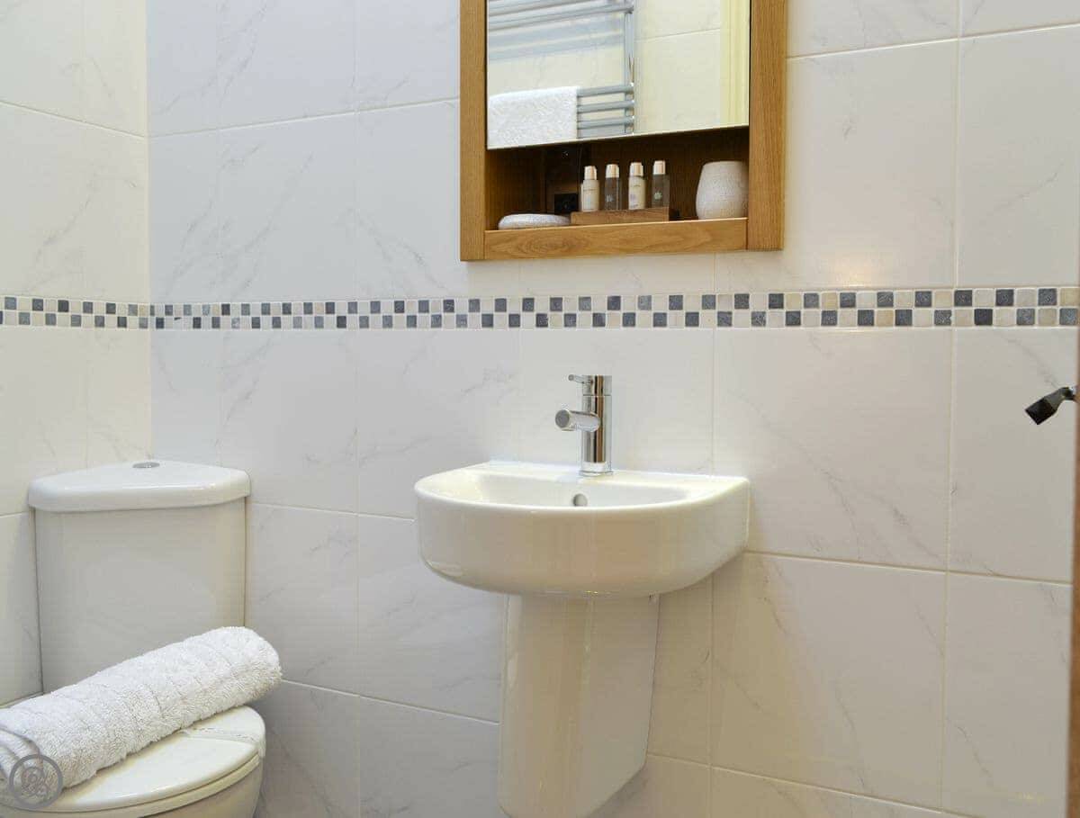 It sleeps four. Two bedrooms, two bathrooms so no queueing. One bedroom has its own en-suite. It's got a 5 Star rating. That means it's more comfortable than most, things like good beds and a decent kitchen. It feels new.