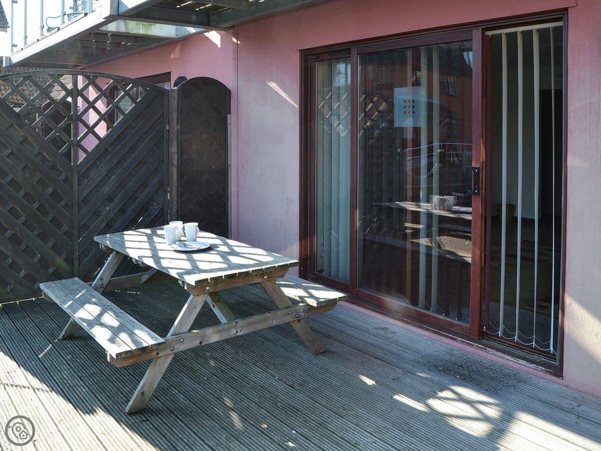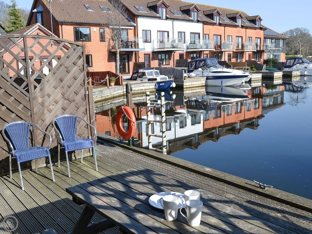 Kestrel Cottage is on the river in Horning. It's part of a row of houses in a marina, right where it joins the River Bure. The living area is upstairs to get the view.
