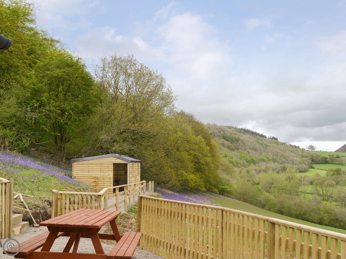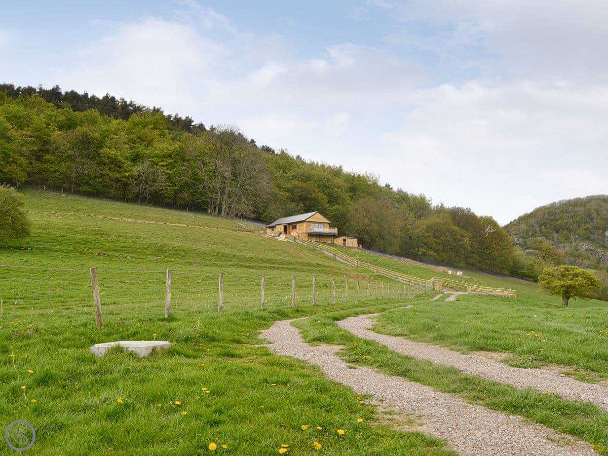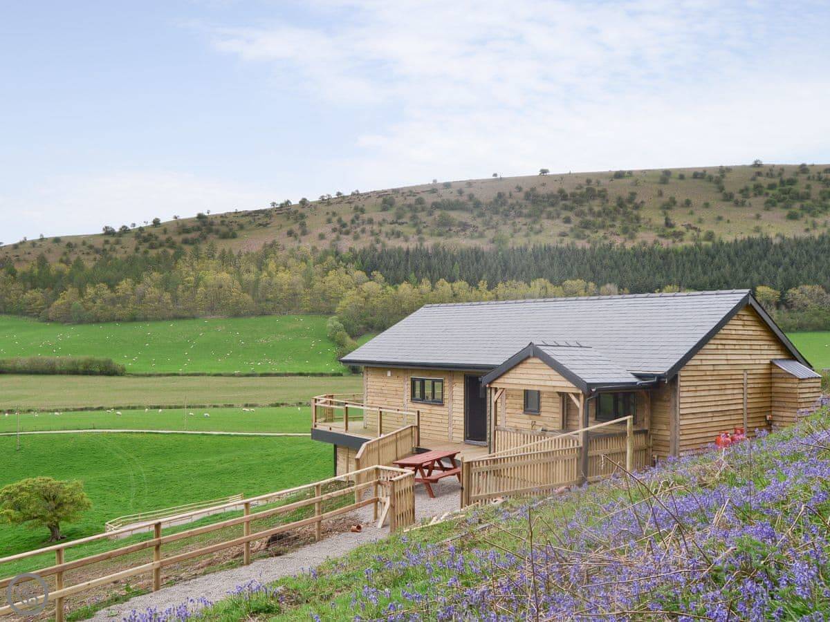 This is Offa's Dyke Lodge. It's on our farm in Stanner, up in the hills near the English border. You're on a working farm here, so there are sheep and cattle in the fields. The views from up here are very good, looking out over the valley.