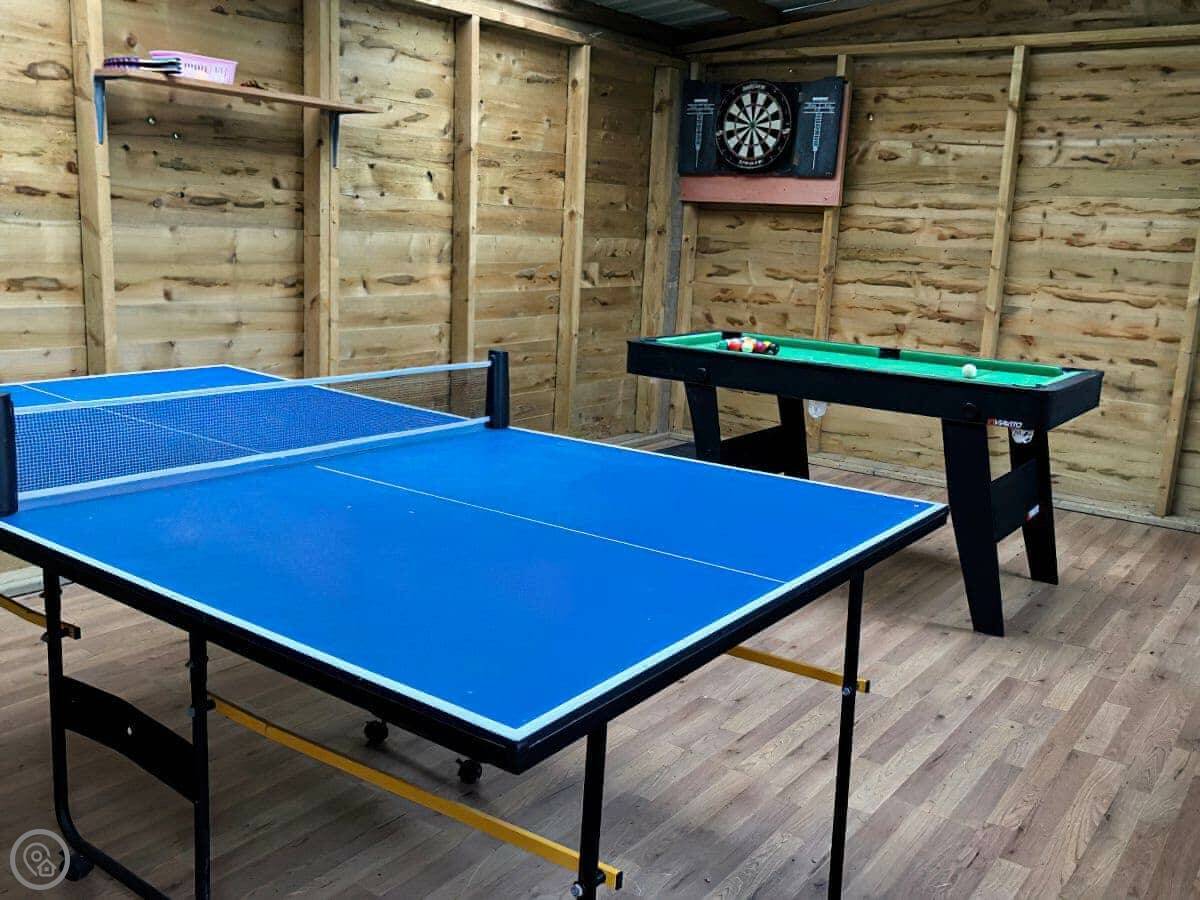 There's a games room on the farm that guests can use. It's shared with the other two holiday lodges here. You can book all three together if you've got a bigger group.