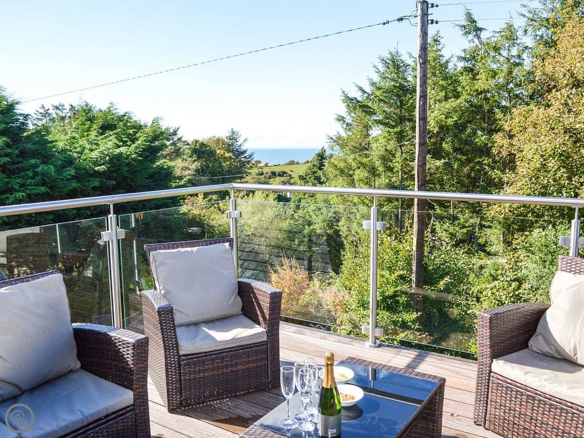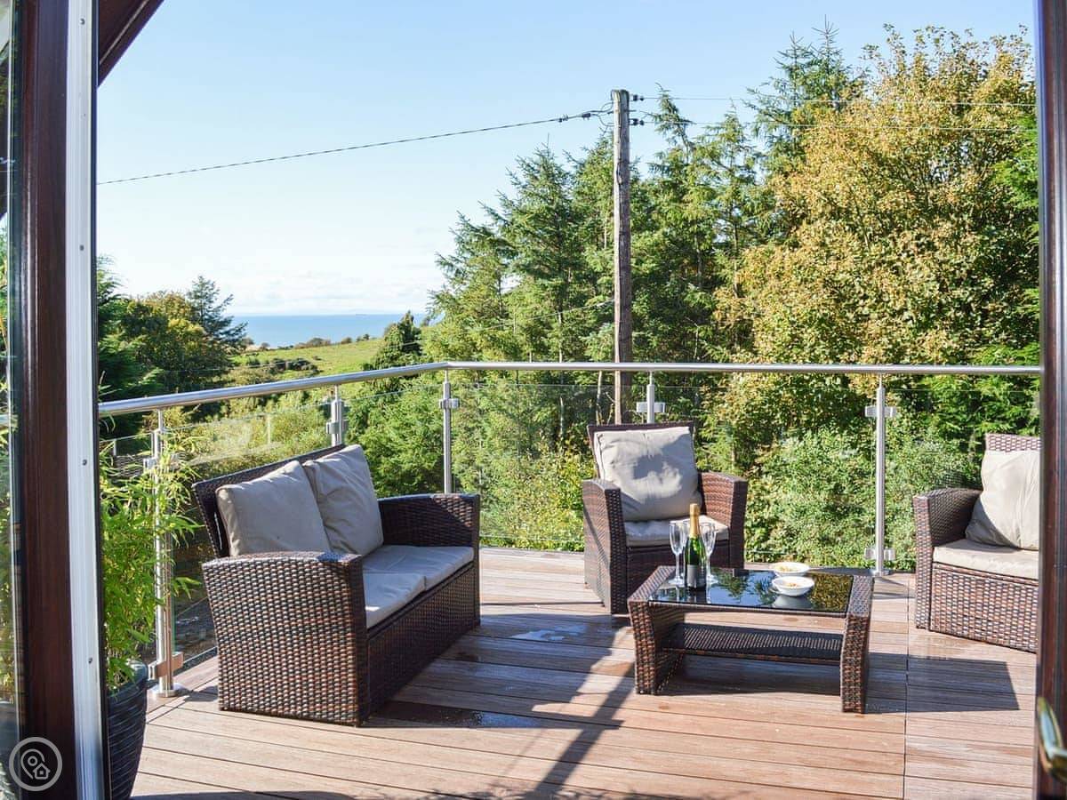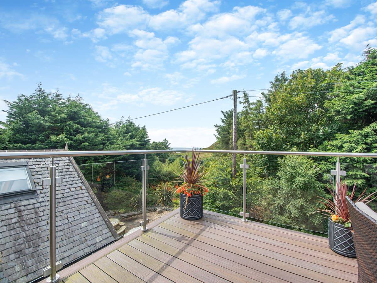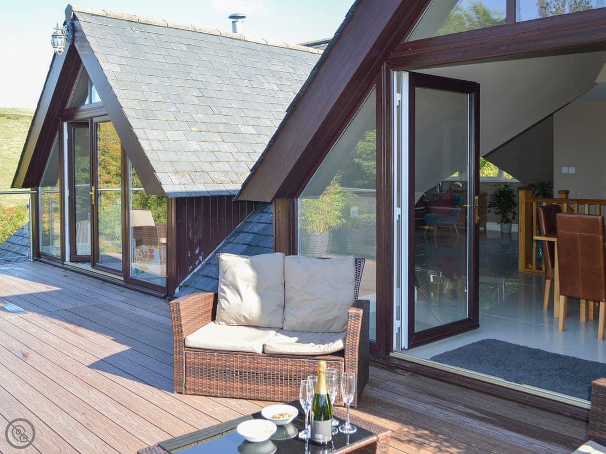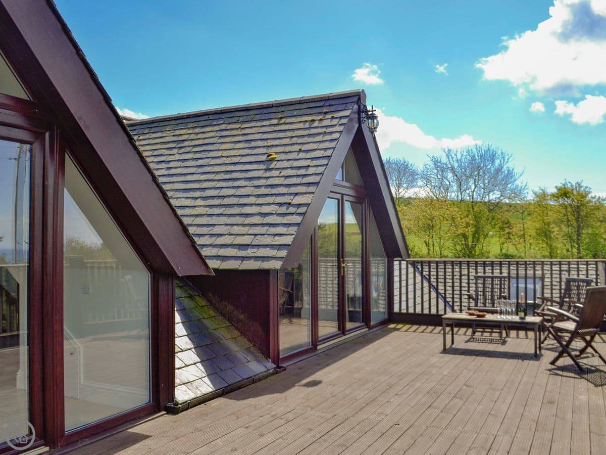 It's got a 4 Star rating. It's comfortable and well-equipped. The main living area is upstairs, which is a bit different. It opens out onto a big deck. The view from there is good, you can see the sea. The stairs inside are steep and a bit narrow in places, just so you know.