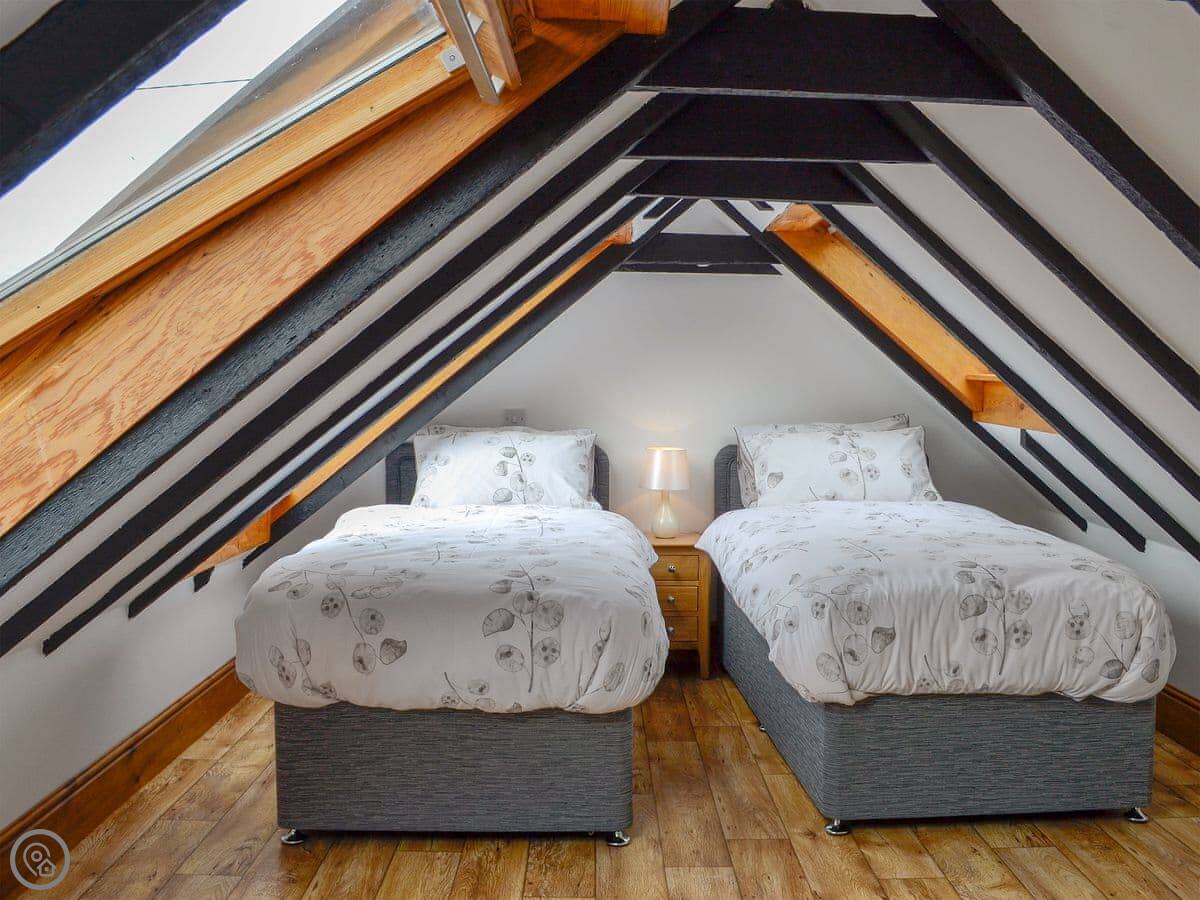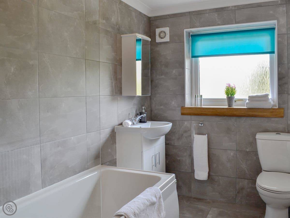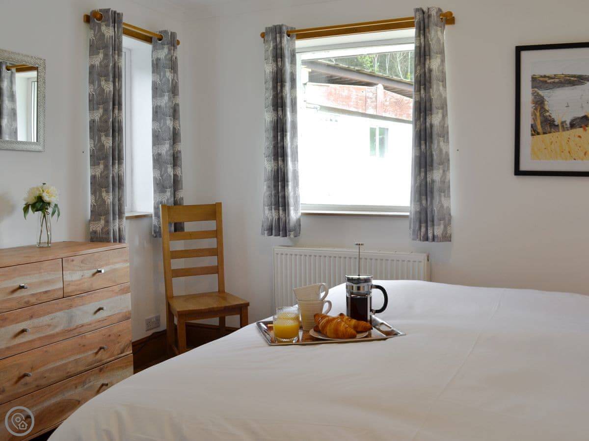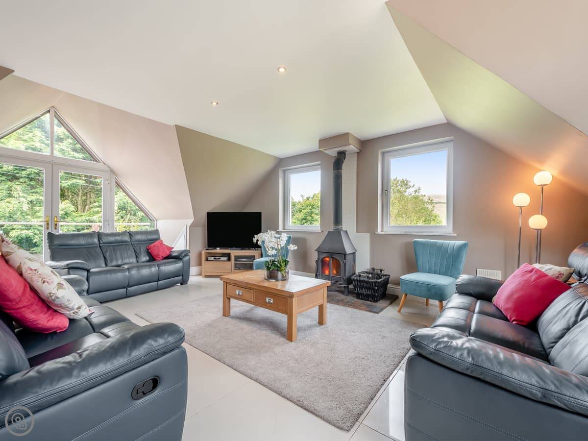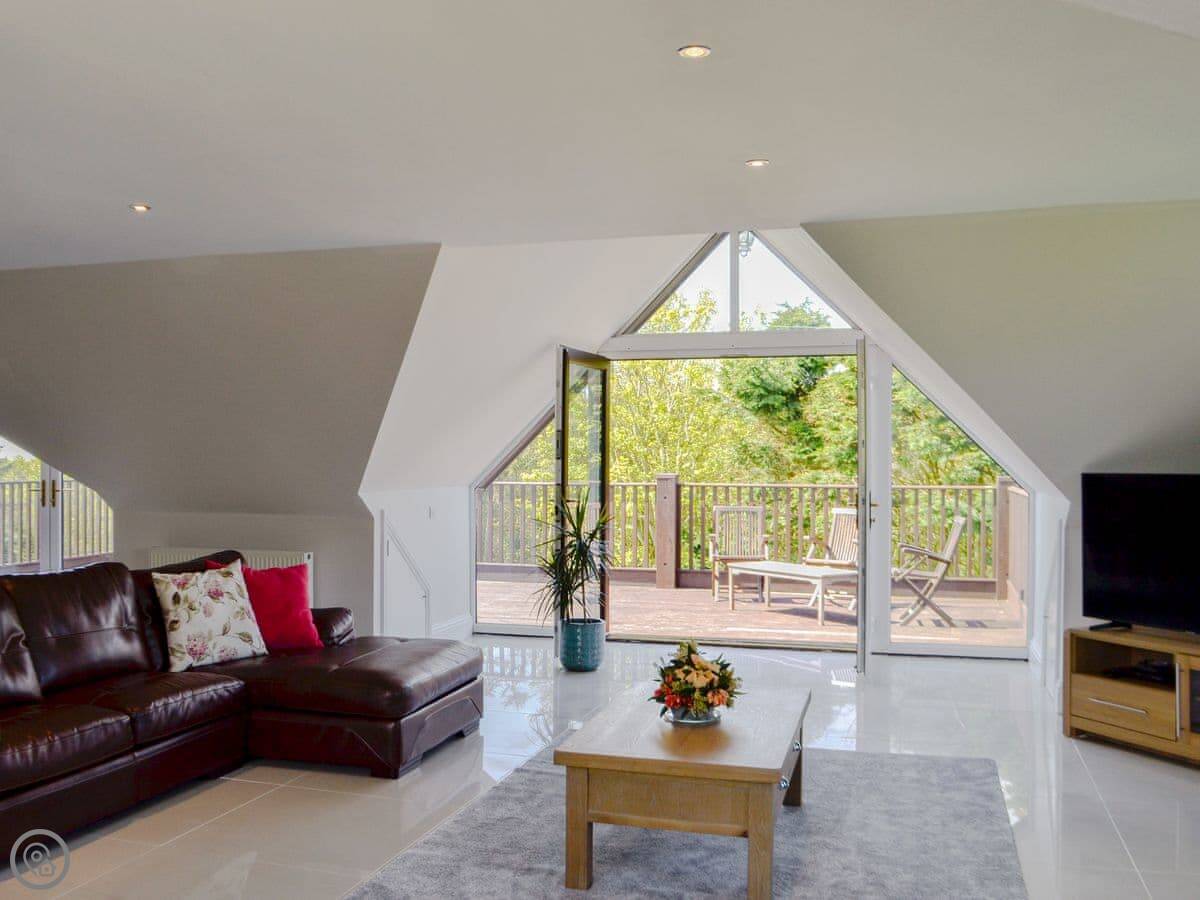 It's got a 4 Star rating. It's comfortable and well-equipped. The main living area is upstairs, which is a bit different. It opens out onto a big deck. The view from there is good, you can see the sea. The stairs inside are steep and a bit narrow in places, just so you know.