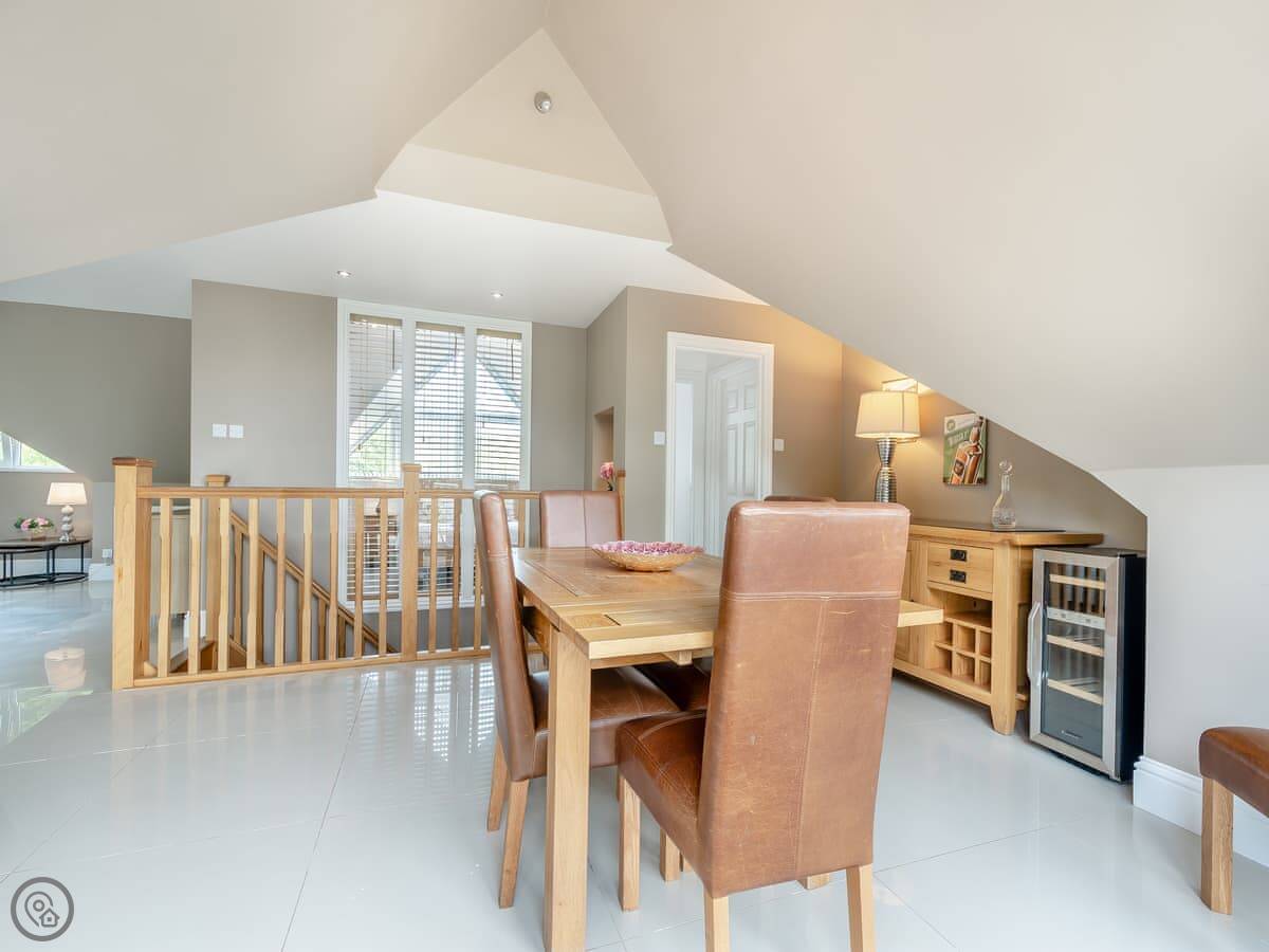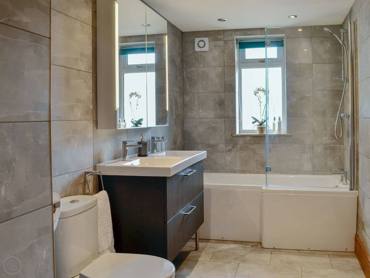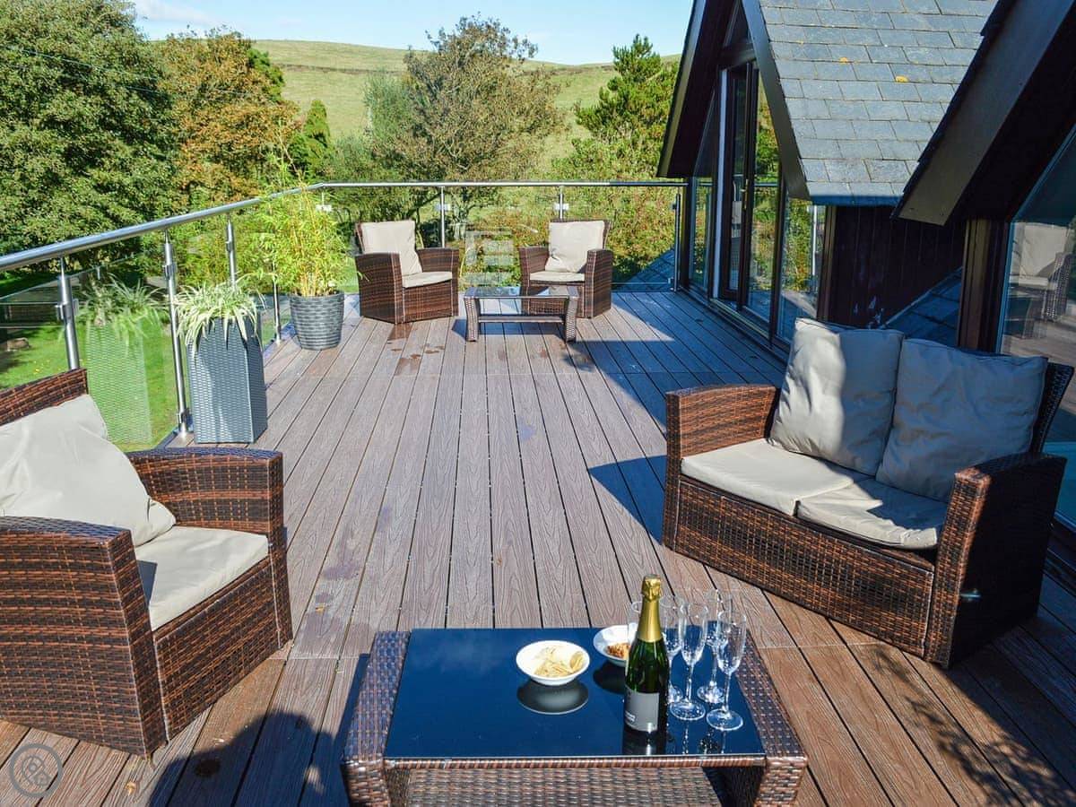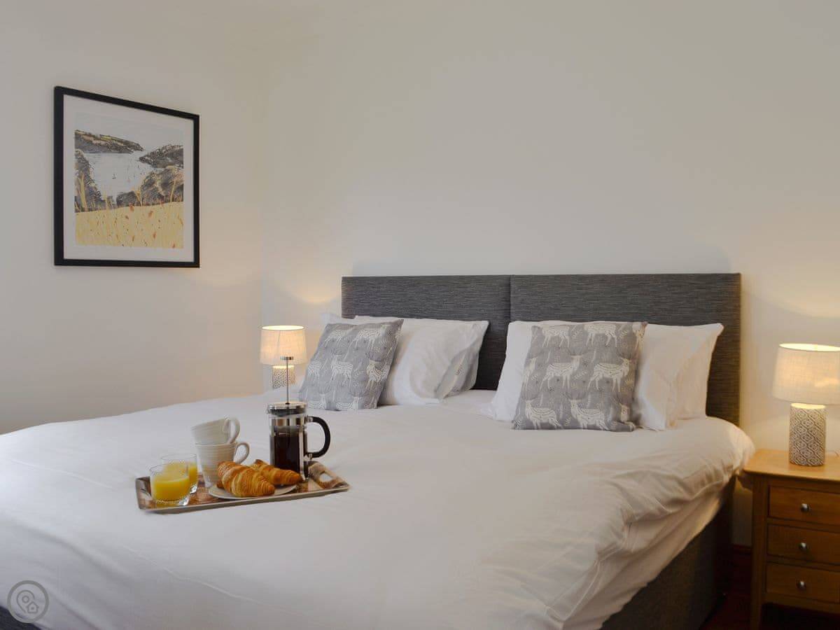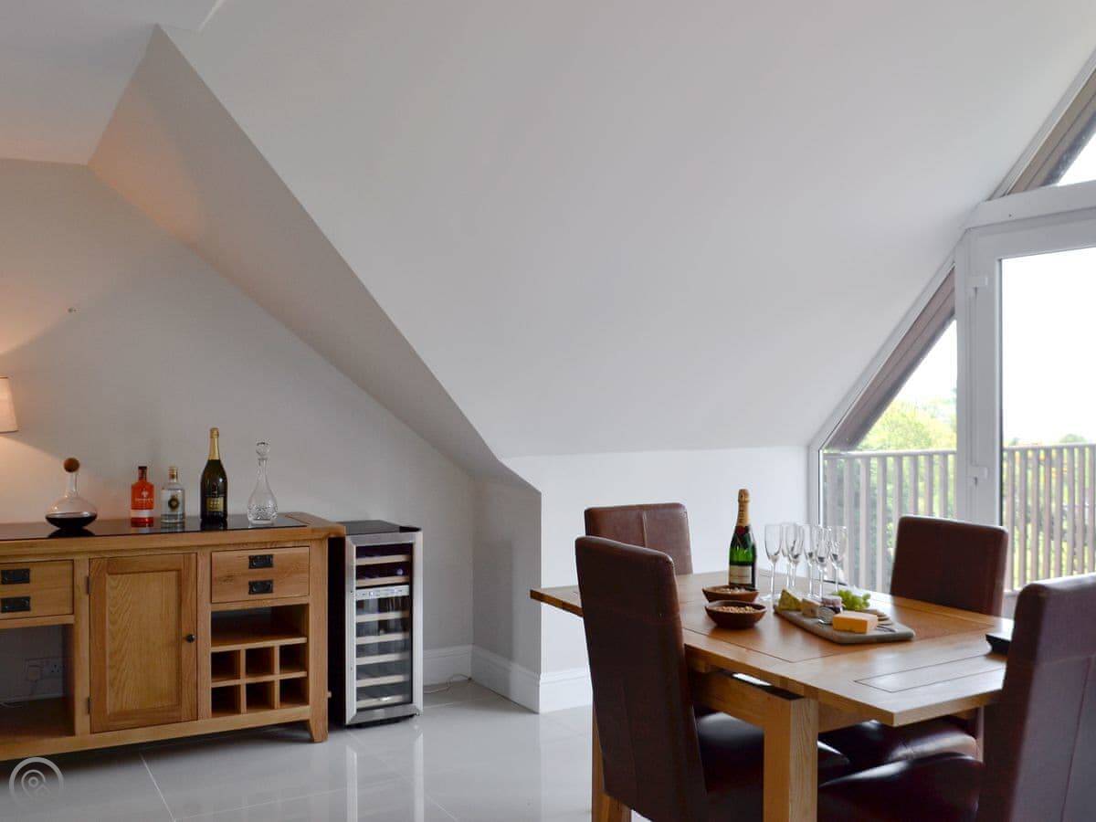 It's got a 4 Star rating. It's comfortable and well-equipped. The main living area is upstairs, which is a bit different. It opens out onto a big deck. The view from there is good, you can see the sea. The stairs inside are steep and a bit narrow in places, just so you know.