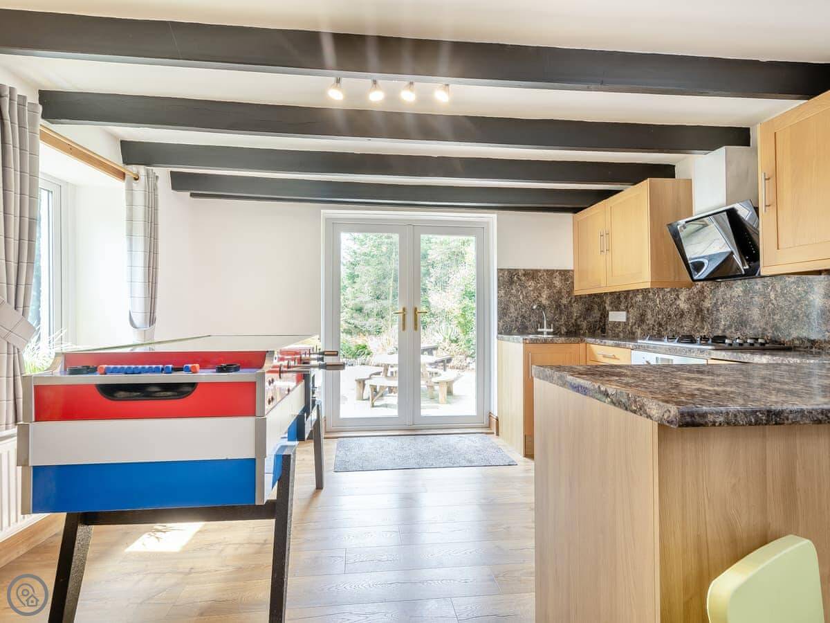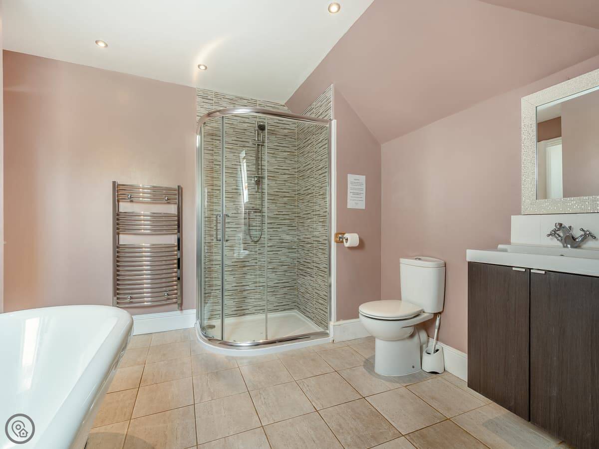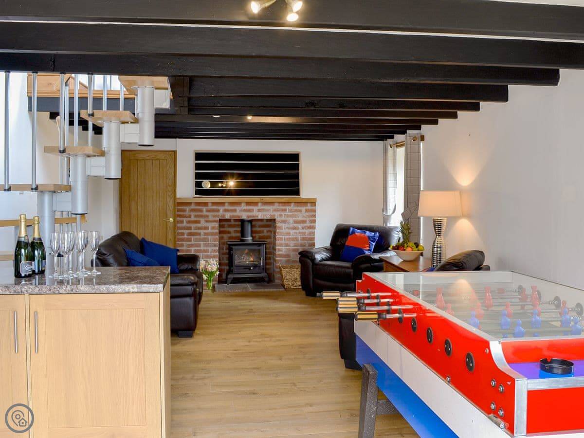 The garden is yours to use. There's parking right there. It has the things you'd expect: washing machine, dishwasher, WiFi, and a woodburning stove for cooler evenings. It says luxury, which means it's in good order and feels a bit more spacious. Bedding and towels are included. You can bring up to two dogs.