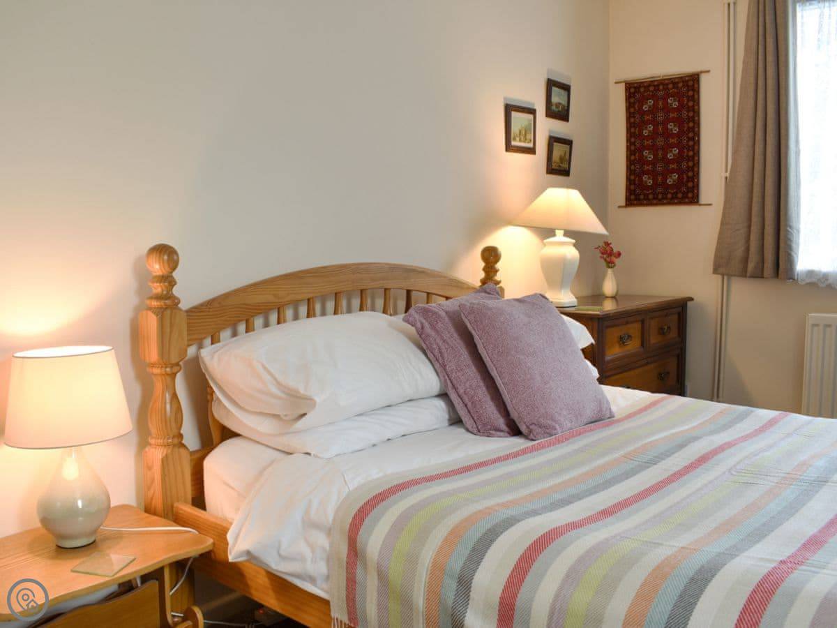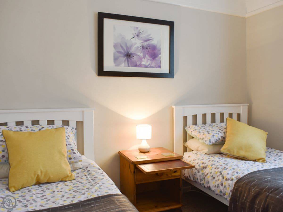 It sleeps four, two bedrooms, one bathroom with a shower. It’s got a 4 Star rating. That means it’s well-equipped and comfortable. Everything’s included – bedding, towels, WiFi. There’s a washing machine and a cot if you need it. Parking is right outside.