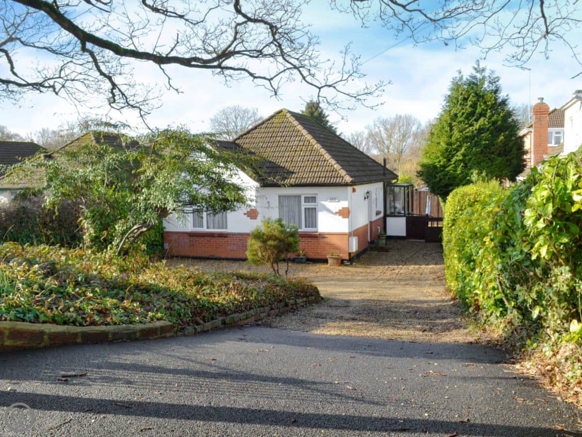 This is Oak Lodge in Bournemouth. It’s a bungalow, so all on one level, which is handy. Detached, so you won’t hear the neighbours. It’s on a normal residential street, not out in the countryside. The front doesn’t look like much, but the back garden is a good size and completely private. It gets the sun in the afternoon.