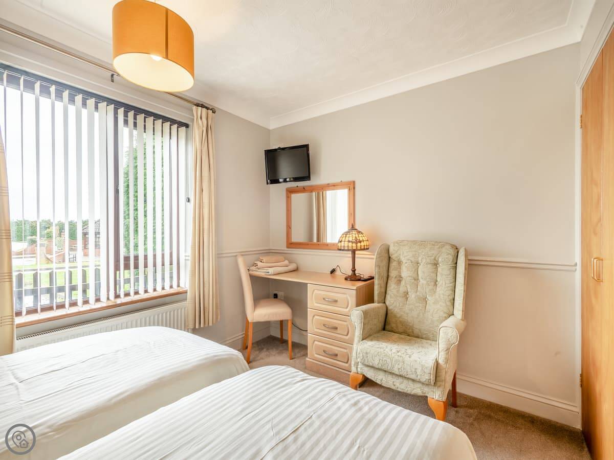 It sleeps two. One bedroom, one bathroom. It's got a 4 Star rating. It's clean and comfortable. There are some aids for mobility issues in here. There's also an interconnecting door so you can book it together with the place next door, Barn Owl, if you're a bigger group.