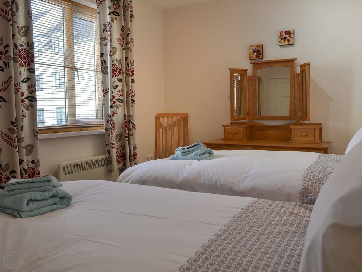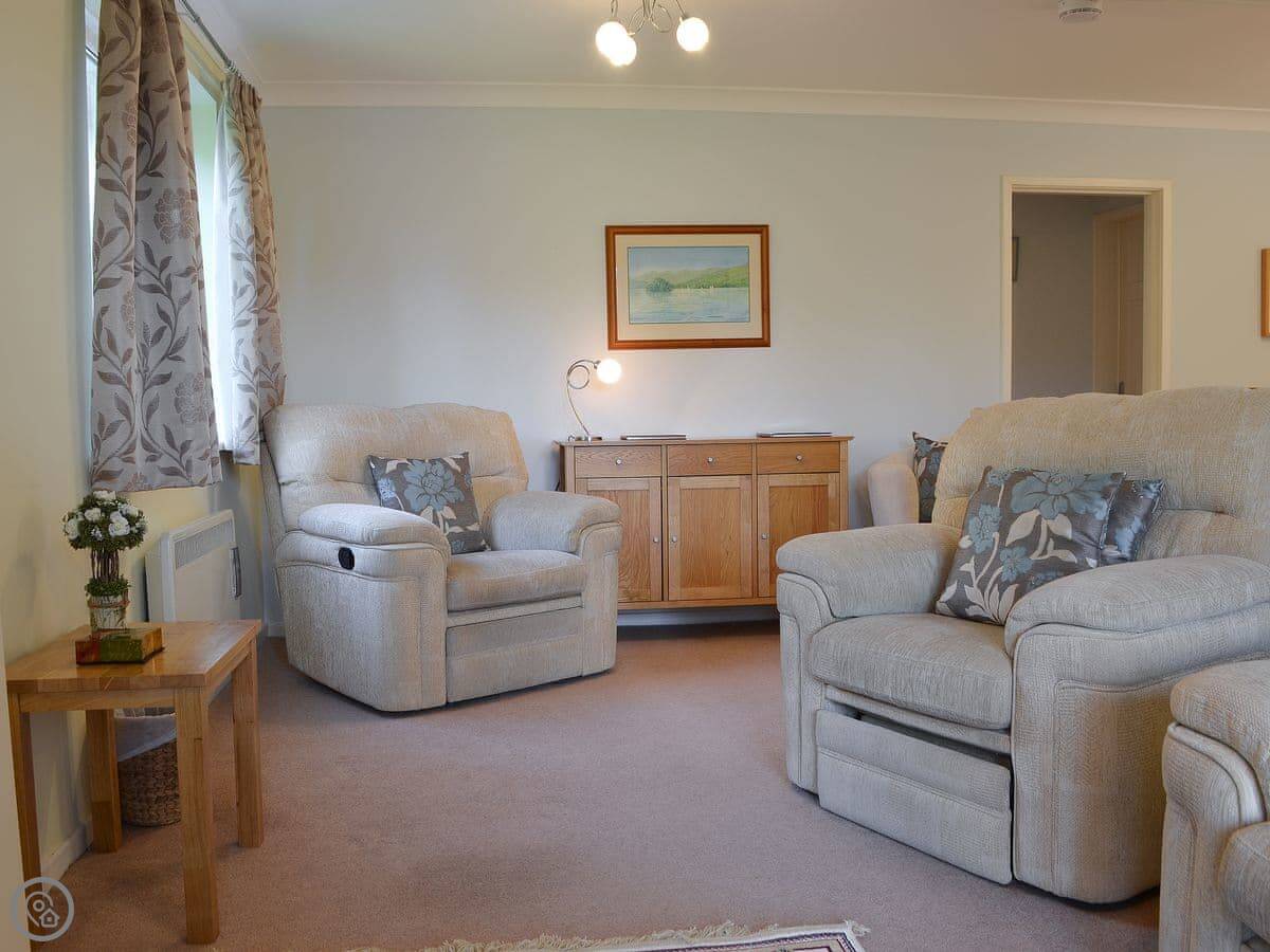 The apartment's in Bowness on Windermere, at the Quarry Rigg development. It's one of a group of apartments there. You get a garage with it, which is useful for a car or for putting bikes and walking gear in.