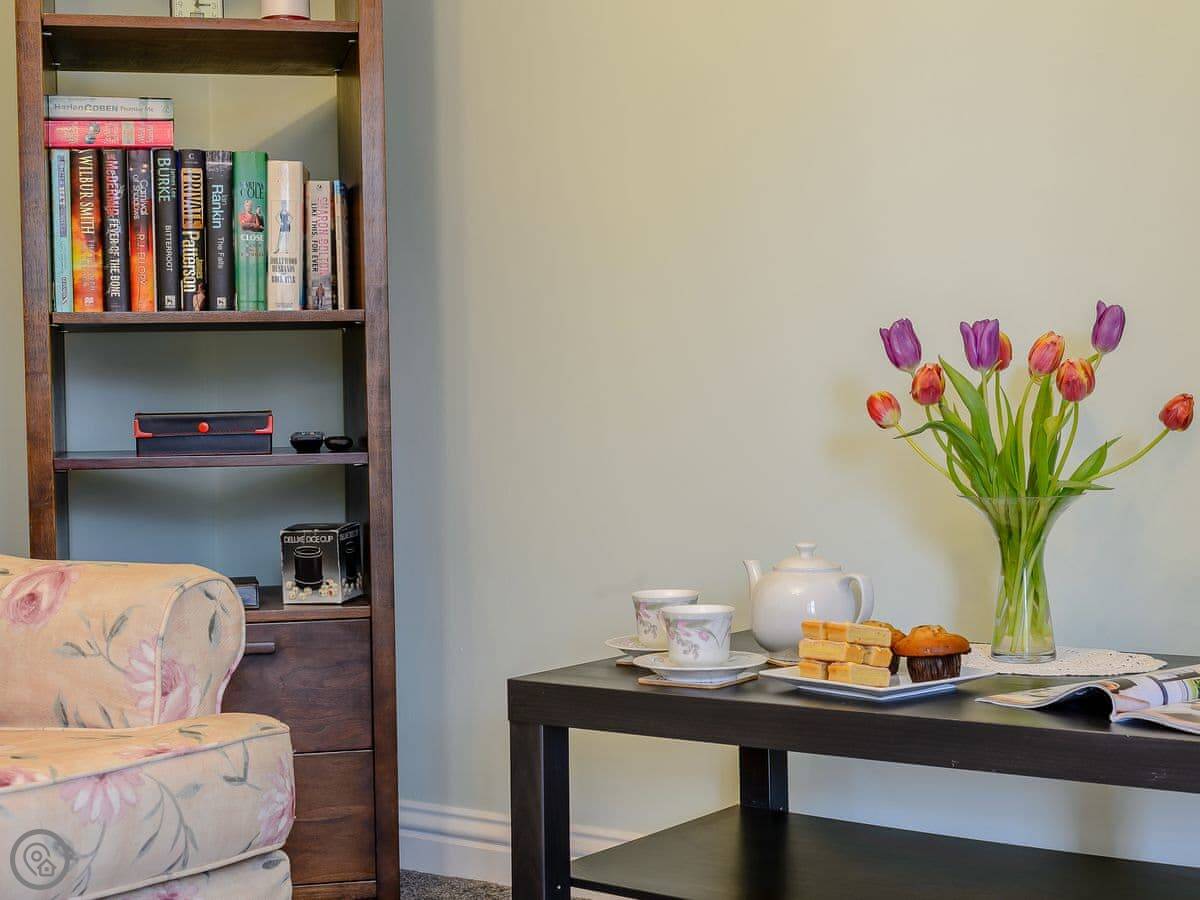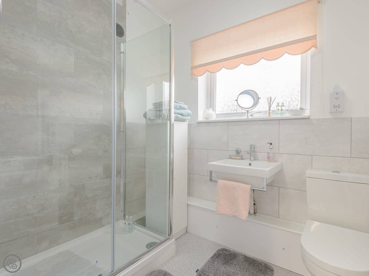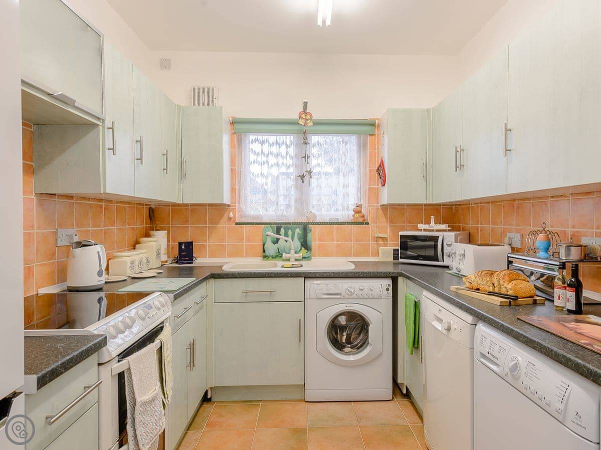 Inside, it's all on the ground floor and wheelchair accessible. There's parking right outside. It has WiFi, a TV, a washing machine and a dishwasher. All the bedding and towels are included. We don't allow pets.