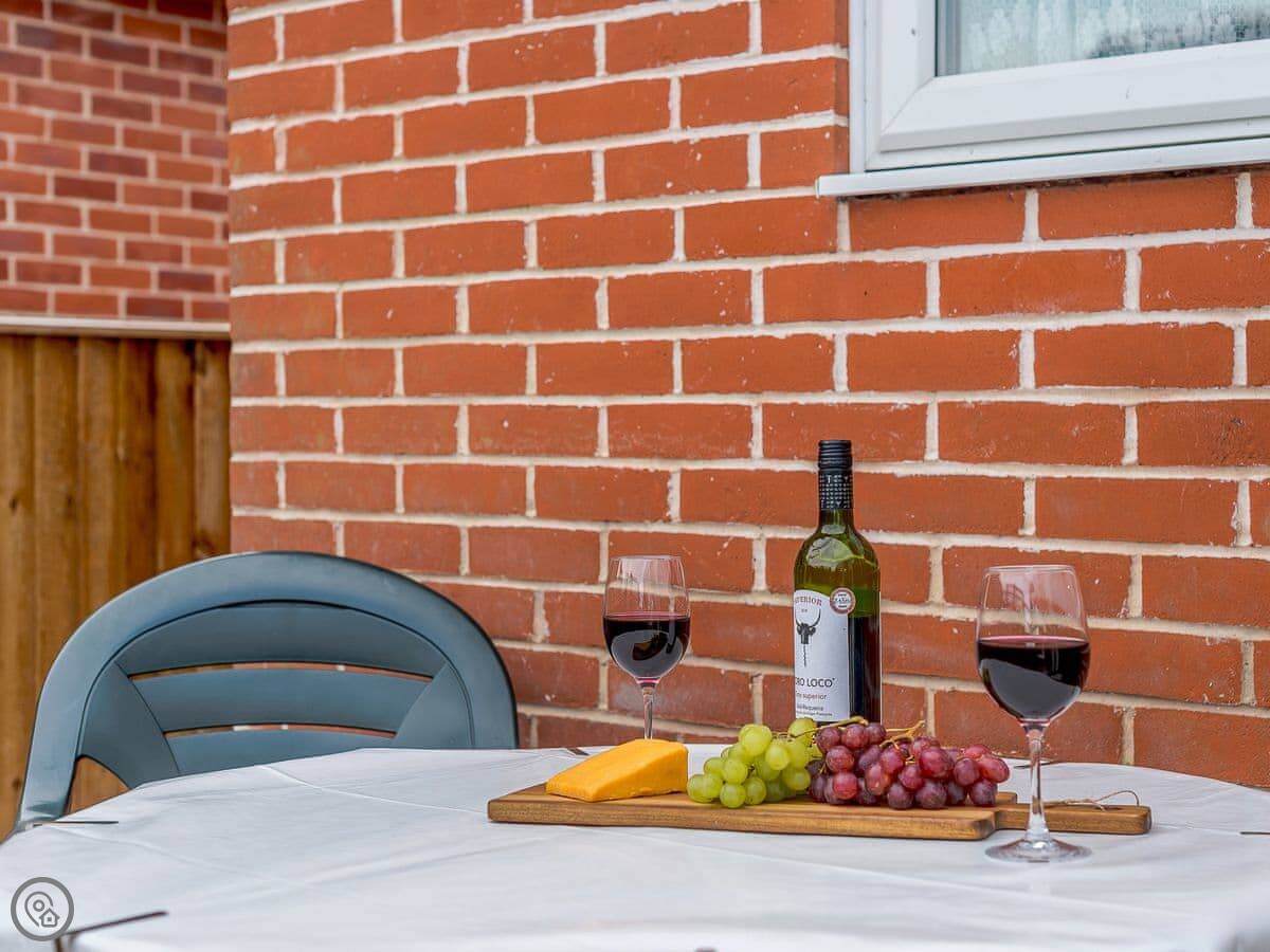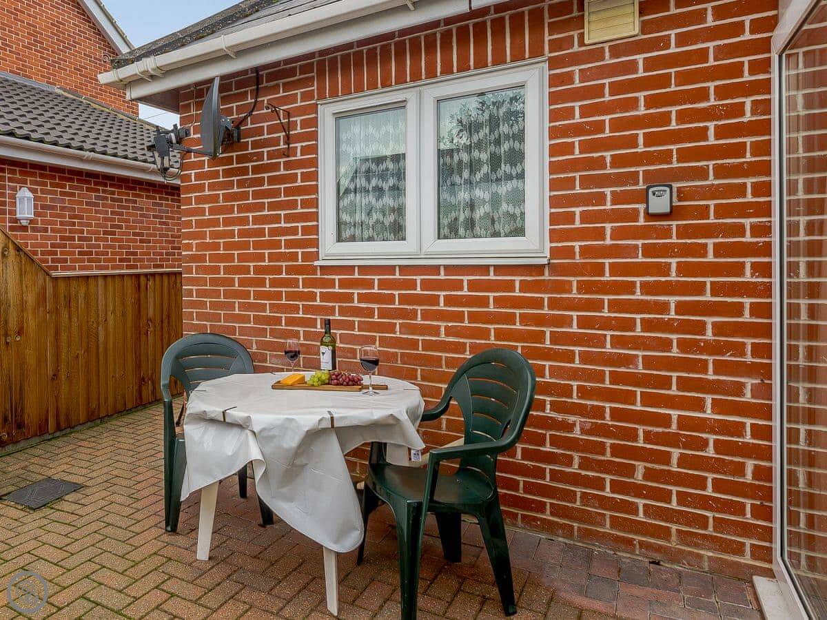 It's got a 4 Star rating, sleeps two in one bedroom. One bathroom with a shower. There's a small enclosed patio garden with a table.