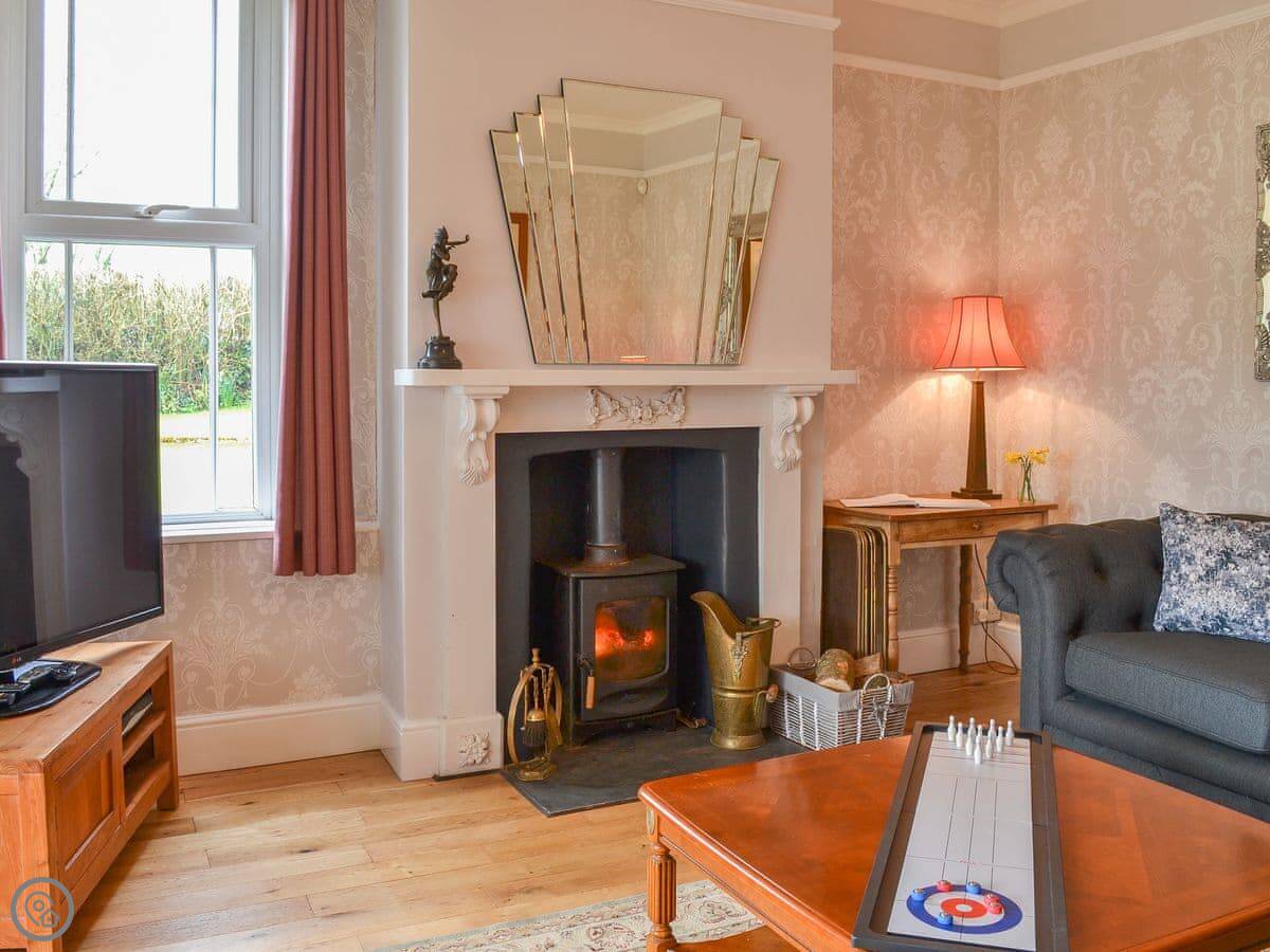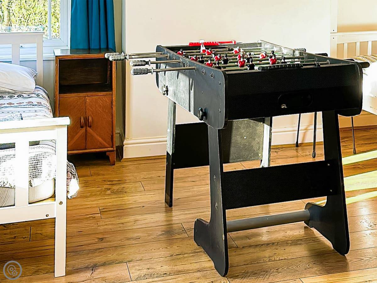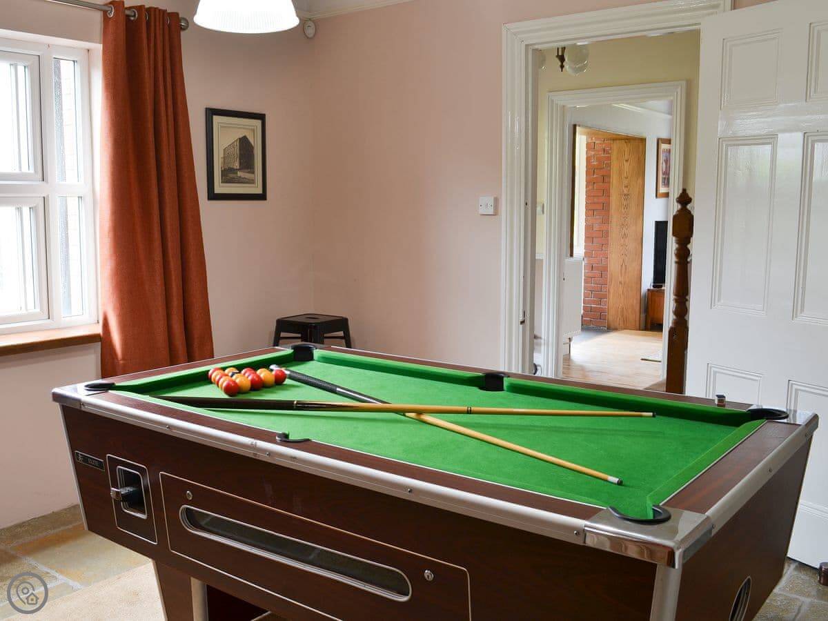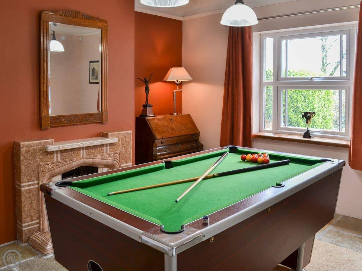It's a big place. The main room is a large living, dining, and sun room, which is where everyone tends to end up. There's a wood burner in there. The kitchen is also a good size. There's a separate games room with a pool table.