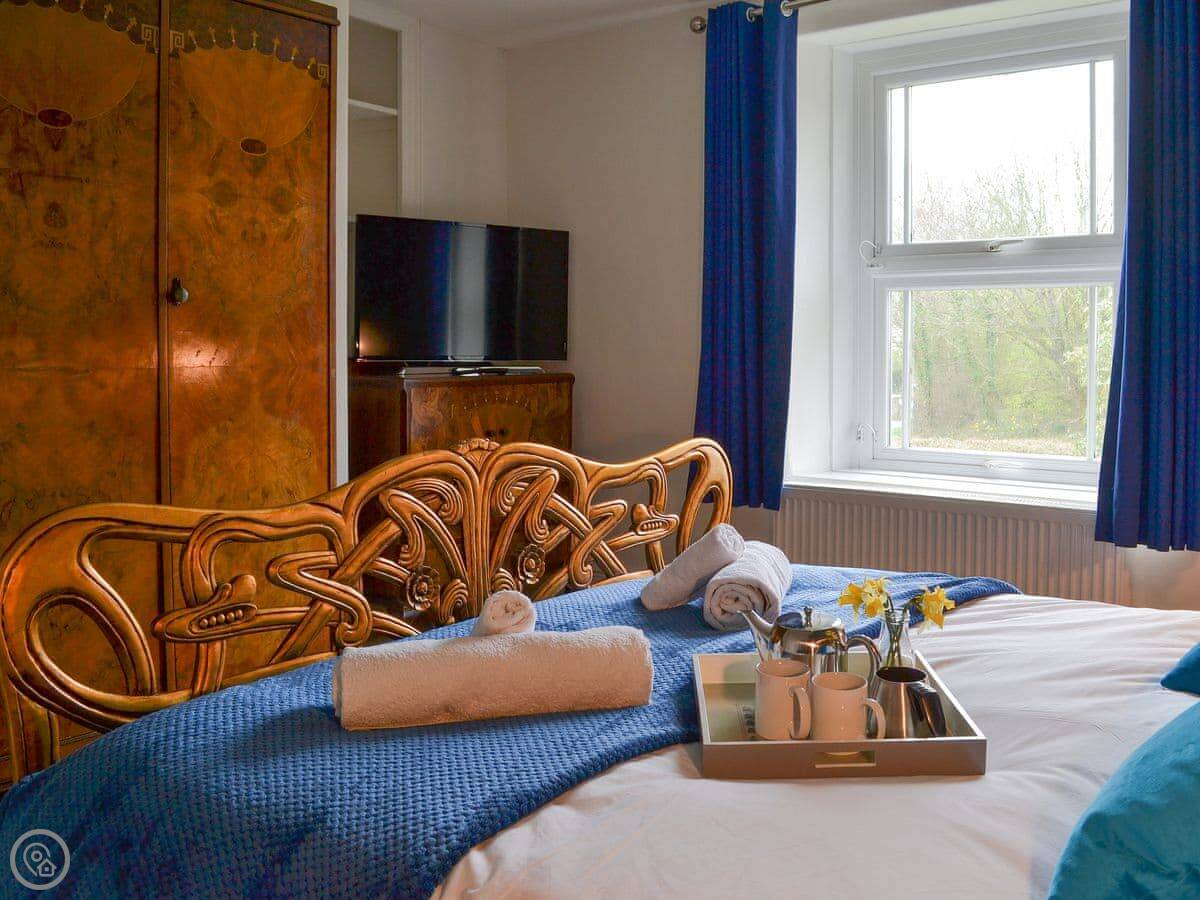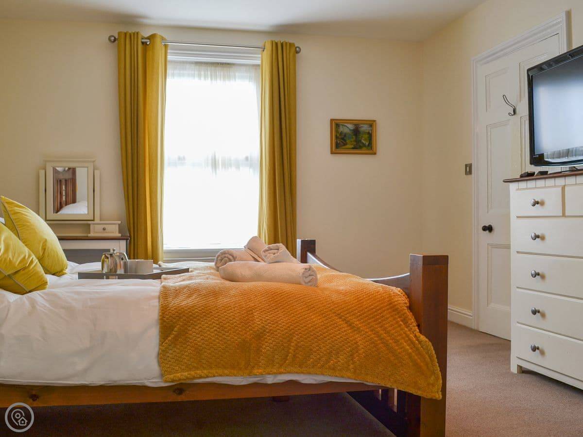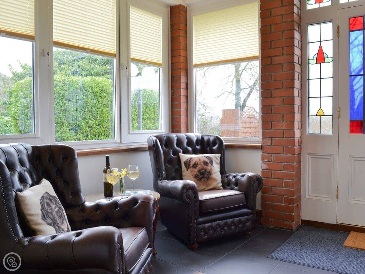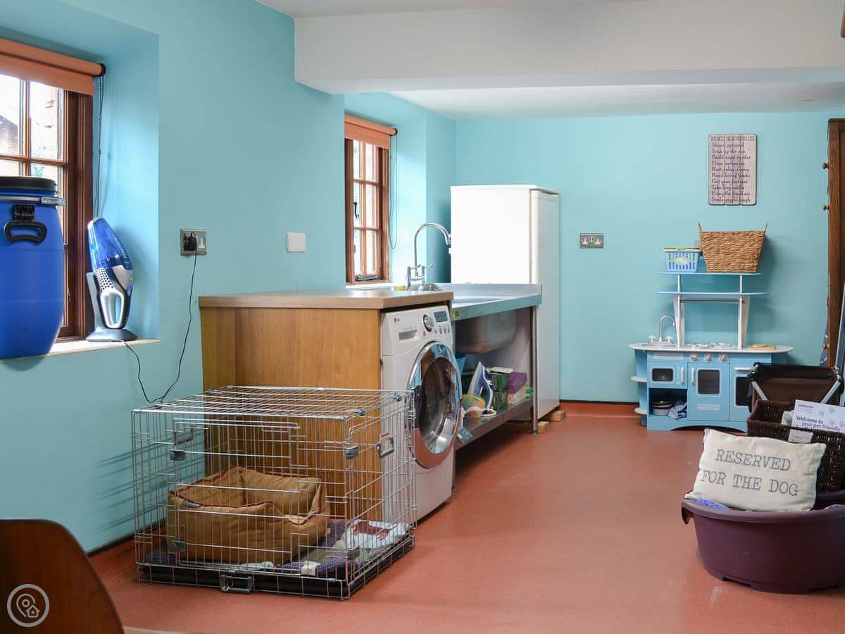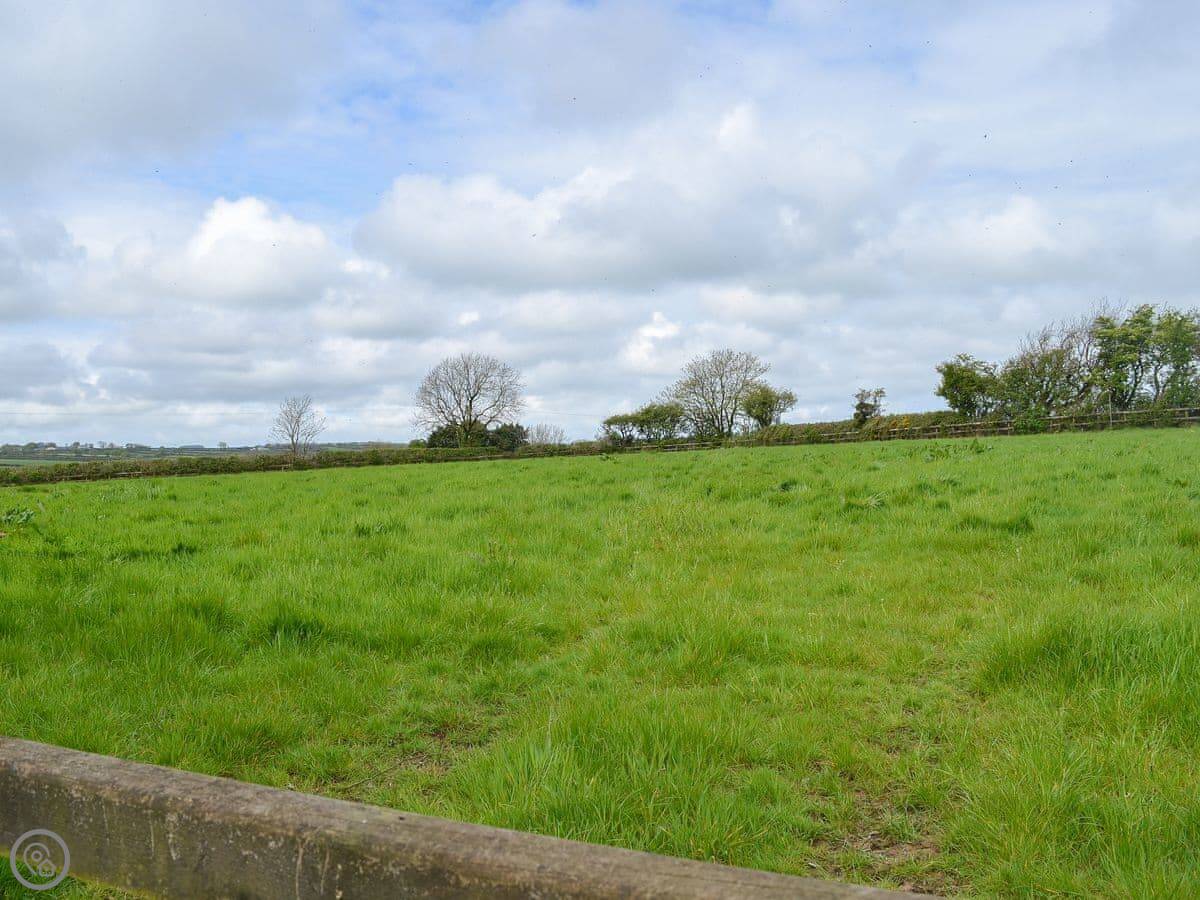 You get a patio garden, and there's a two-acre field across the lane that you can use as well. It's enclosed, so it's fine for dogs. We take up to three pets.