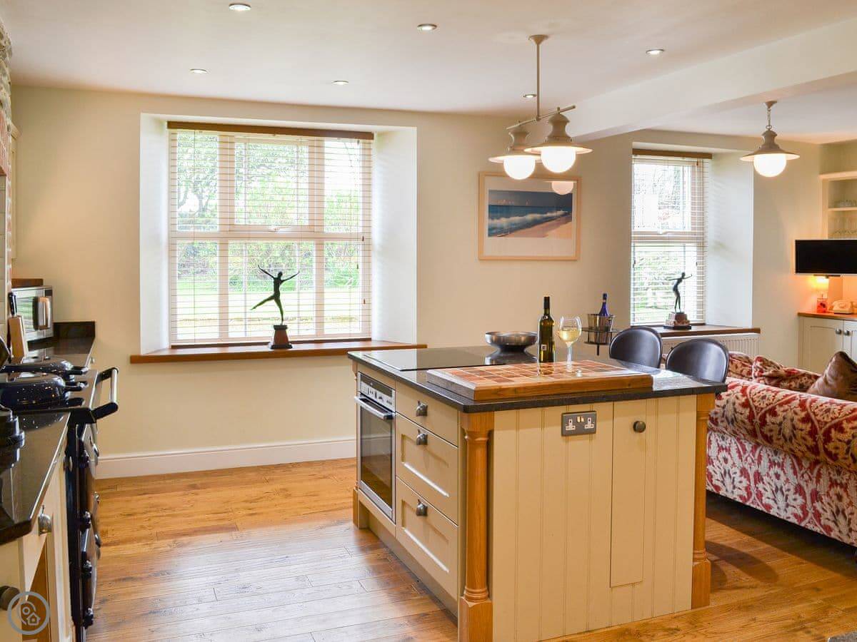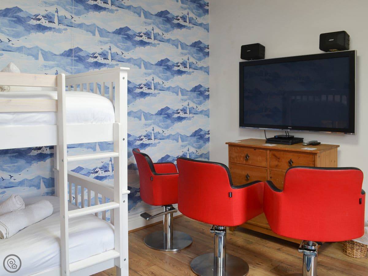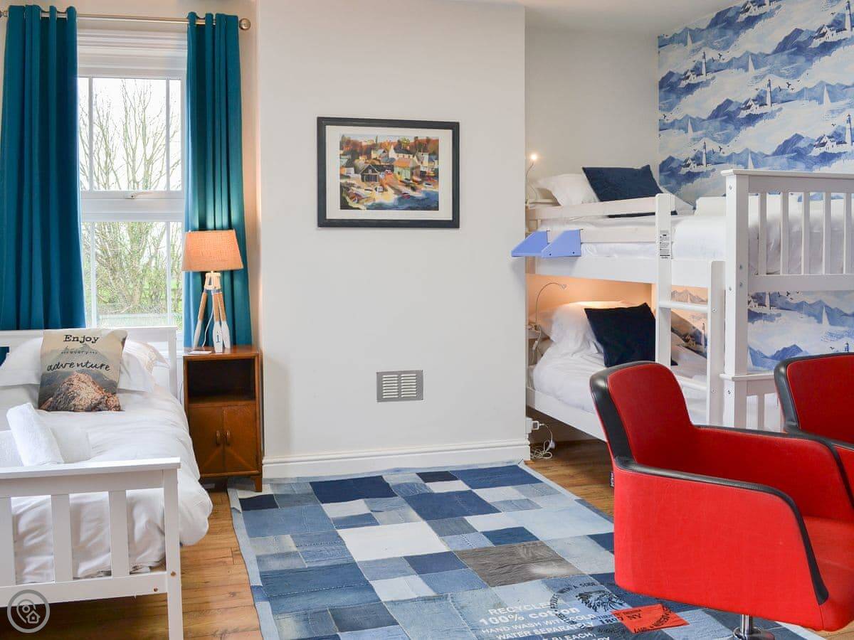 There's also a separate property on the same site called The Old Coach House. It sleeps five, upside-down style with bedrooms on the ground floor. You can rent them together if you've got a bigger group.