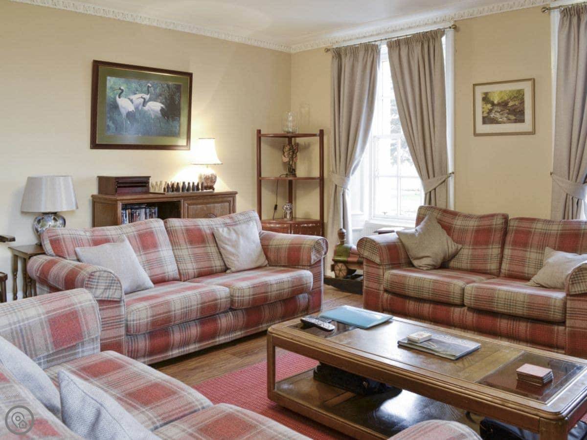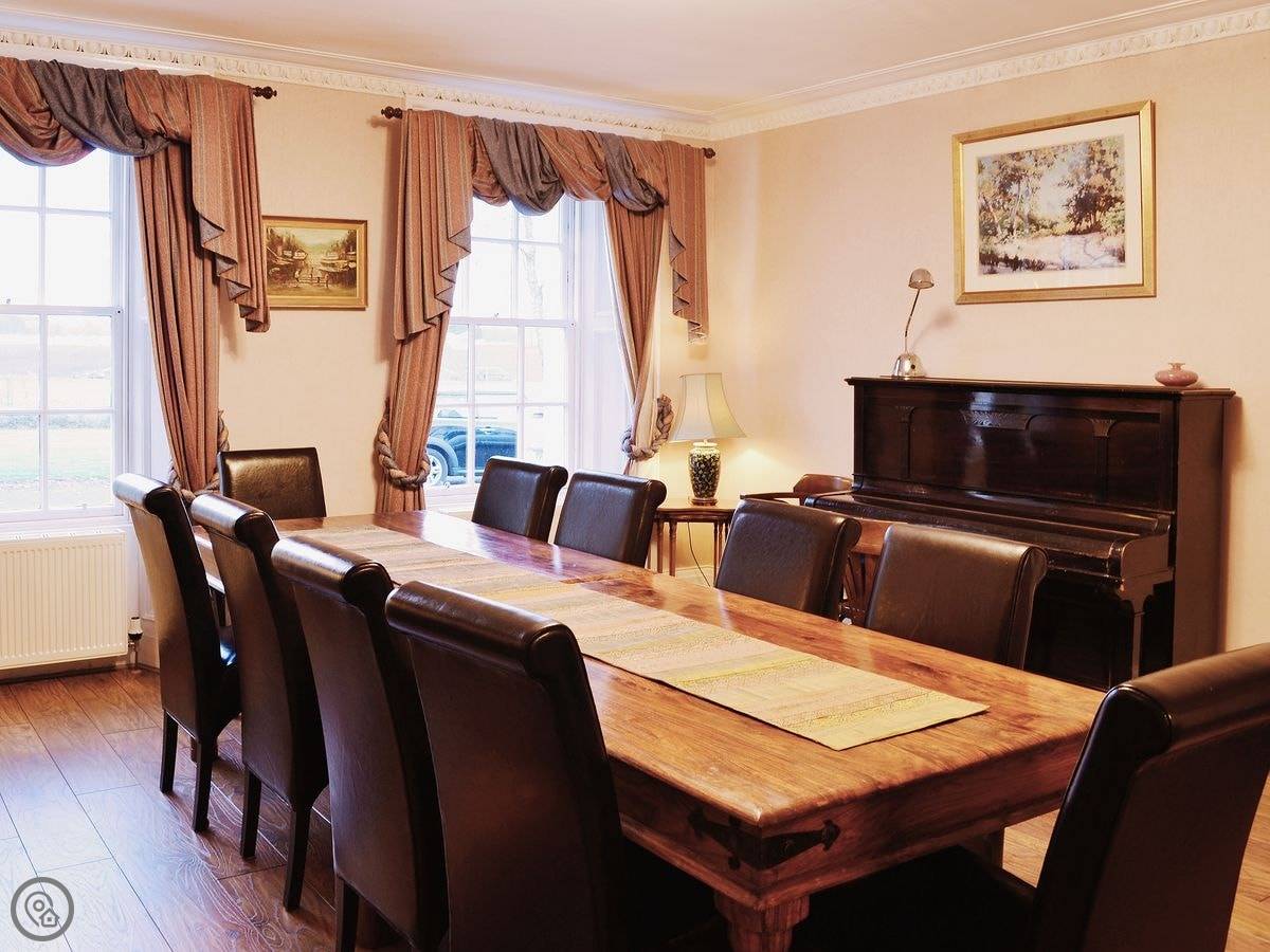 This property offers sumptuous accommodation within extensive grounds situated in The Carse of Gowrie which runs from the north bank of the River Tay up to the northern slopes of the Braes of the Carse, between Perth and Dundee, noted for its fruit growing, especially raspberries and strawberries. The house is furnished and equipped and make excellent holiday accommodation for groups and families of all ages. Guests have use of a tennis court and play area within the spacious shared gardens, as well as a large shared external games room, full-size pool table, table football and ample room for badminton or tennis. The very convenient location offers plenty of opportunities to explore the surroundings; the wooded hill slopes of the Braes are criss-crossed with little roads winding up to the villages of the carse. Perth and Dundee are both easily reached as are St Andrews, Carnoustie and Glasgow. Dundee has plenty of shopping and other excellent leisure facilities including Discovery Point, a five star visitor attraction chronicling Captain Scott’s journey to the Antarctic on the research ship ’Discovery’. Other interesting days out could include hill walking in one of the five Angus Glens with their stunning hill and loch scenery, approx 1 hour’s drive from the house, golfing at one of the many superb courses in the area, horse riding, fishing and sailing. Shops, pubs and restaurants 4 miles.