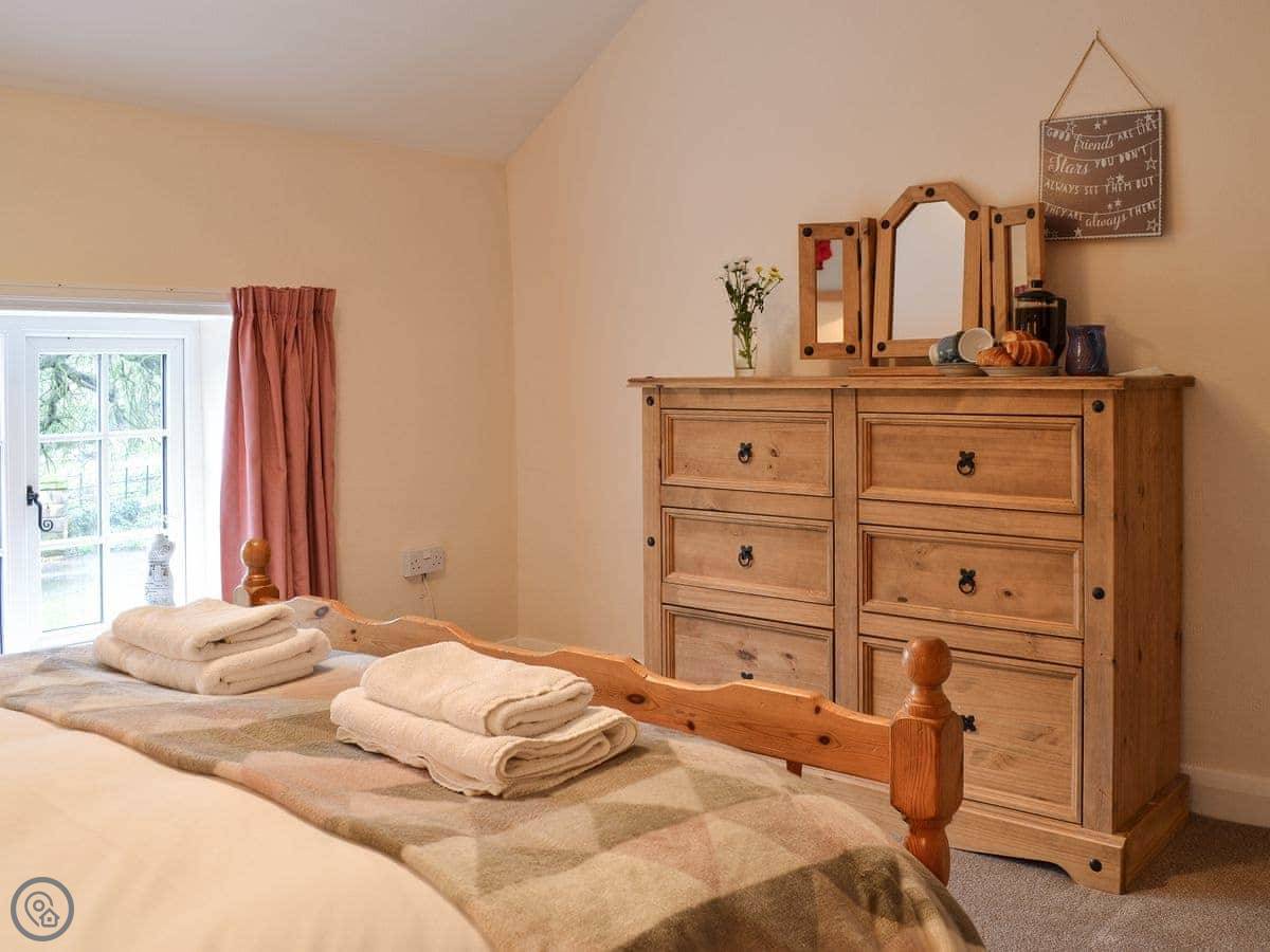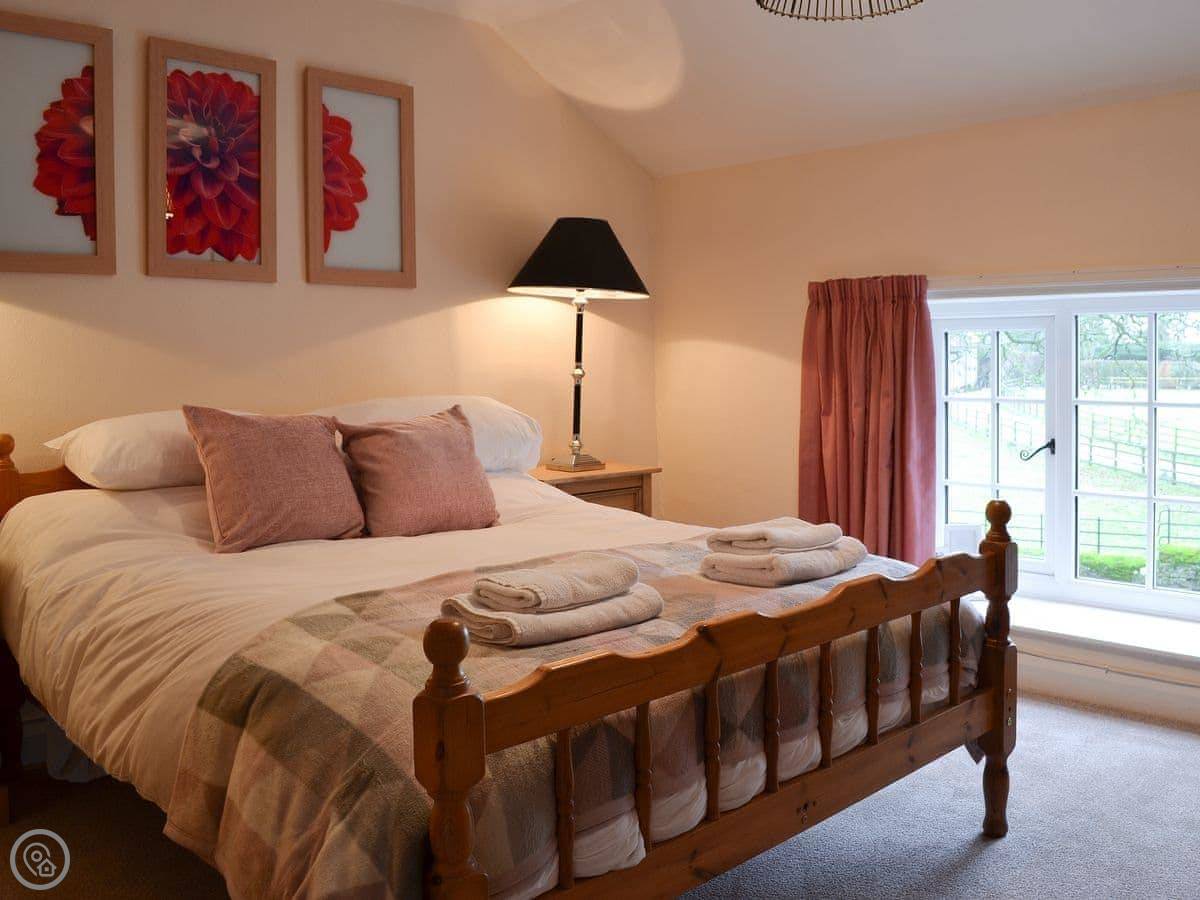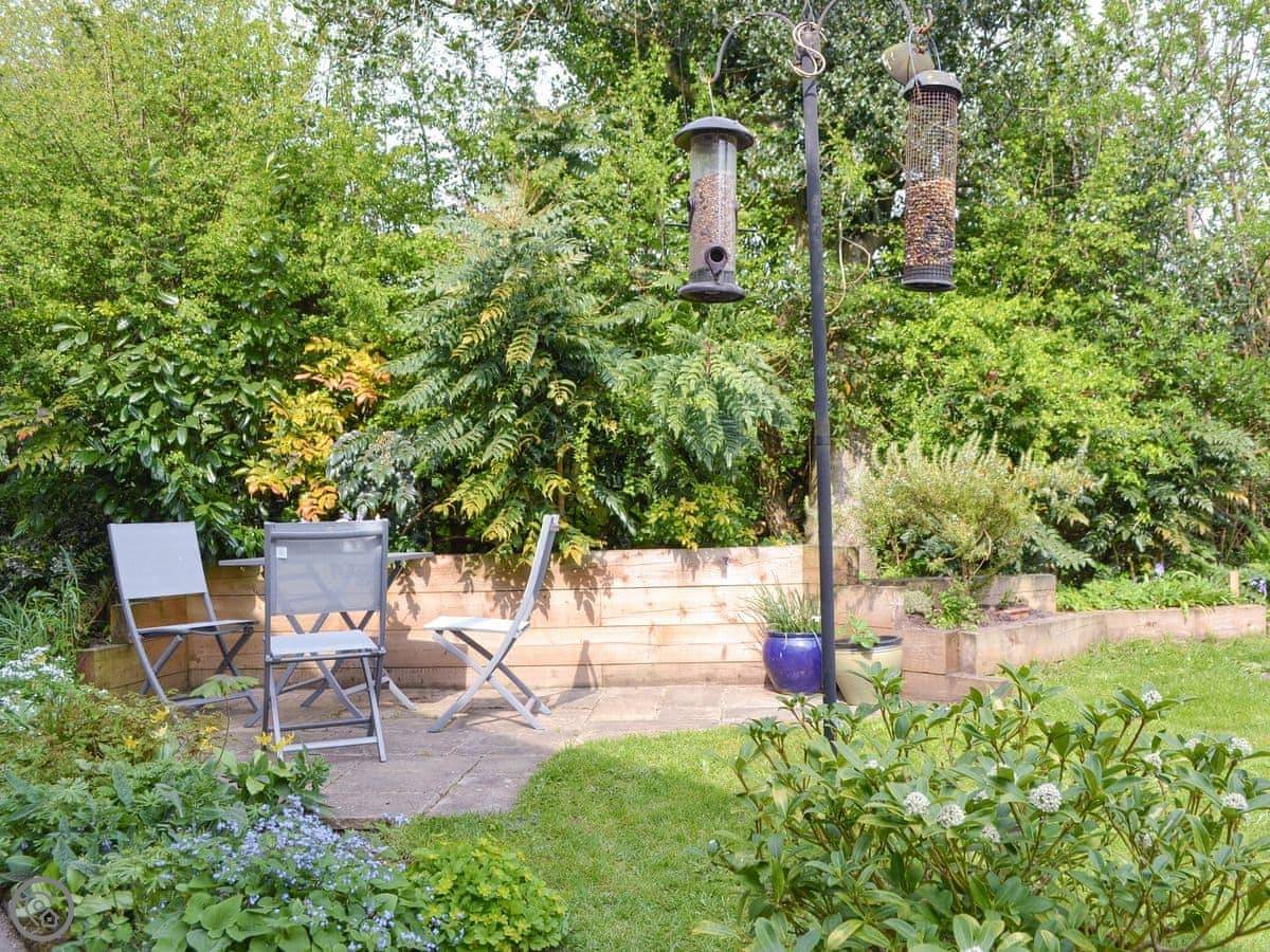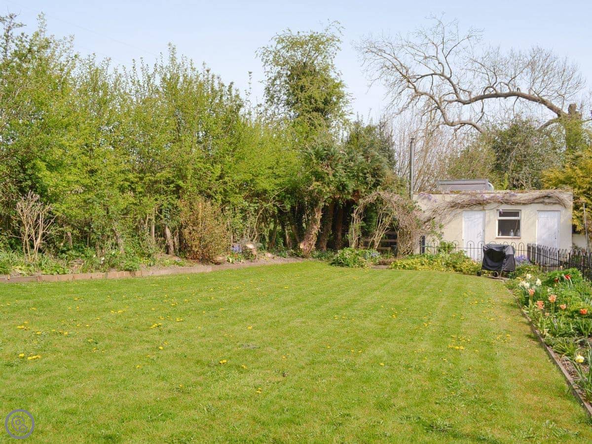 The garden is large but it's shared with the other cottage. You get your own patio bit with a table and chairs. The garden looks out over a field with horses in it.