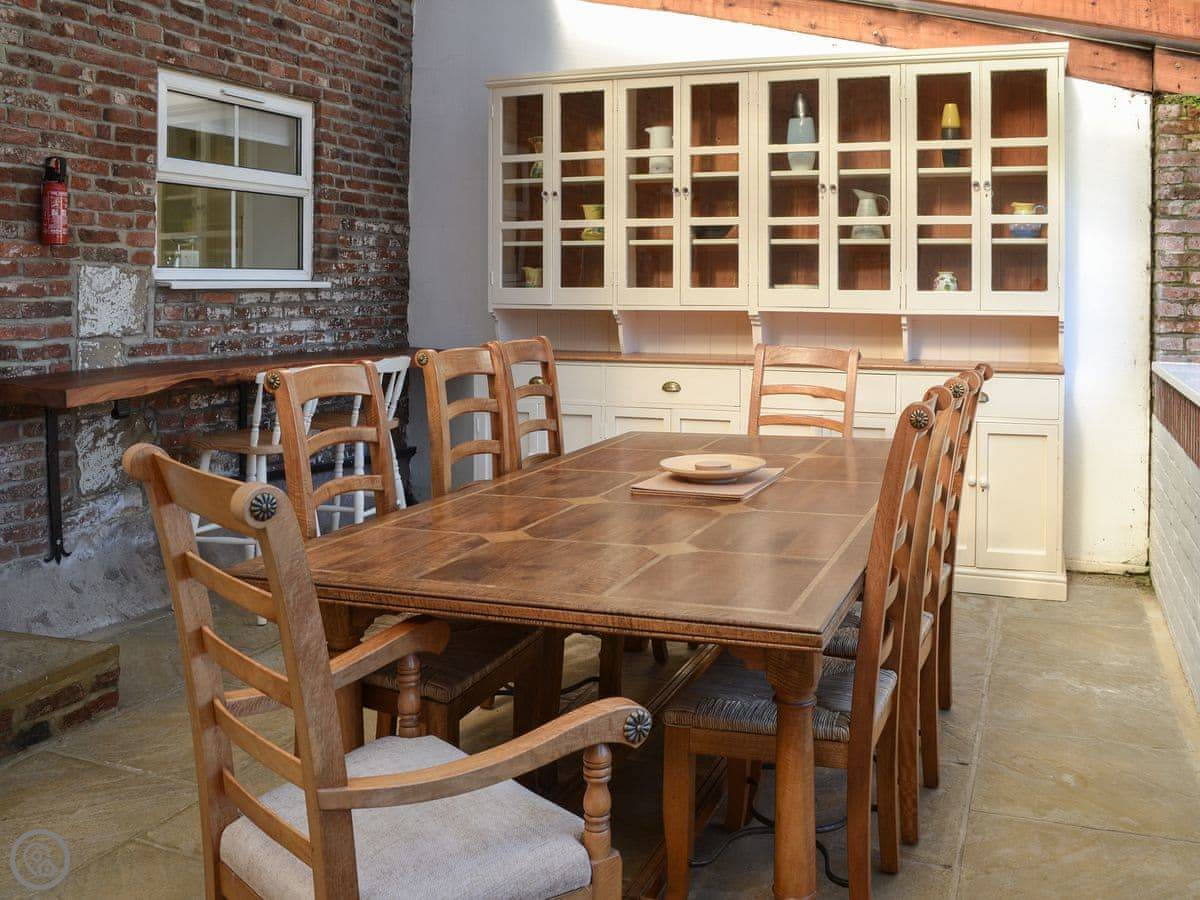 It's a terraced cottage. Downstairs there's a living room and then a conservatory that's used as a dining room. It's bright. The whole place is clean and presented well. It's got a 3 Star rating, so it's comfortable but not luxurious.