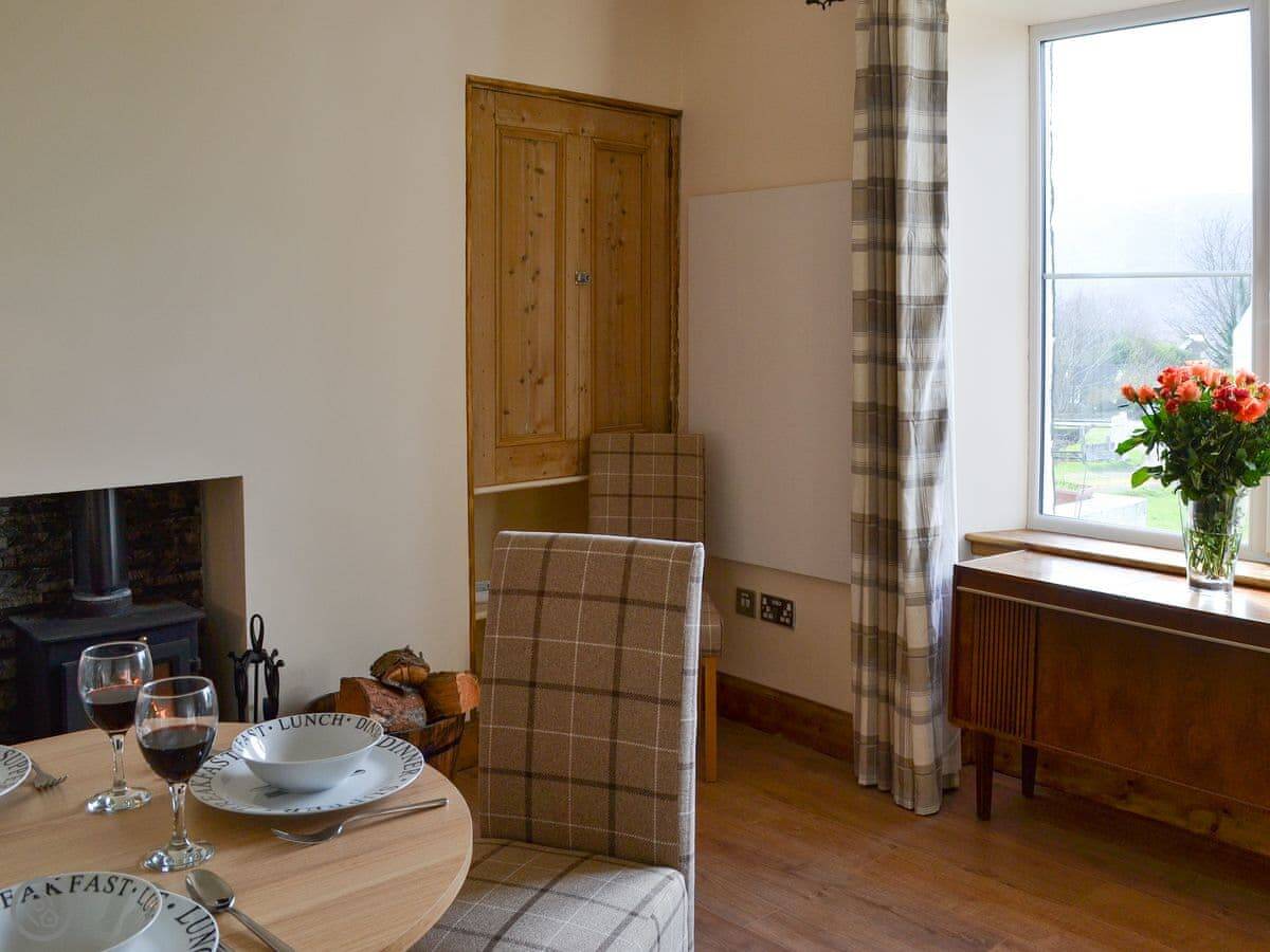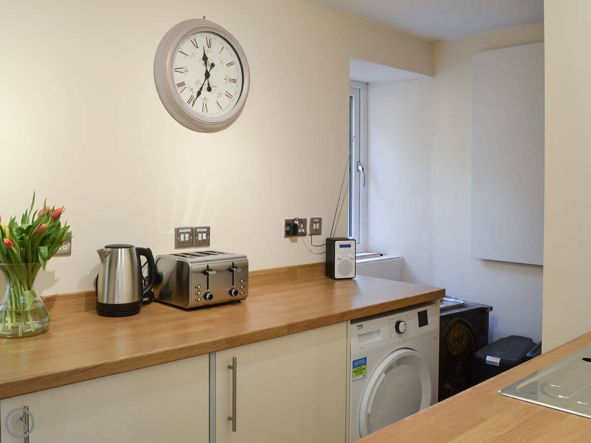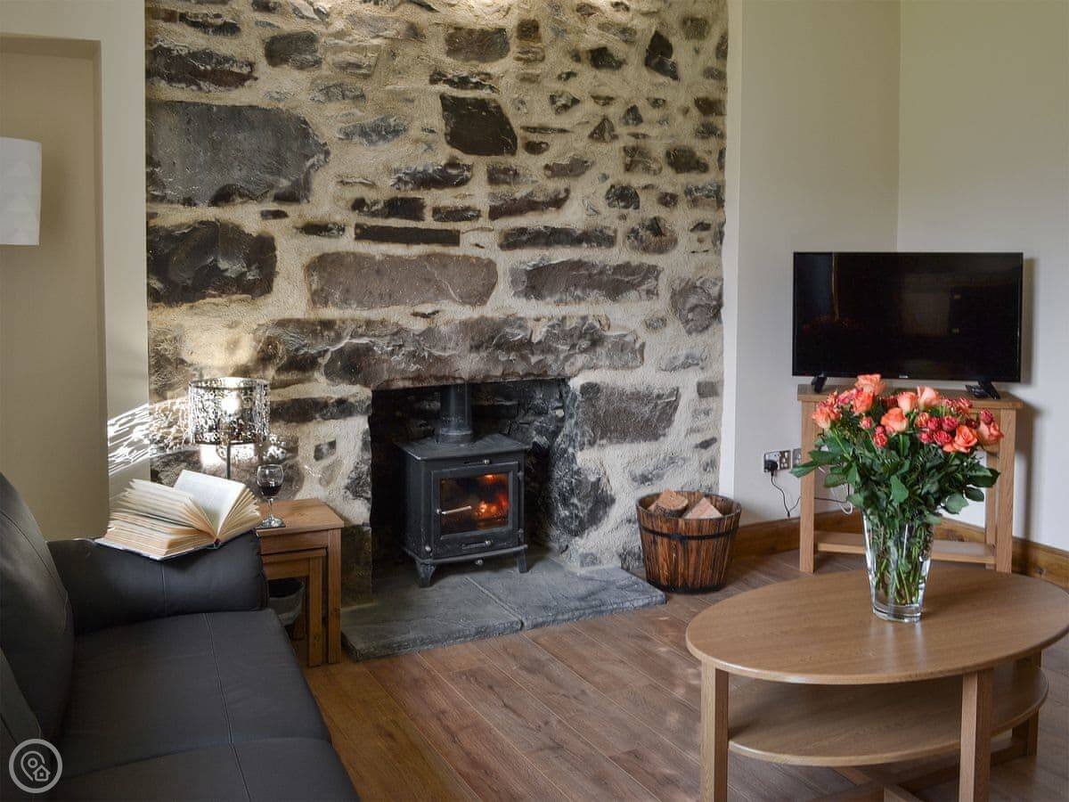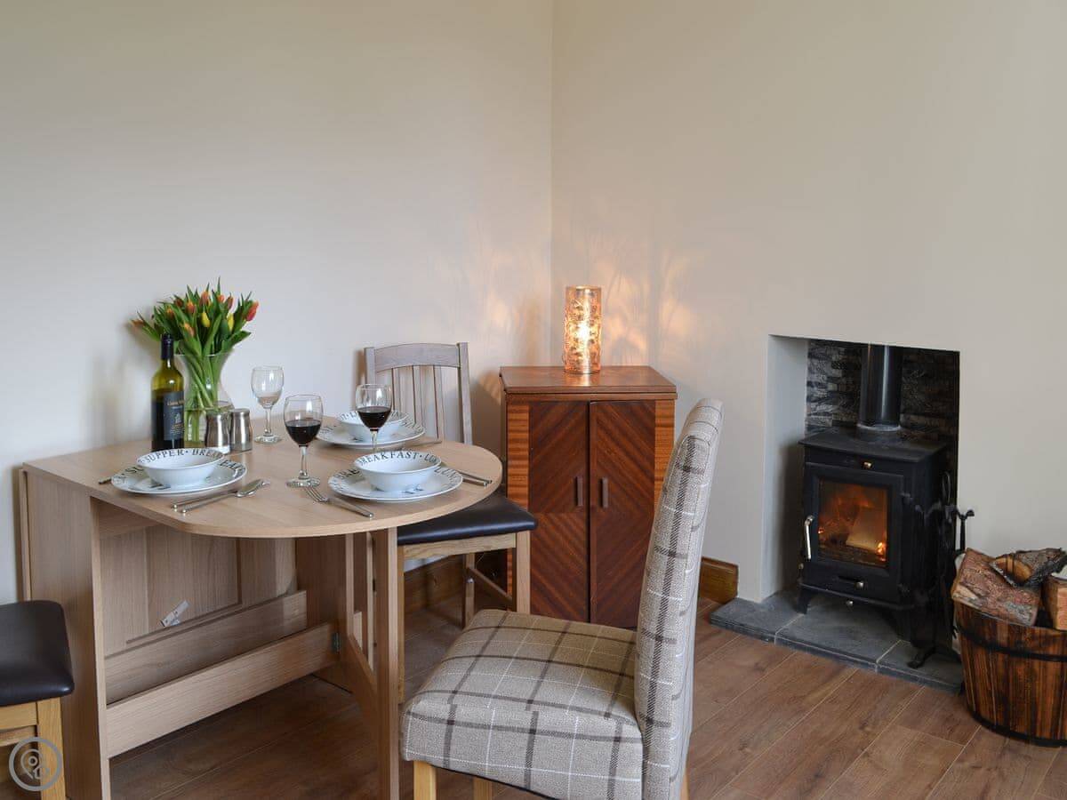 Inside, there's a woodburning stove, which is good for the evenings. It has a dishwasher and a washing machine. Bedding and towels are included. We've got a cot and a highchair if you need them. There's WiFi and a TV.
