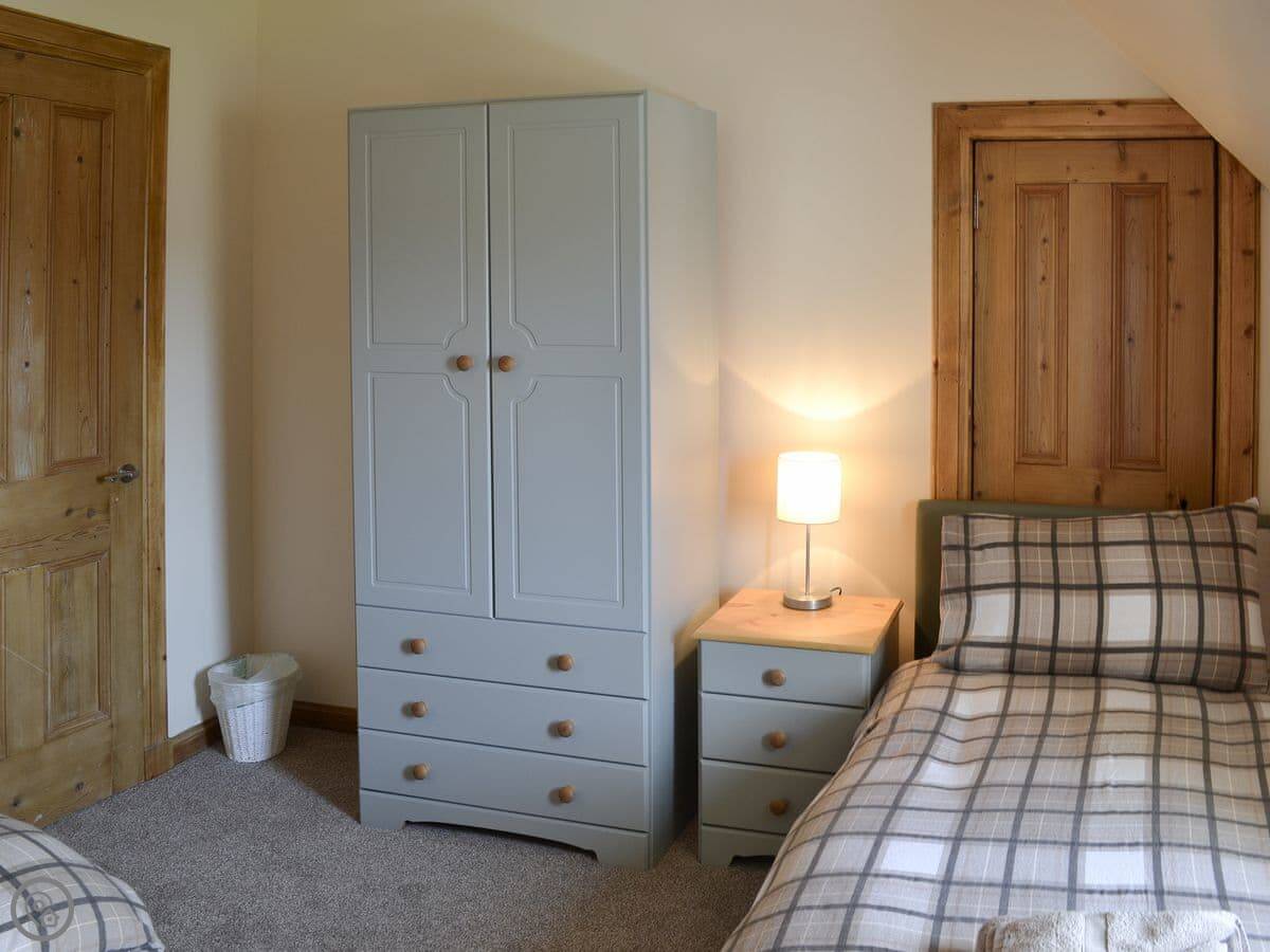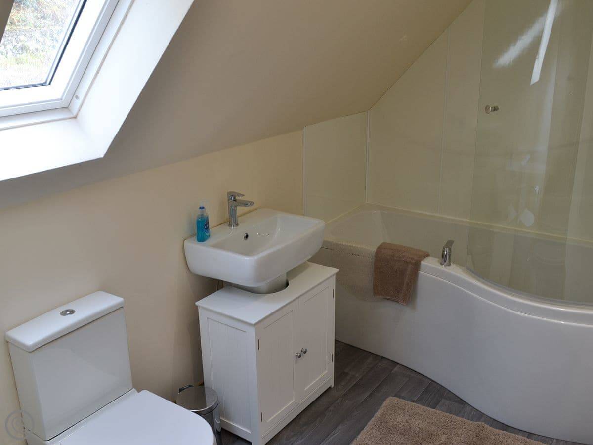 It sleeps five, in three bedrooms. There's one bathroom. It's got a 3 Star rating, so it's comfortable and clean but not luxury. You can bring one dog. The stairs are standard for a cottage.