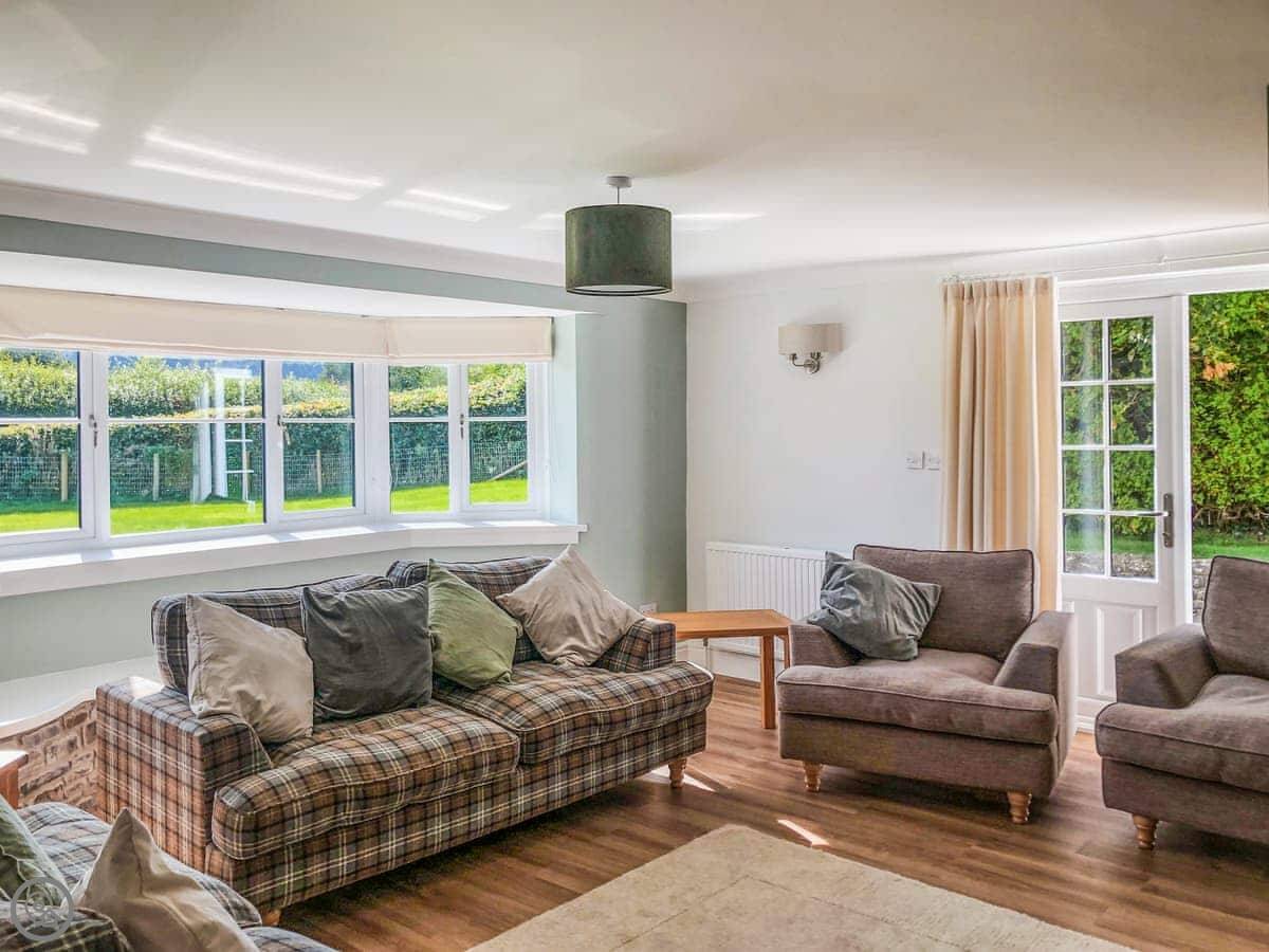 This is Brynich Villa. It's up in Groesffordd, just outside Brecon town. It's detached and sits on a caravan park, but you've got your own big garden. The main thing is the view. You look right out over the valley to the Brecon Beacons.