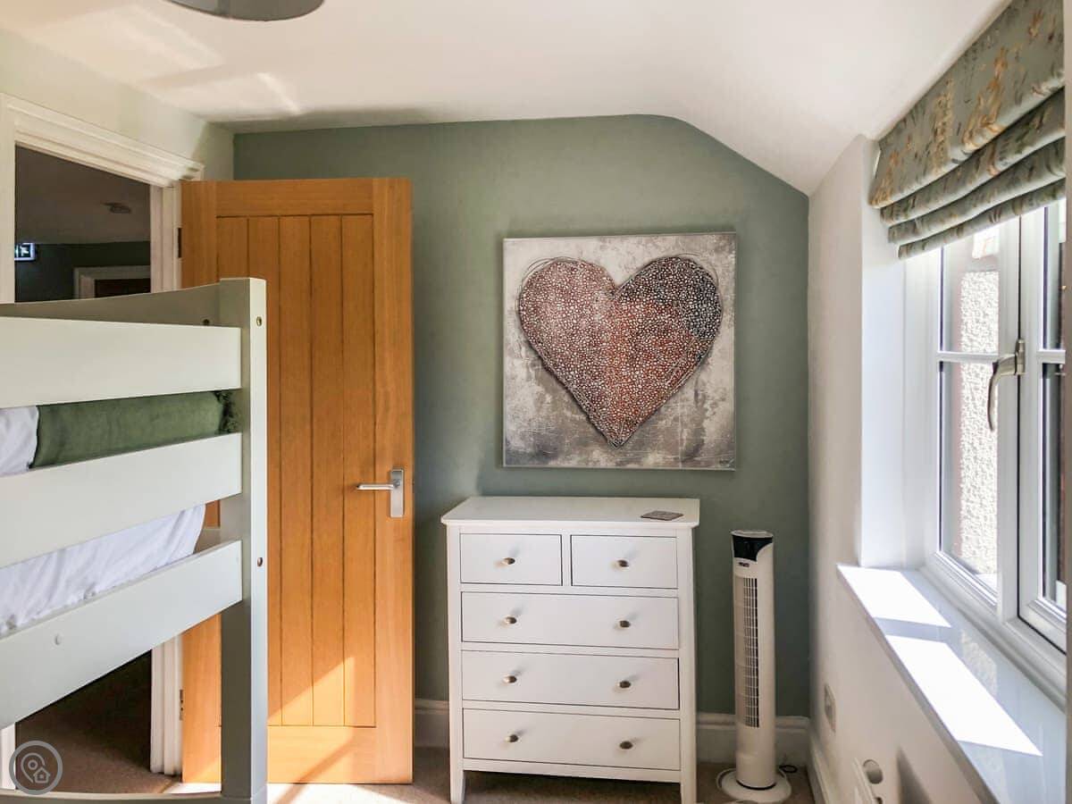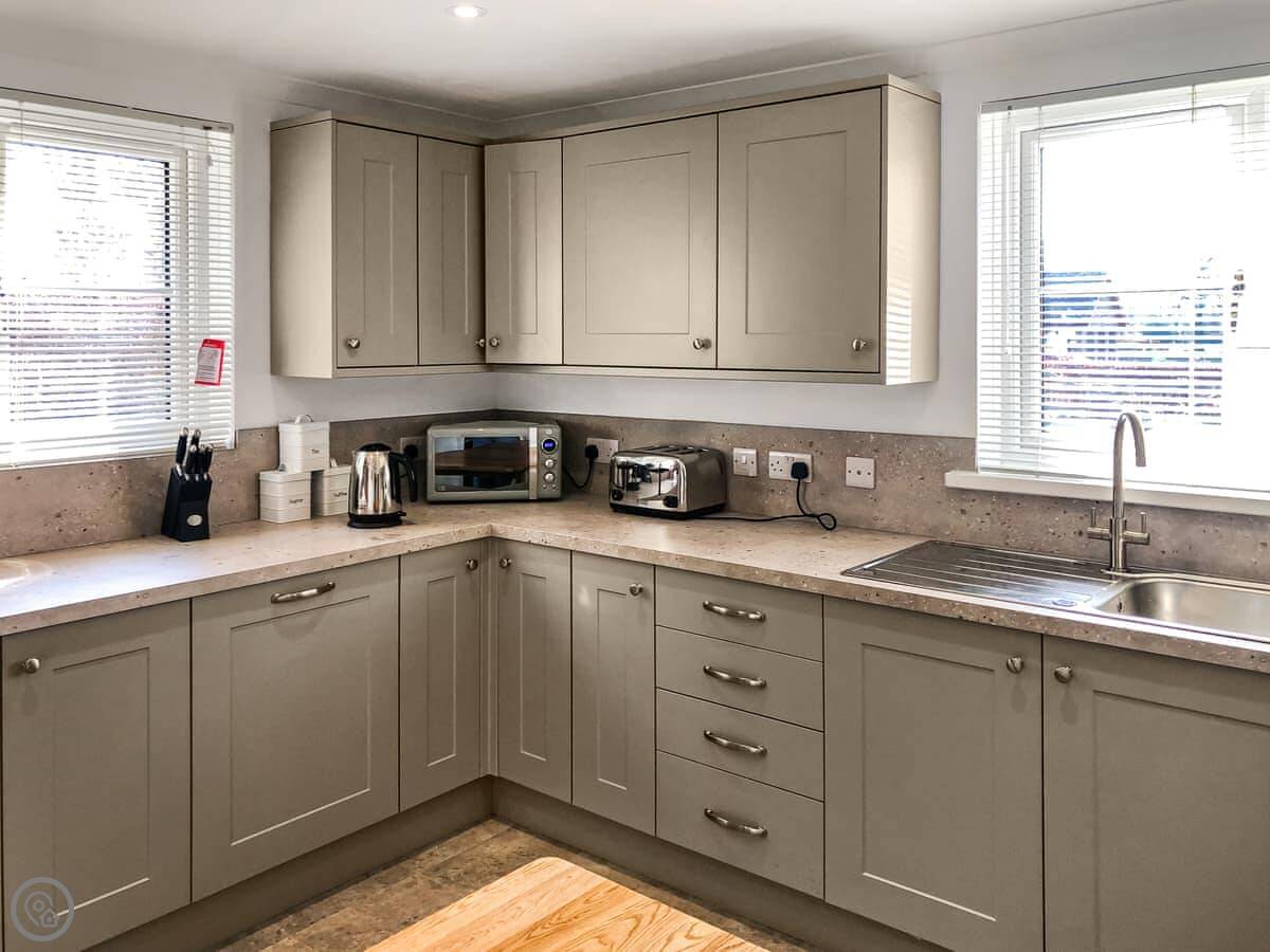 The kitchen is big, with a table that seats everyone. There's a separate living room. Downstairs there's also a games room with table football and table tennis, which is handy if the weather turns. Because it's on a park, there's a kids' play area right opposite the house.