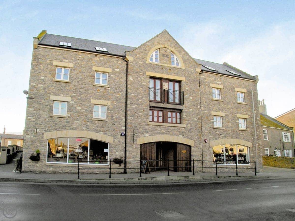 12 Maritime House is in West Bay, Bridport. It's a third floor apartment in a building overlooking the harbour. The building is old, but the apartment itself is modern inside. You get a parking space, which is useful.