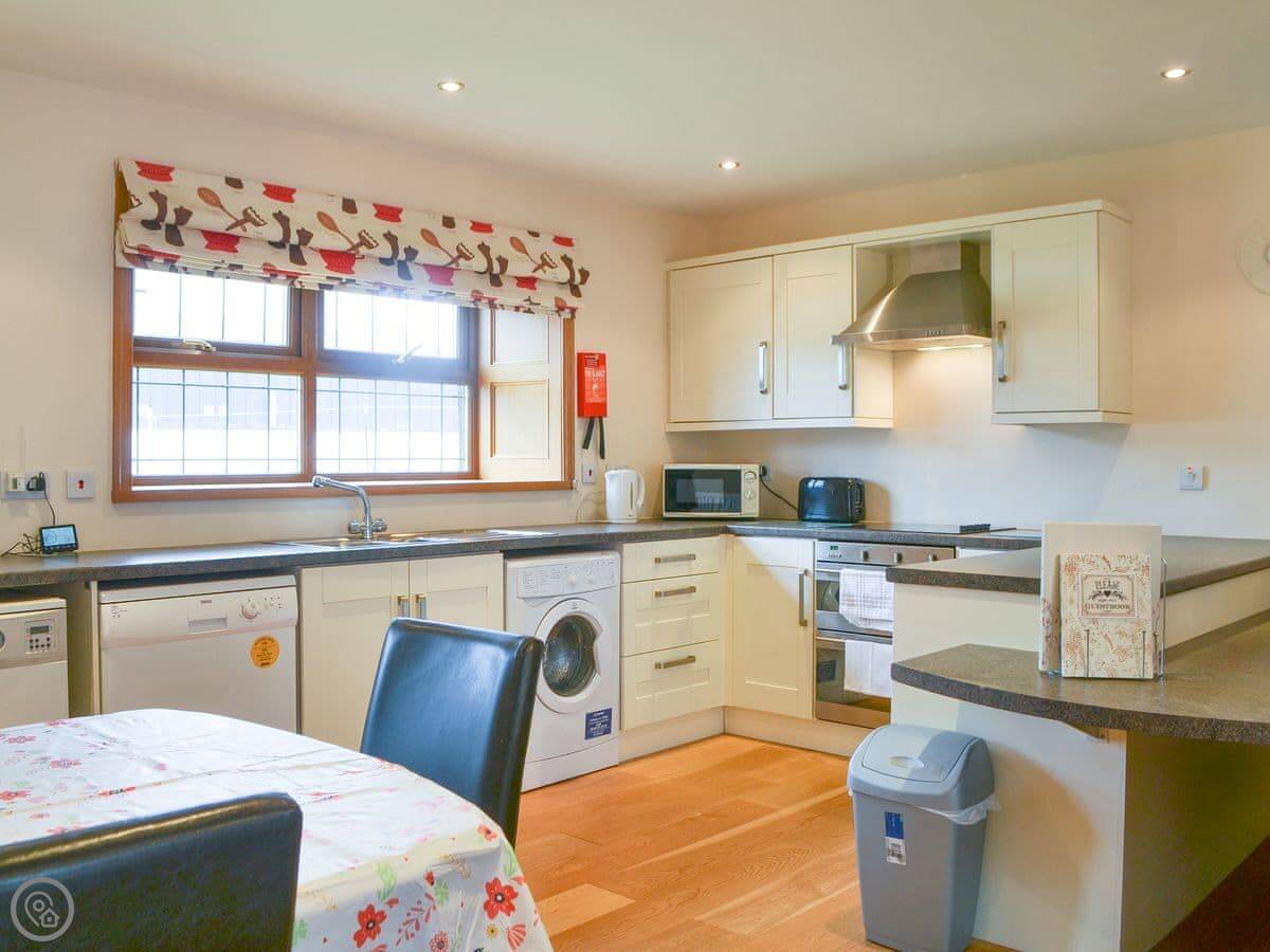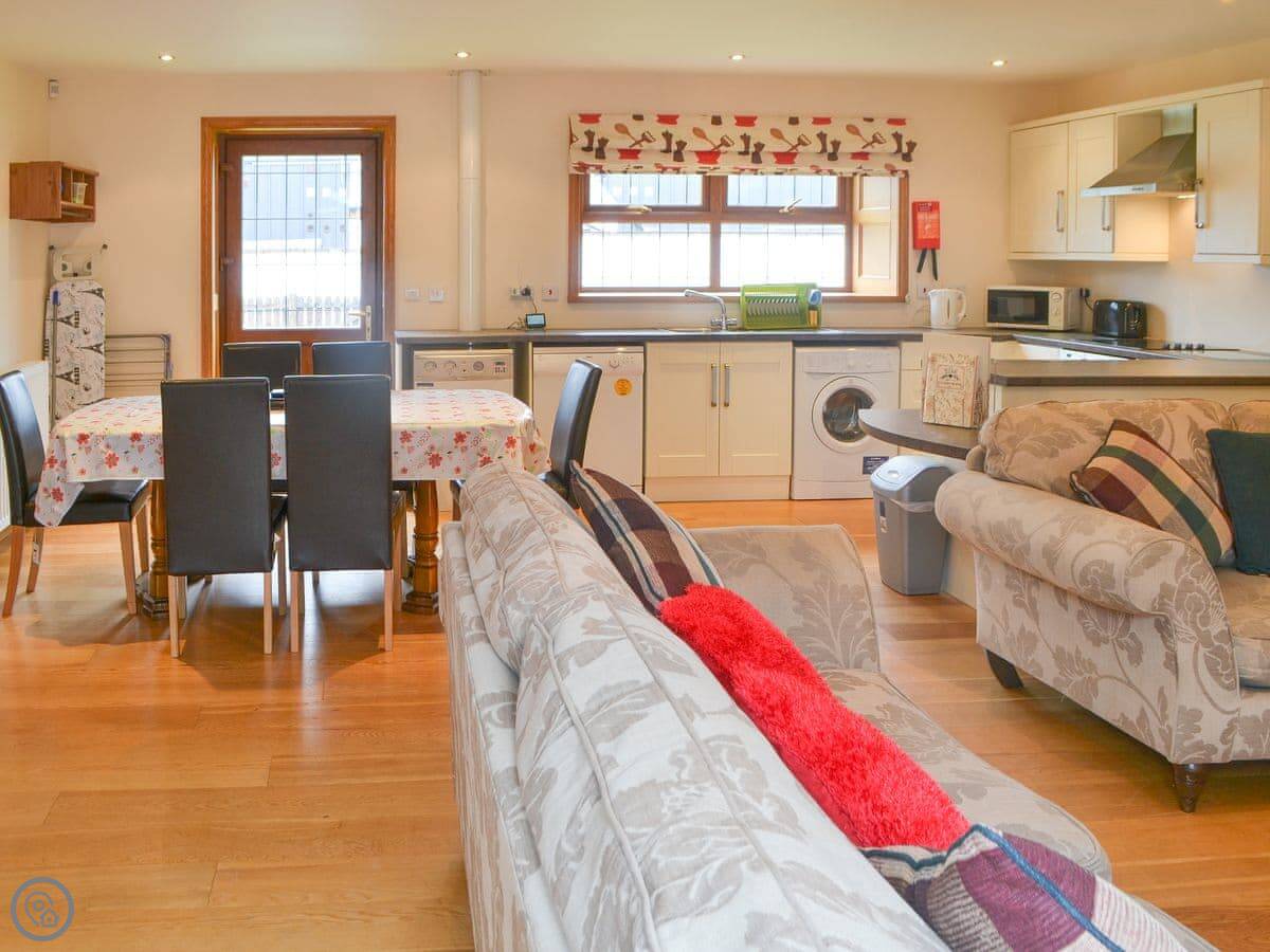 Hangingshaw Farm Cottages are made up of this original farm house and converted outbuildings set around a courtyard. The cottages are located next to Lockerbie Lorry Park. There is minimal noise in the cottages and the lorry park has a bar, shop and restaurant on-site. Hangingshaw is conveniently situated for the A74 making it an ideal base for exploring the Scottish Borders to the west, south into the Lake District National Park and north to Edinburgh and Glasgow. Locally in Dumfries and Galloway there are stunning abbeys, historic castles, stately mansions and long, sandy coastlines. You can enjoy long walks in every kind of beautiful scenery from rolling hills and lush forests to sweeping beaches. Hangingshaw is on a designated cycle route and there is also world class mountain biking on the 7stanes, fantastic fishing and brilliant bird watching at Caerlaverock and Mersehead. Shop, pub and restaurant 50 yards.
