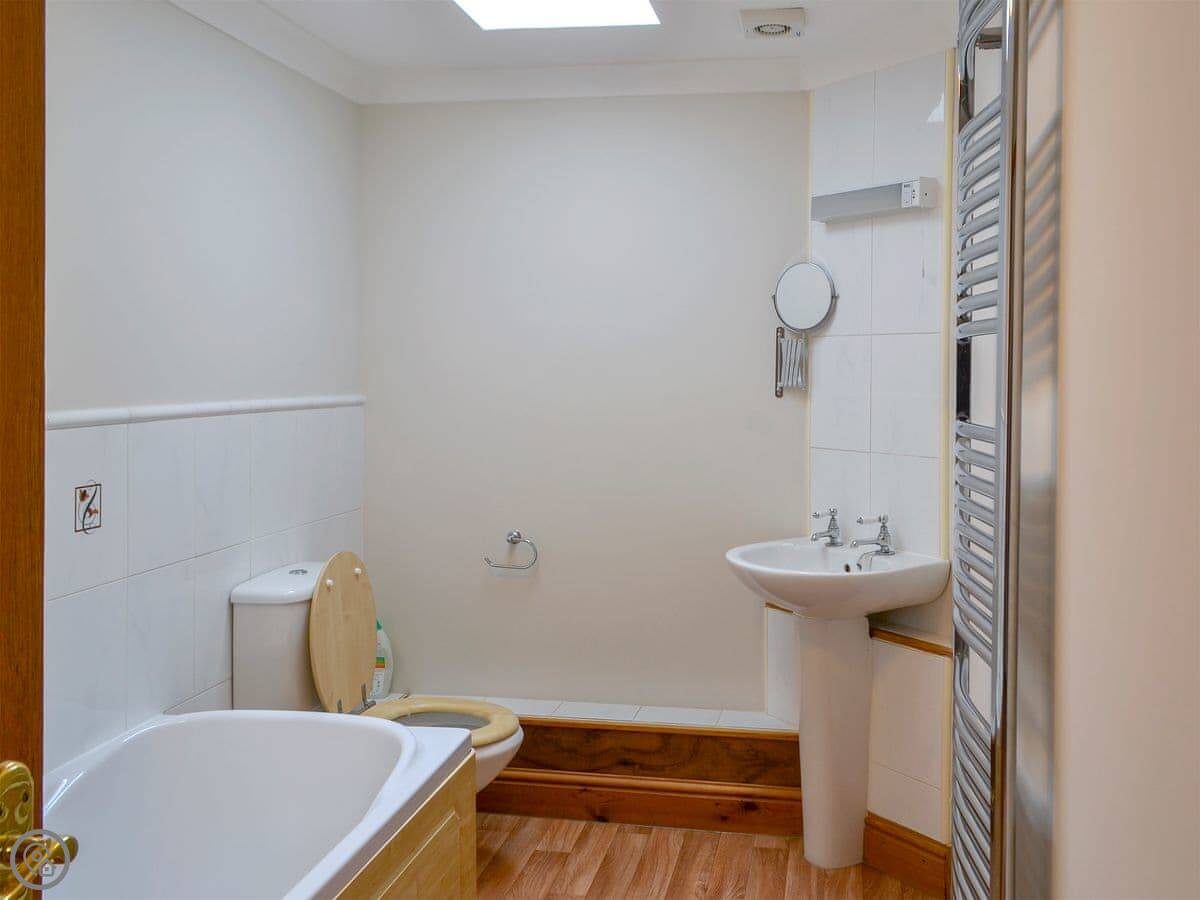 Facilities wise: it's got a washing machine, wifi, a TV. Bedding and towels are included. There's a cot and a highchair if you need them. It's wheelchair accessible at the entrance. You can bring up to two dogs. There's parking on site.