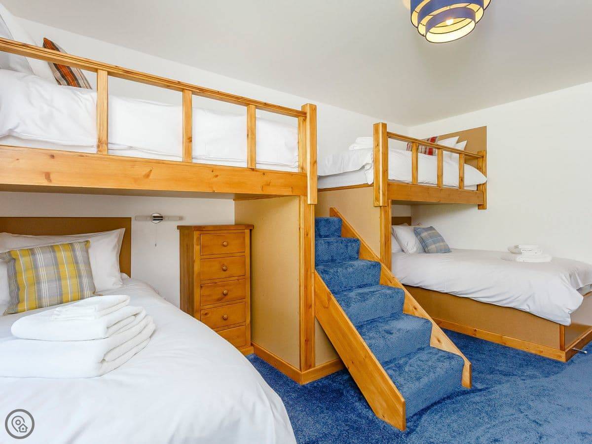 It sleeps eight. There are three bedrooms and two bathrooms, so it's a good size for a few families or a group. It's got a 5 Star rating. They've done it up well, so it feels comfortable rather than just fancy.