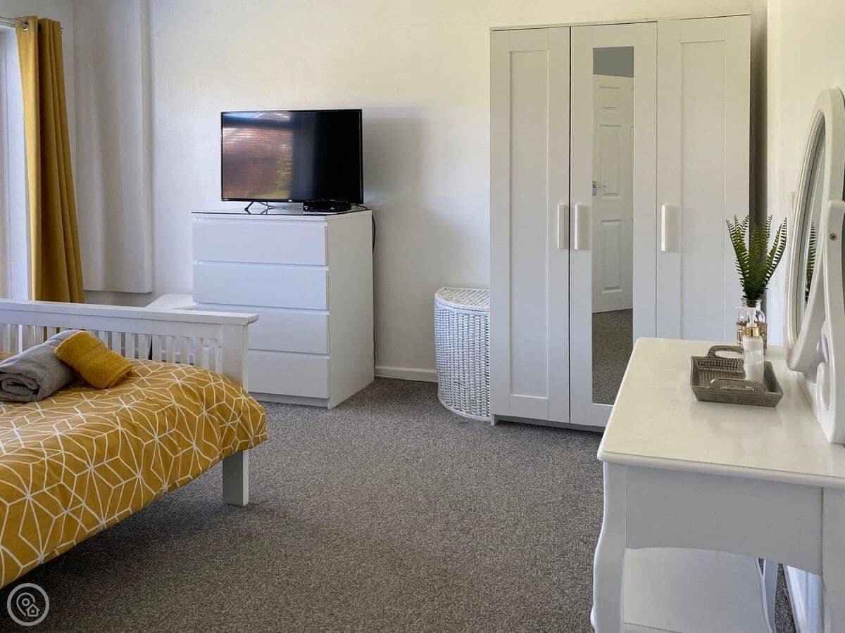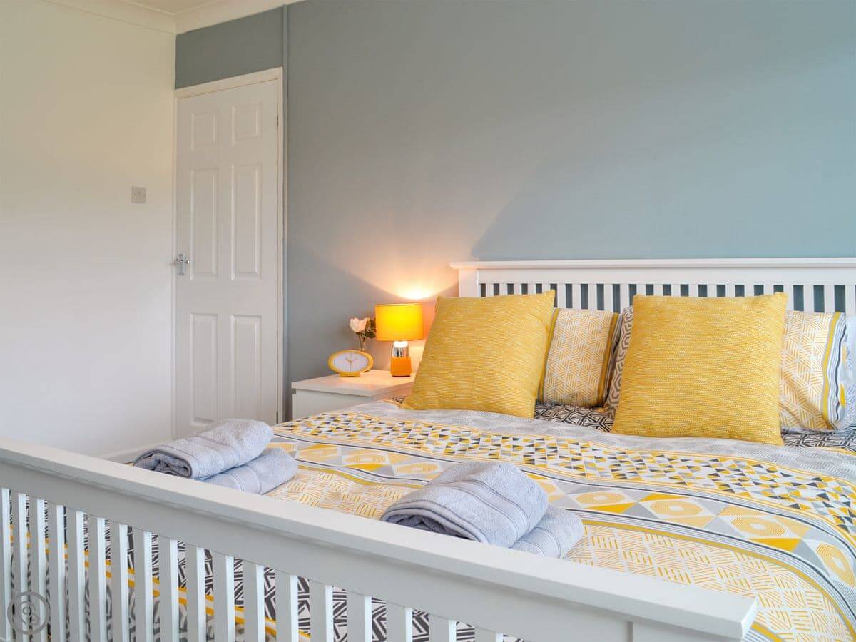 It sleeps four. Two bedrooms, one bathroom. It's got a 5 Star rating, which means it's modern and well equipped. Everything's on the ground floor, so no stairs. We take one well-behaved dog.
