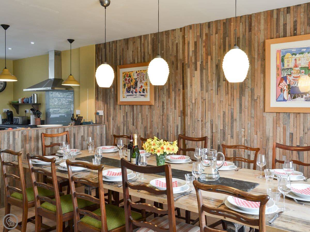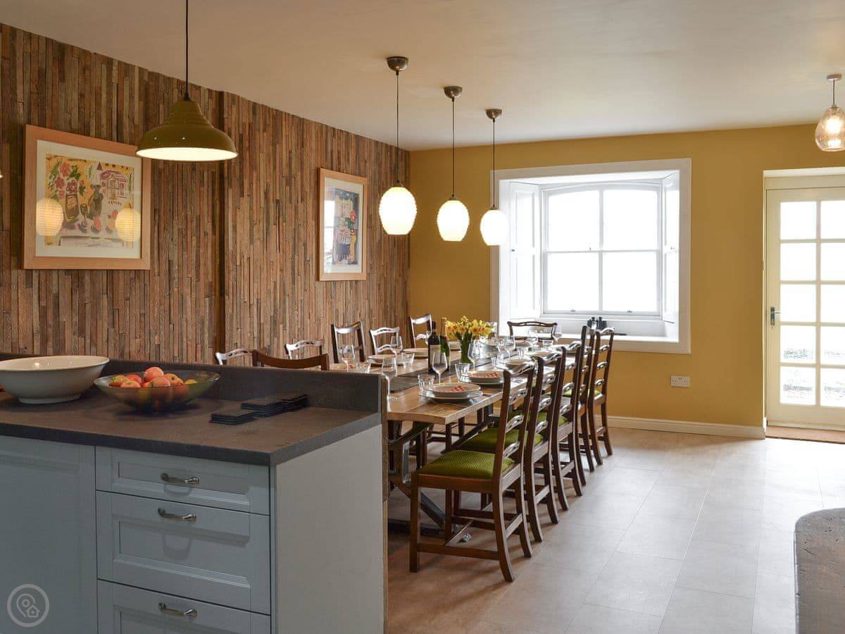 The kitchen and dining area is where everyone ends up. There's a big, custom-made table that seats everyone. The house is full of interesting furniture, things we've collected. It's a 5 Star place, which means it's well looked after and has everything you'd need.