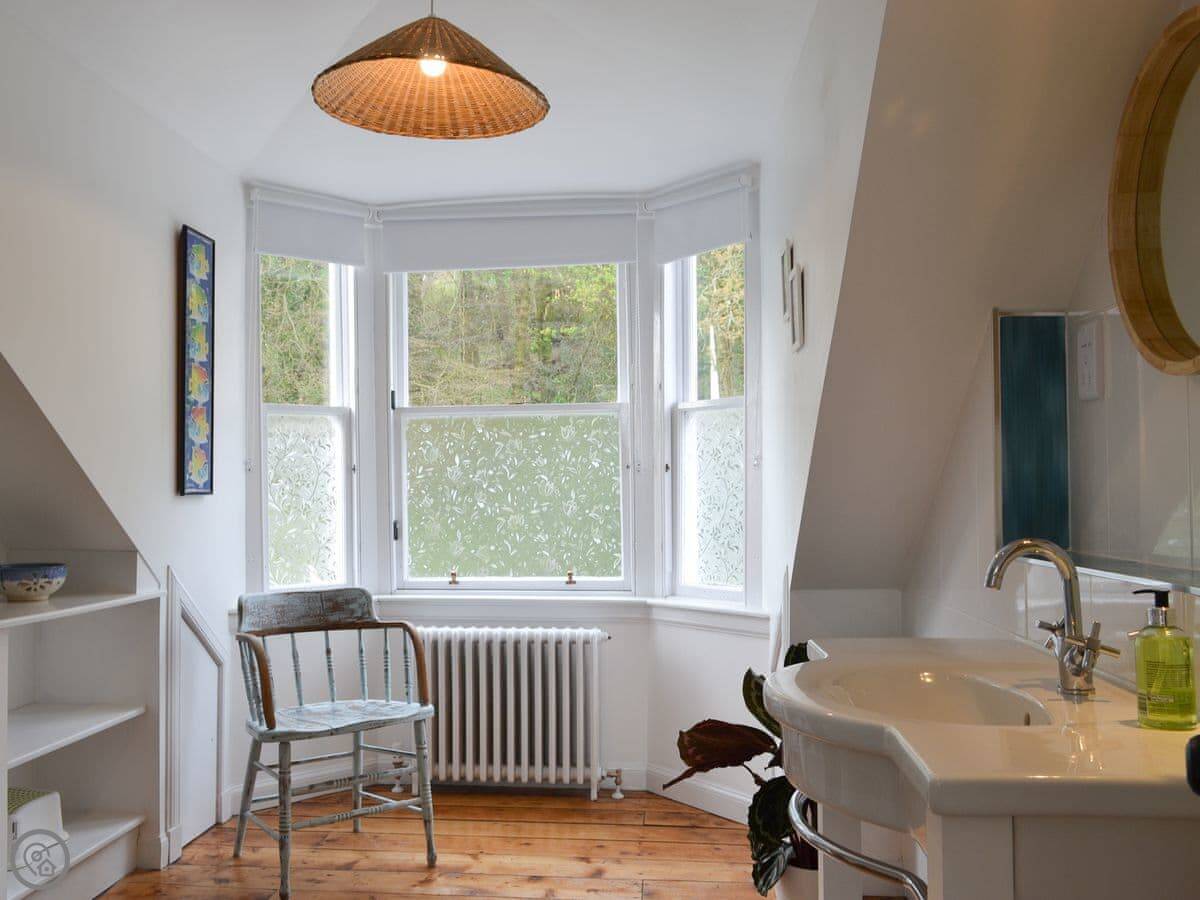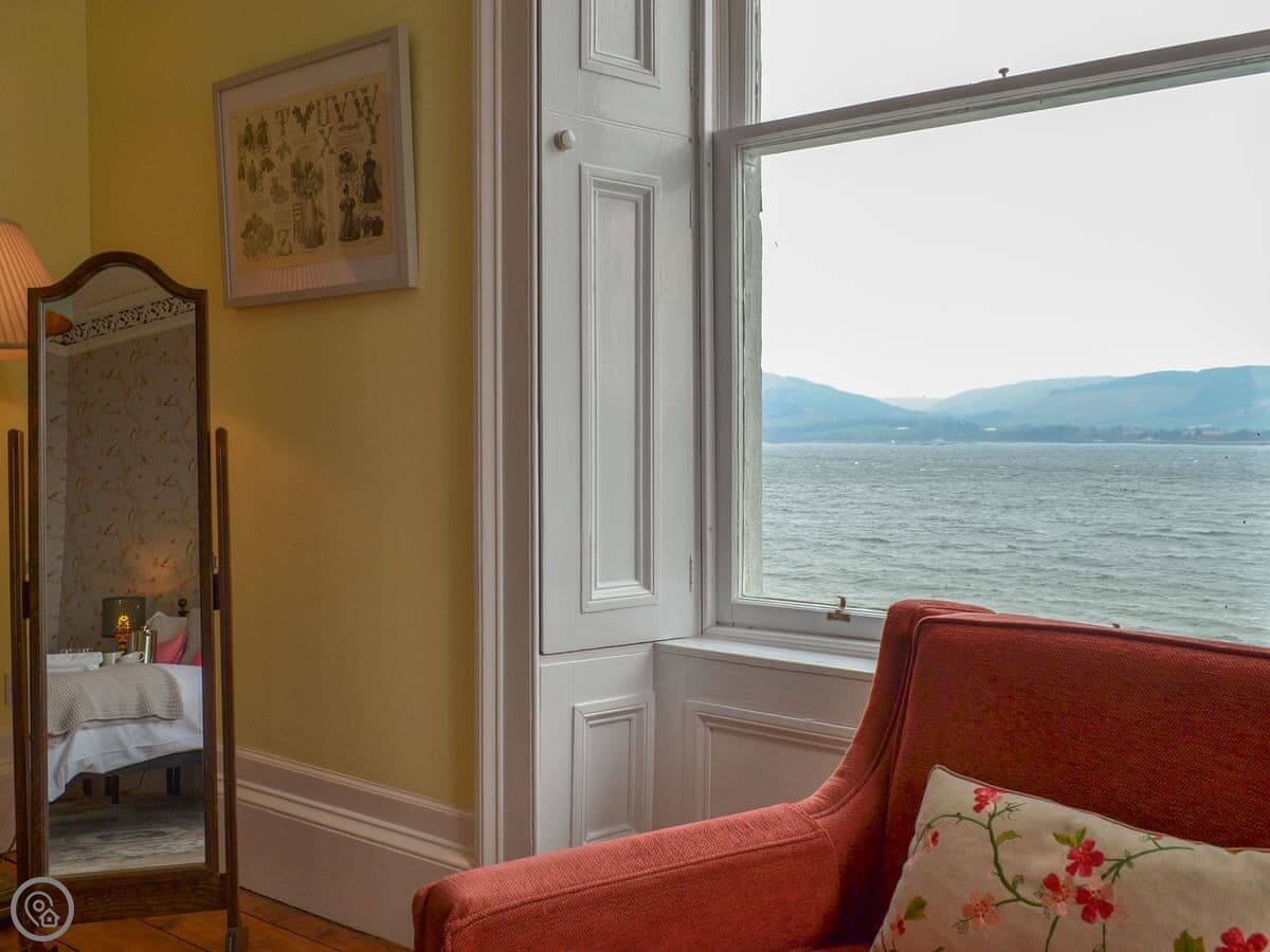 Fircliff is a big house right on the water in Port Bannatyne. It's Georgian, and it's listed. The garden is walled, so it's enclosed. The main thing is the view. Every main room looks straight out over Loch Striven and the Firth of Clyde. You don't get a view like that every day.
