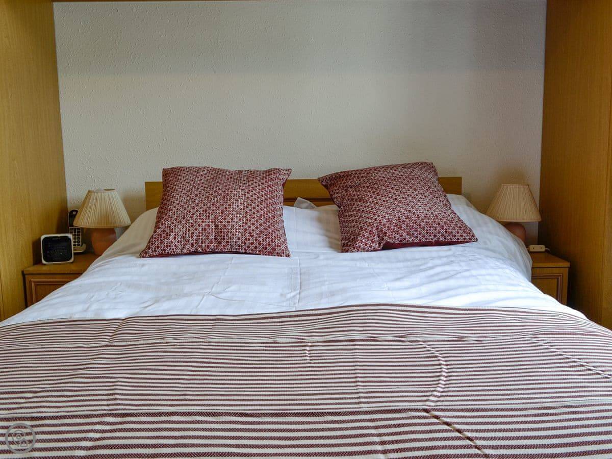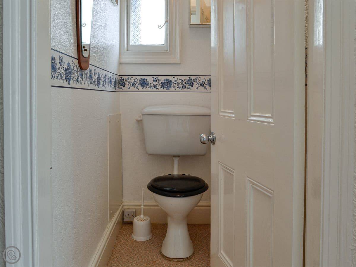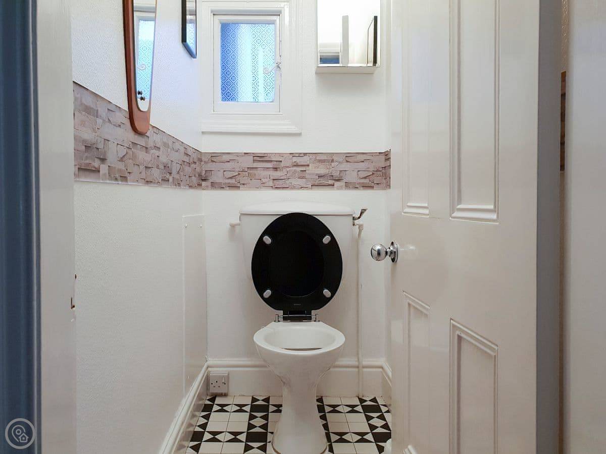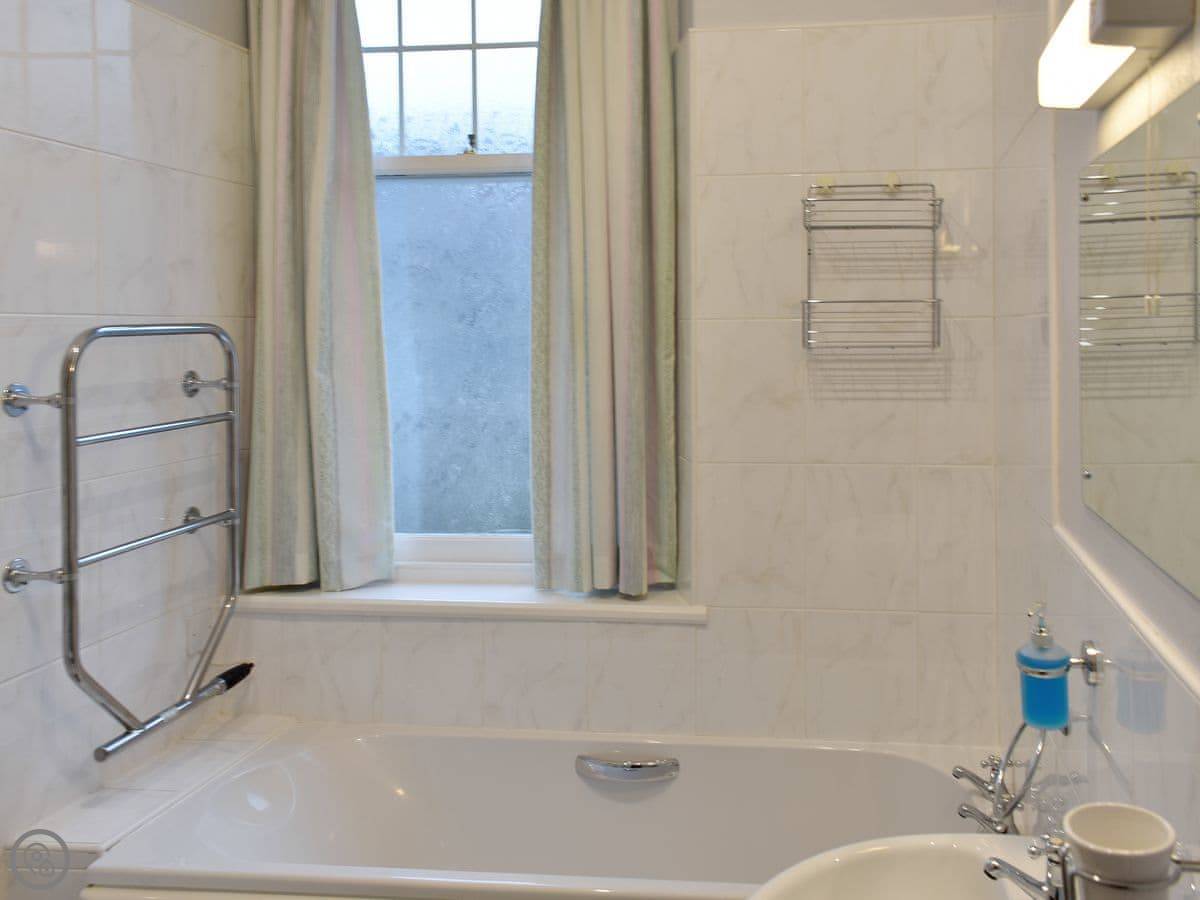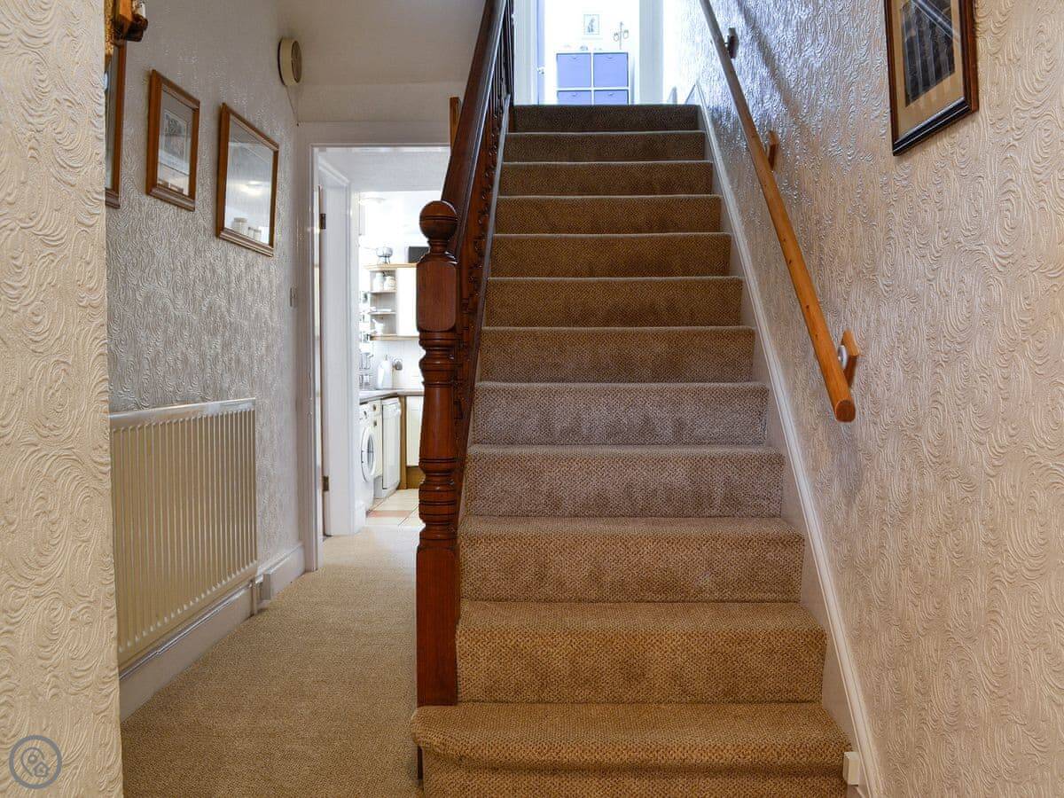 It sleeps five. Three bedrooms upstairs: a double, a twin, and a single. There's one bathroom with a bath and a separate shower cubicle, plus a downstairs loo. It's got a 3 Star rating. It's clean and practical, not luxury. The ceilings are high so it feels quite spacious inside.