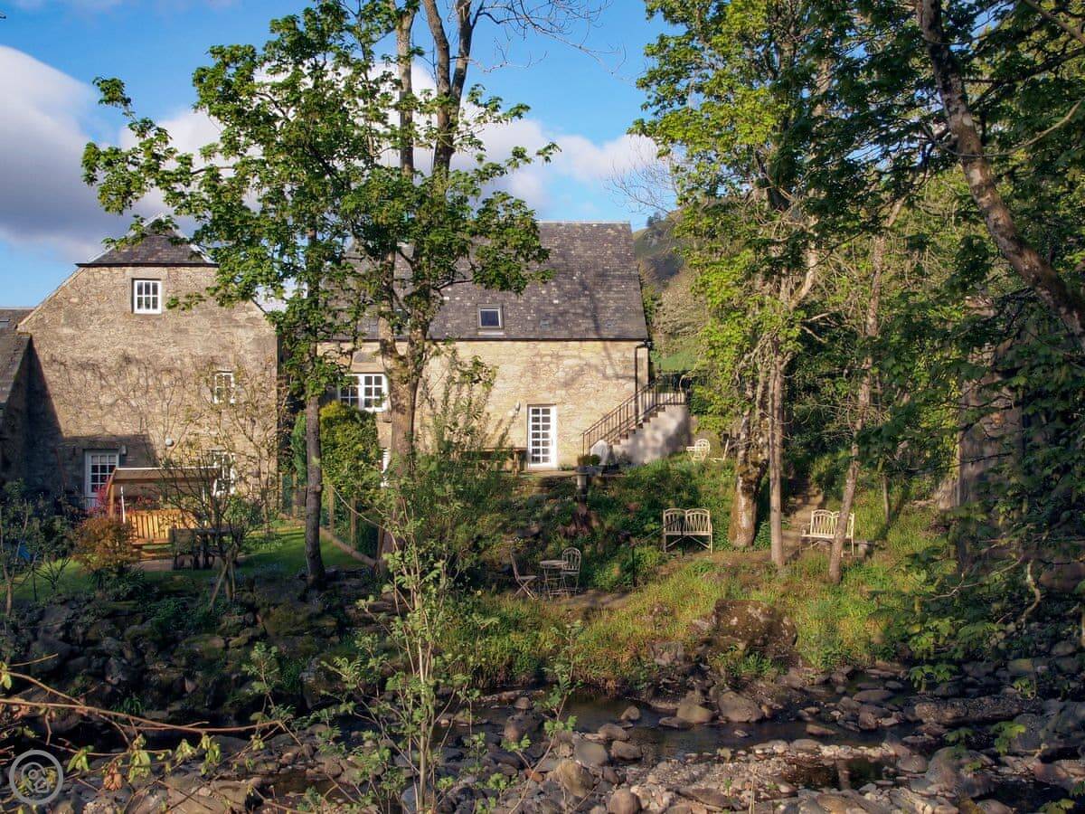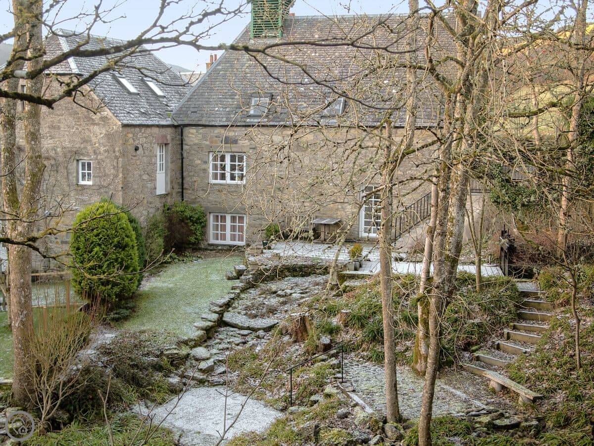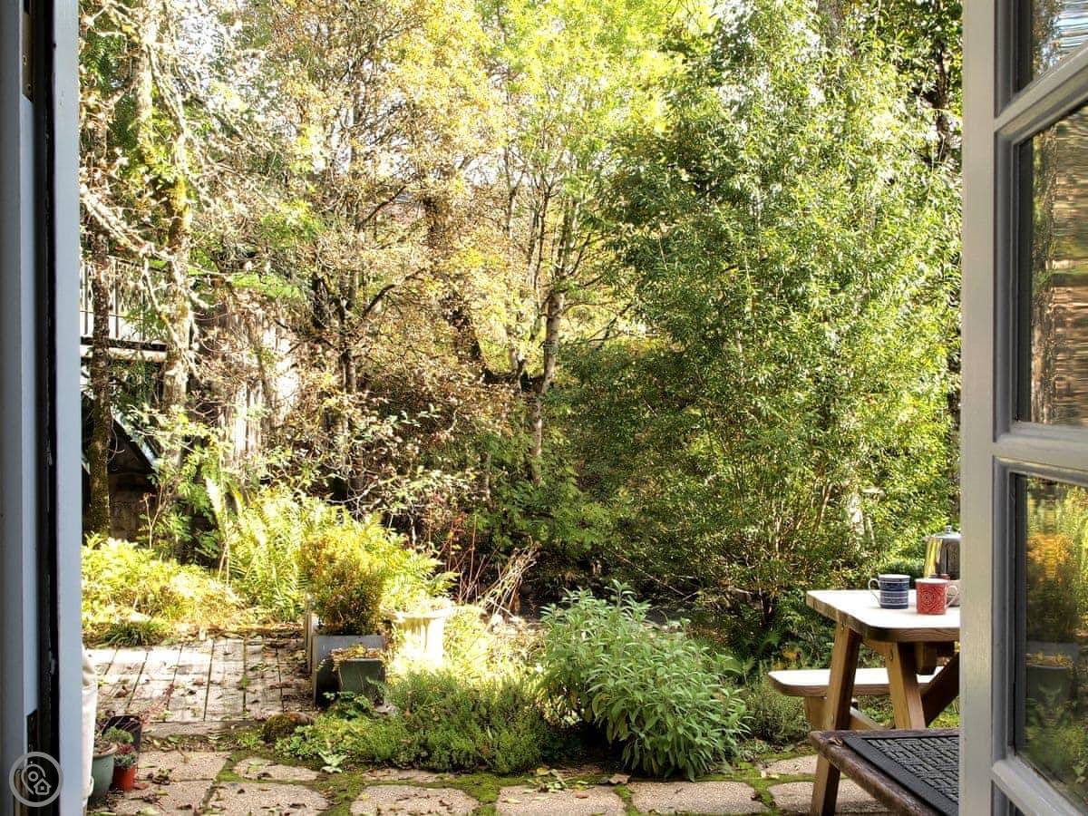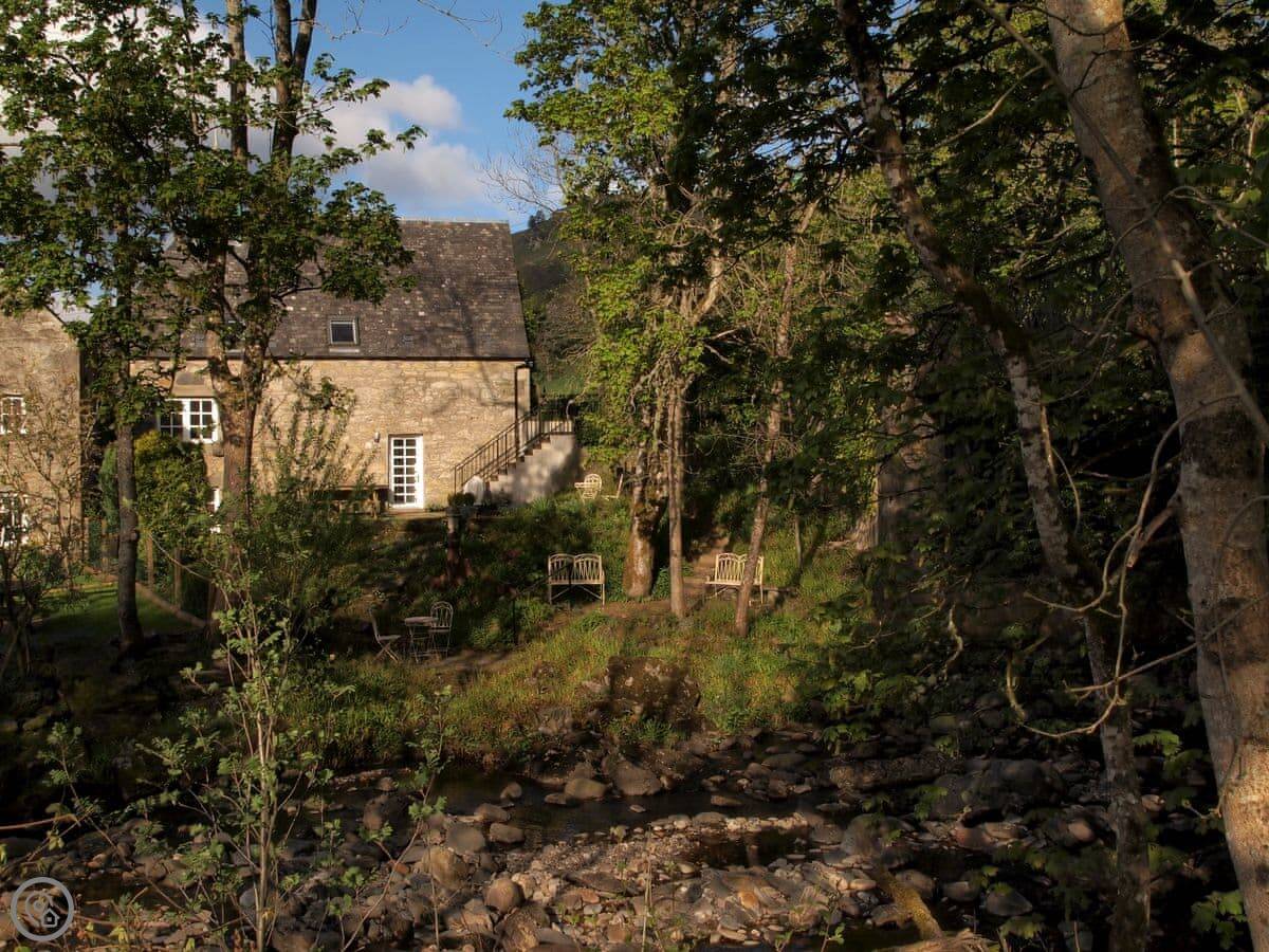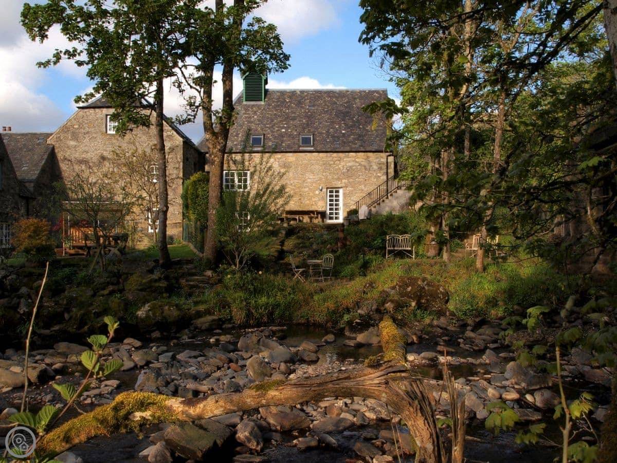 Outside, the natural landscape of the garden cascades down to the edge of the Keltney Burn in a series of terraces clustered around the old mill lade and what was once the tumbling run-off from its sluice. Outdoor living is well catered for: breakfast or dine, sit and read, or have a romantic glass of champagne together, as the burn splashes by. This is a place to just be and enjoy.