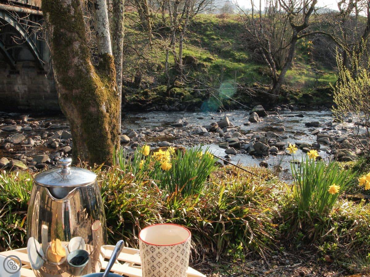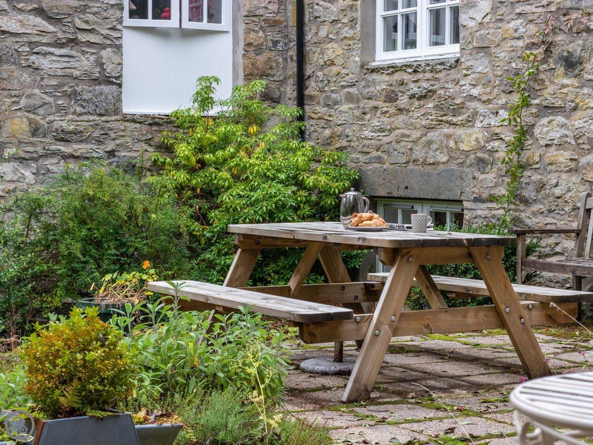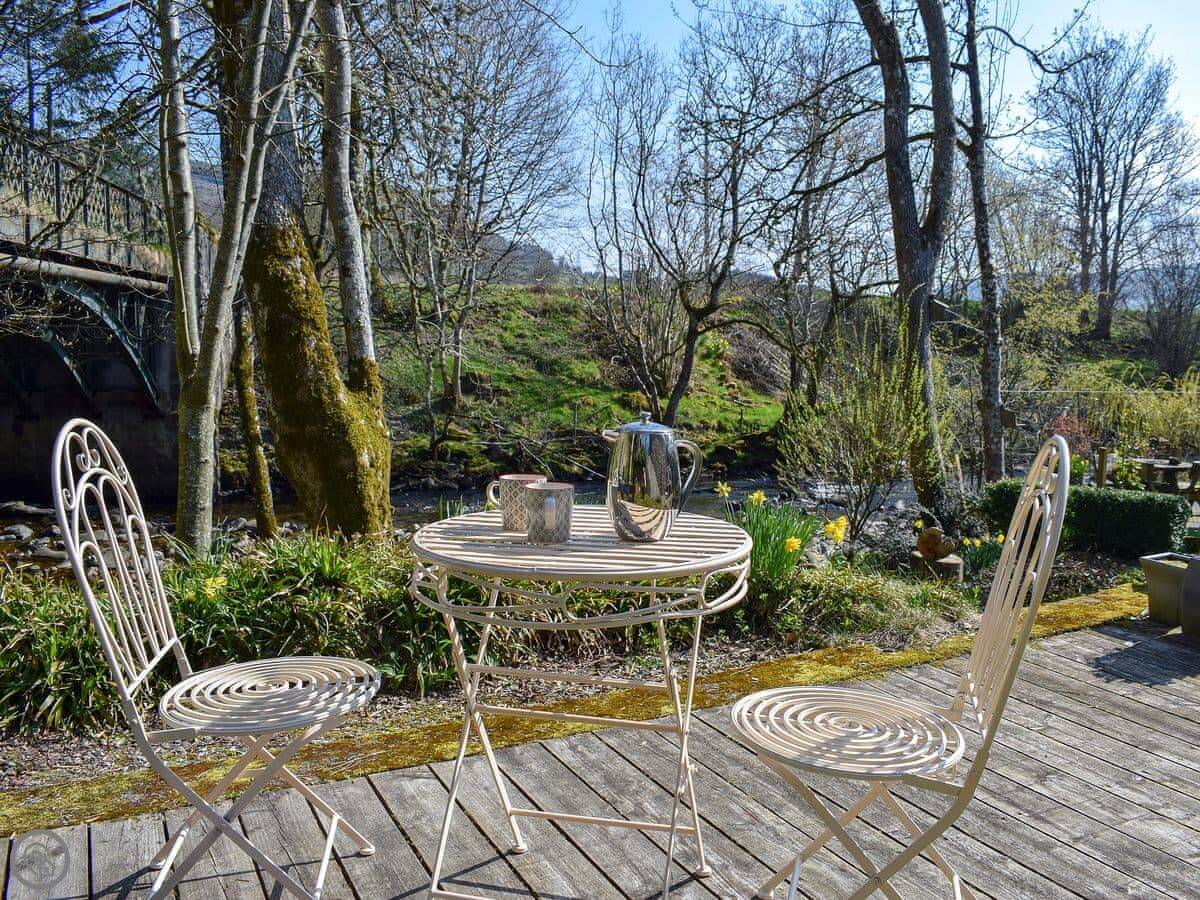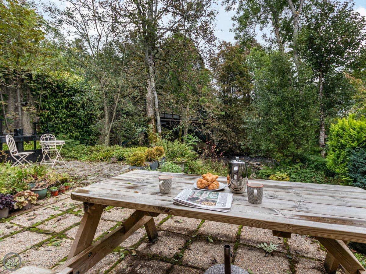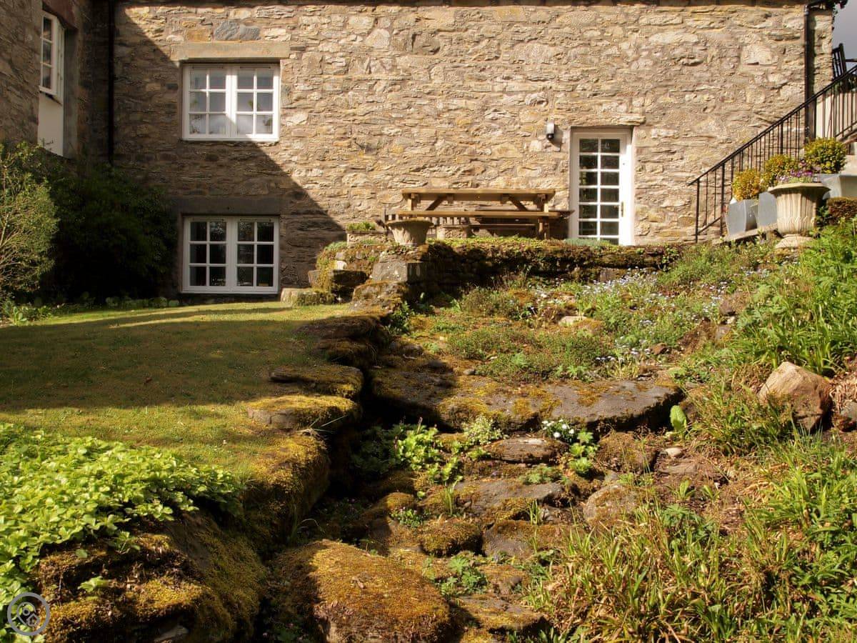 Outside, the natural landscape of the garden cascades down to the edge of the Keltney Burn in a series of terraces clustered around the old mill lade and what was once the tumbling run-off from its sluice. Outdoor living is well catered for: breakfast or dine, sit and read, or have a romantic glass of champagne together, as the burn splashes by. This is a place to just be and enjoy.
