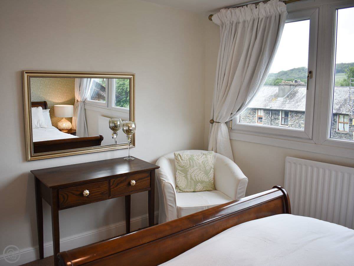 On the ground floor of this lovely property is an open plan living/dining room with a cosy lwood burner and plenty of comfy seating. There is a separate, large, well-equipped kitchen with everything you will need, as well as a separate downstairs toilet. There is an enclosed yard to the rear of the cottage with access to the lane to the rear. There are three welcoming bedrooms; the master bedroom enjoys views over Lakeland rooftops towards the hills Bannerrigg, Orrest Head and towards the mountains of the National Park where the peaks of the Langdale Valley are prominent . There is a large family bathroom on the first floor with a bath and a separate shower cubicle.