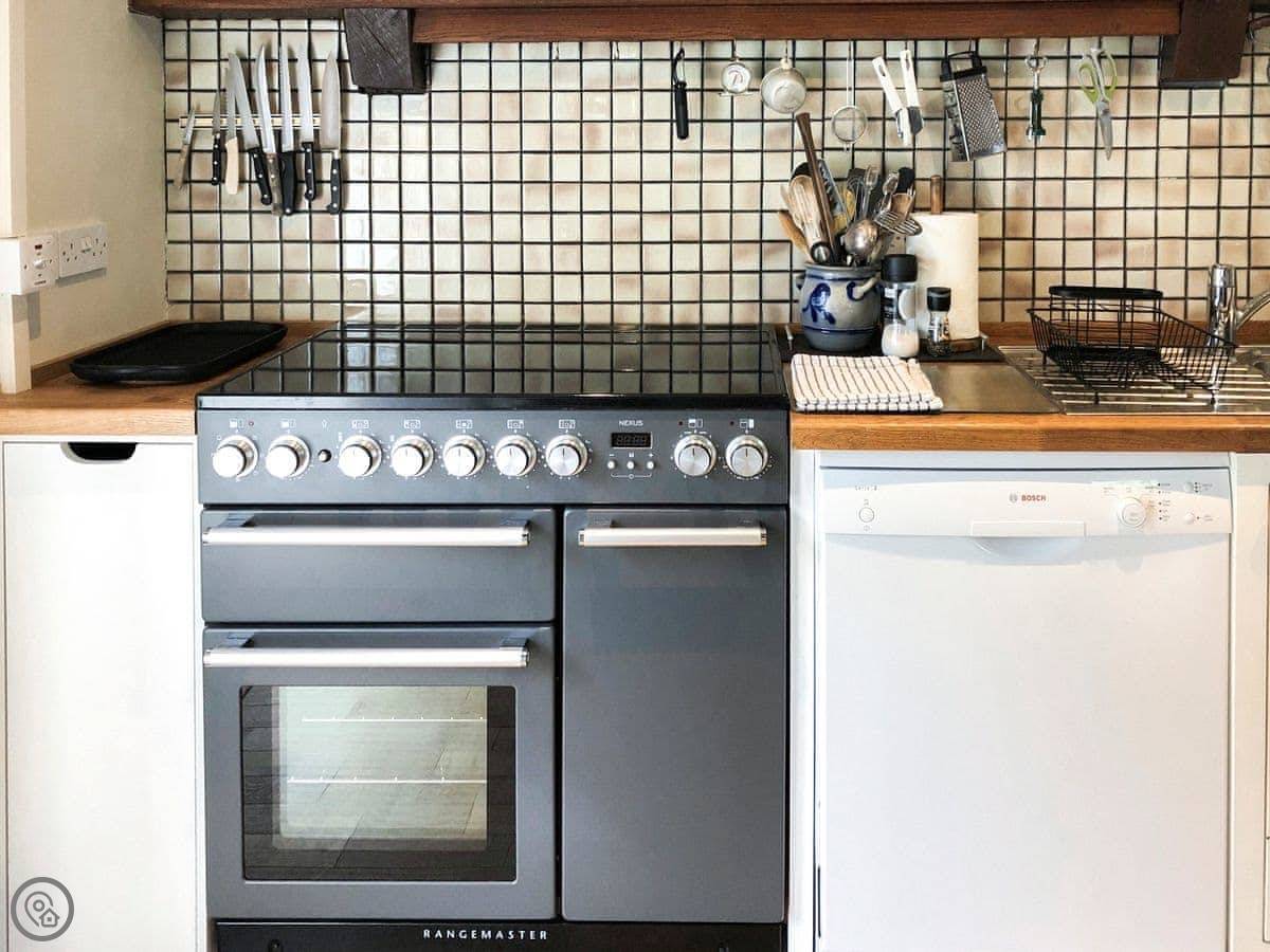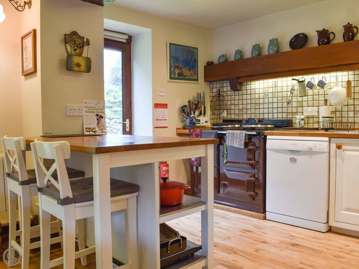 In terms of what's here, you've got the open fire, a garden area, parking, WiFi, TV, washing machine, and a dishwasher. Bedding and towels are included. There's a highchair if you need one.