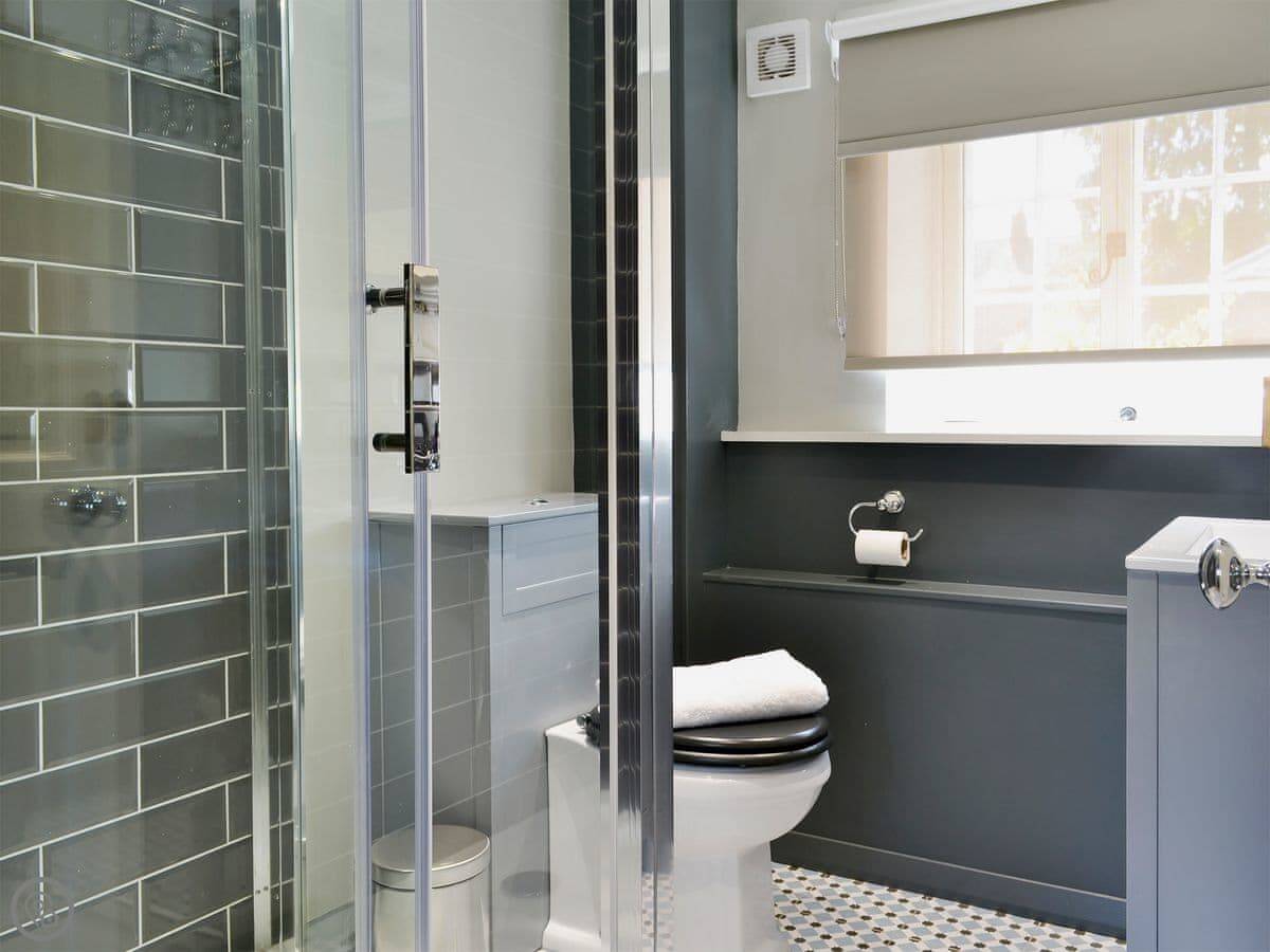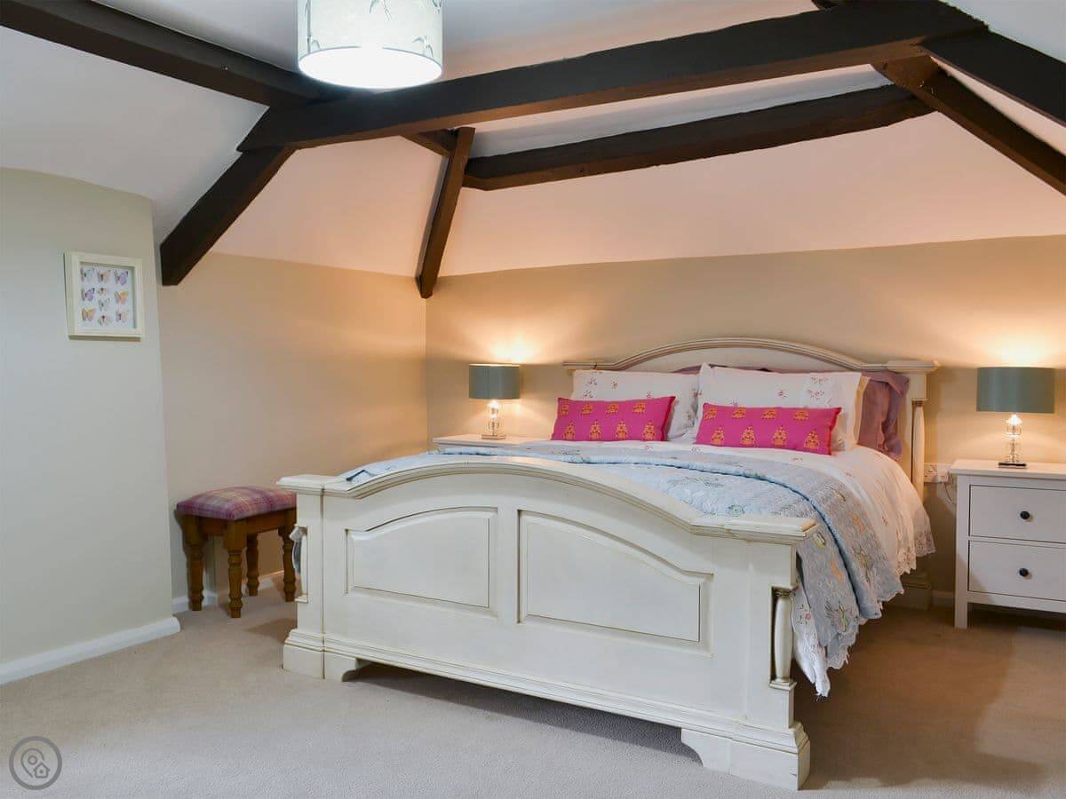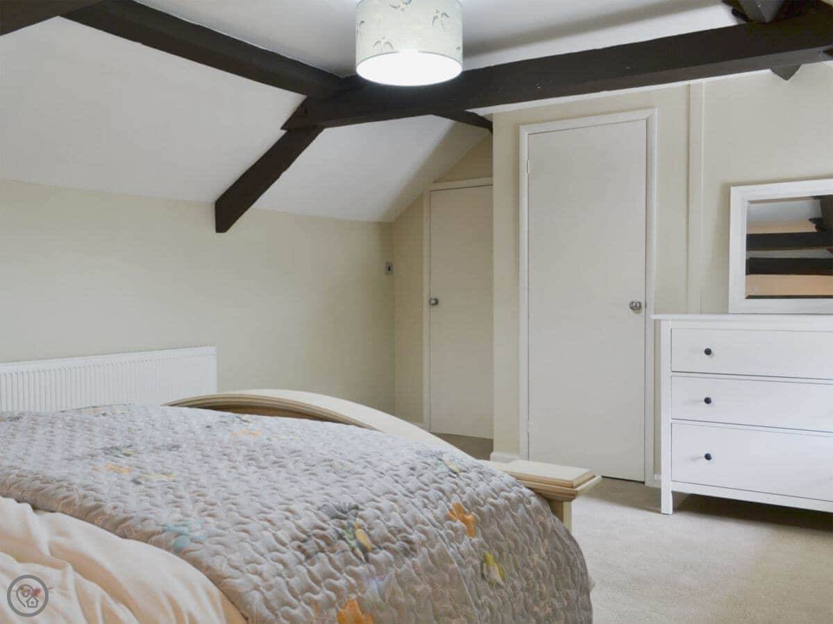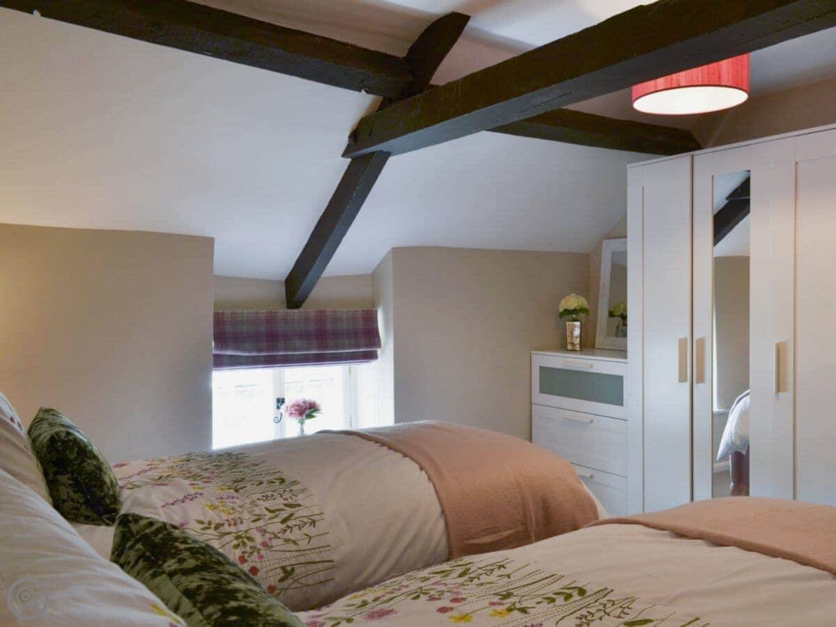 The cottage sleeps six. Three bedrooms, two bathrooms. It's a 4 Star property, so it's comfortable and well-kept. Being Grade II listed, it's full of character. The ceilings are low in places, and the stairs are cottage stairs, so they're steep. It's warm though, and there's a woodburning stove.