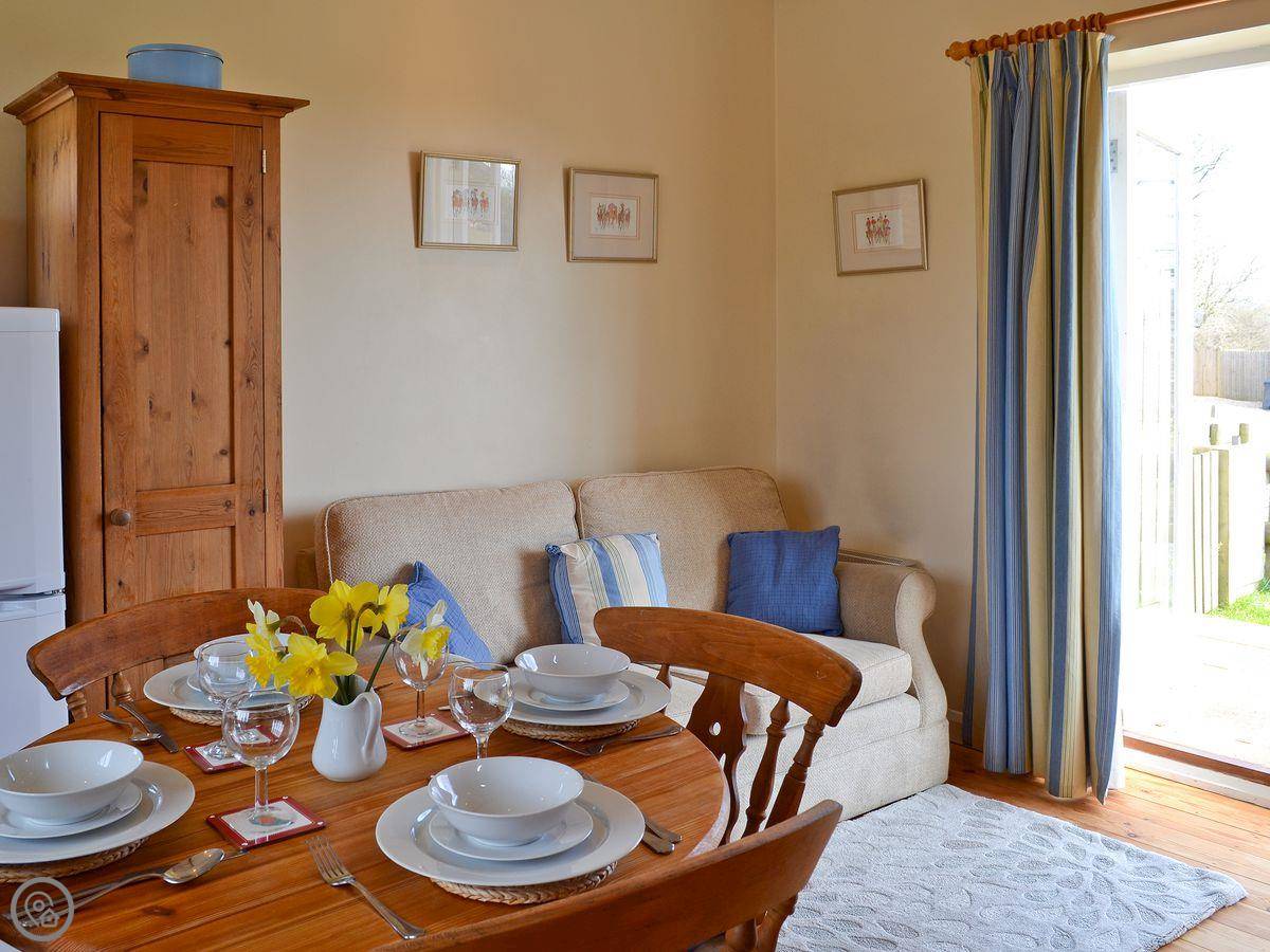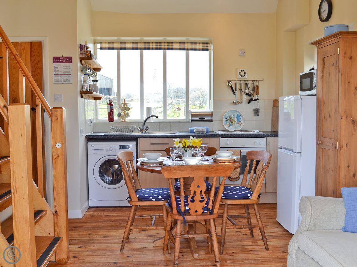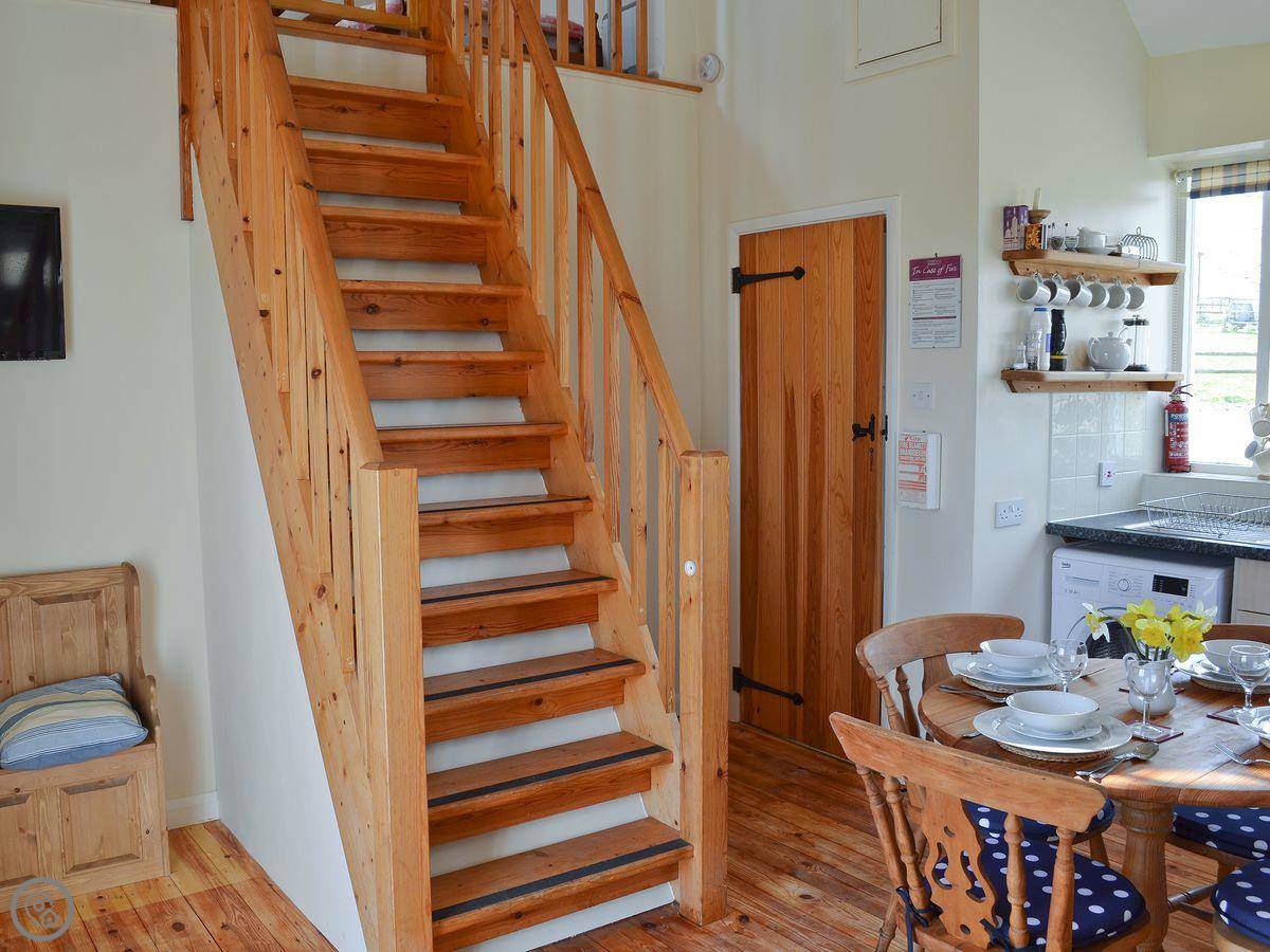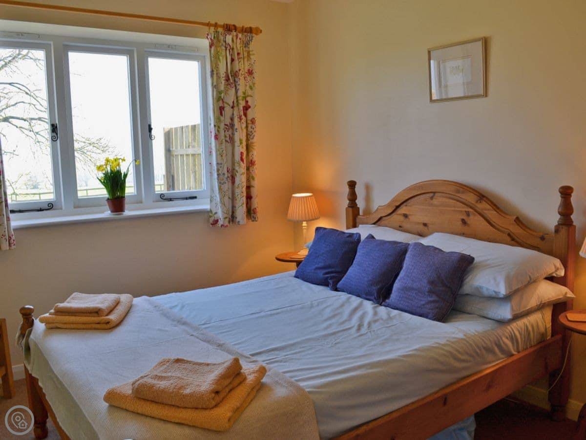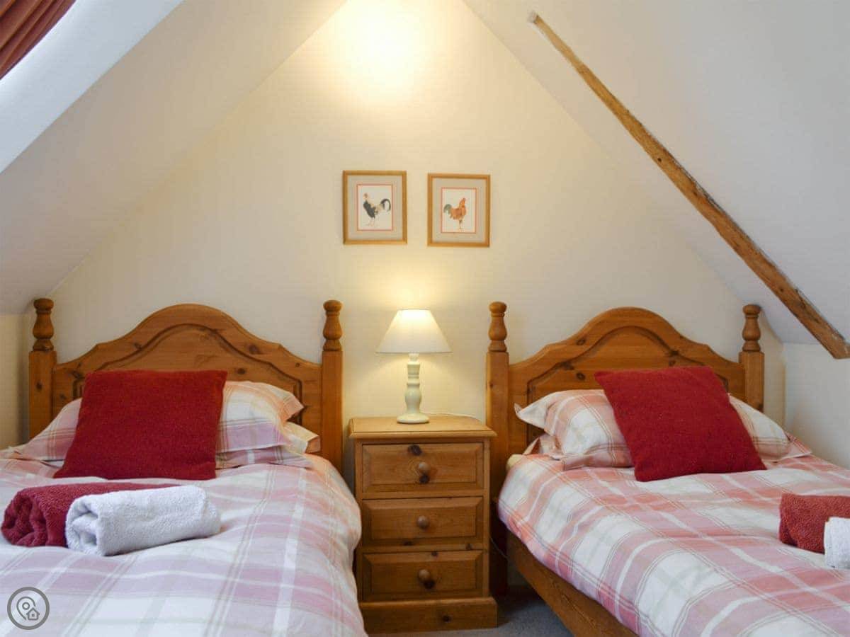 It sleeps four. Two bedrooms, one bathroom. It's a 3 Star place, so it's comfortable and clean. The main bedroom is on the ground floor, which is handy. There's a stairgate fitted for little ones. We can provide a cot and highchair if you need them.
