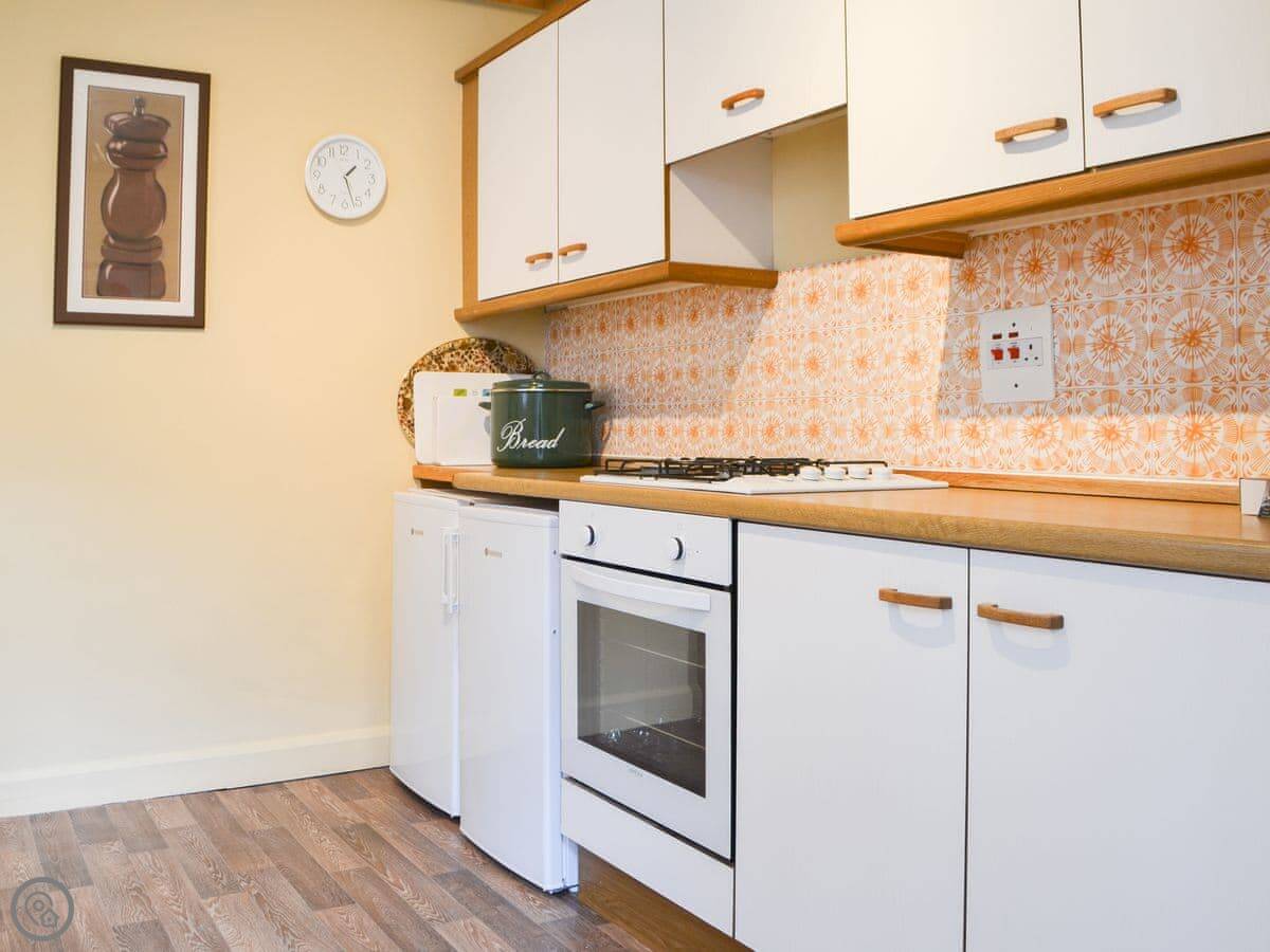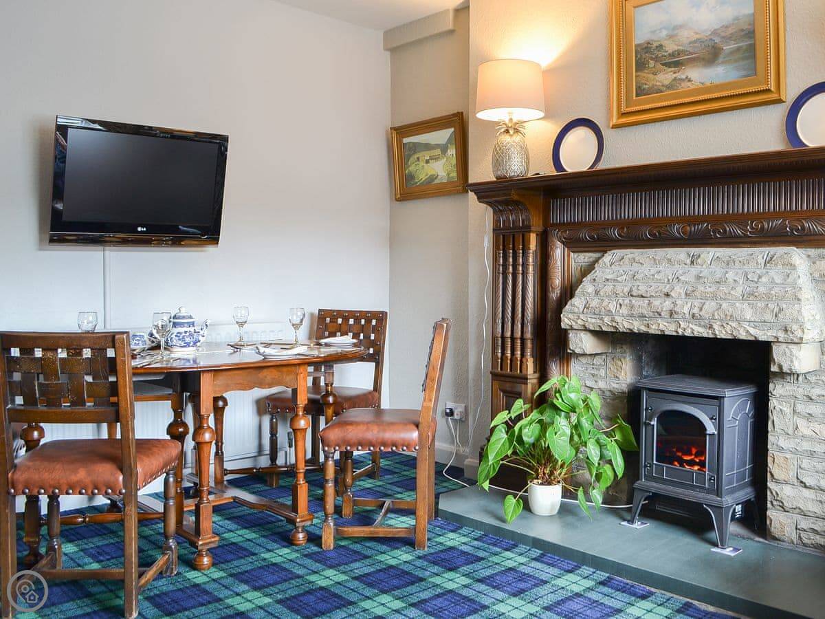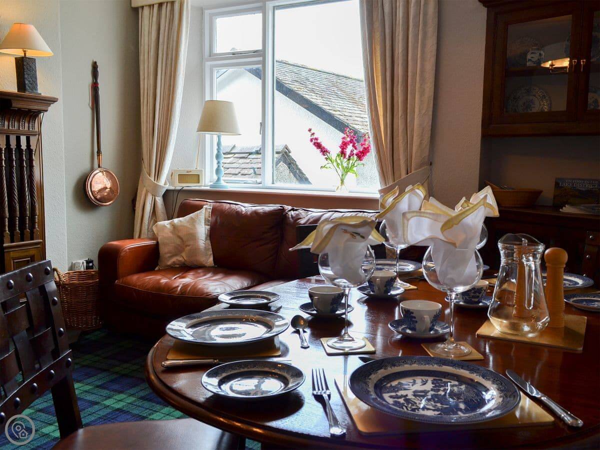 From the upstairs sitting room you get a view over the rooftops to Loughrigg Fell. The kitchen has a big table. There's a washing machine and a dishwasher.