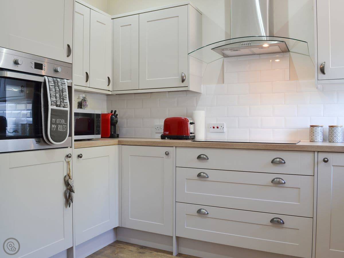Once inside, Steadings offers excellent accommodation, with a large open plan living room, beamed ceiling, comfy sofas, family-sized dining table and French doors opening onto the delightful patio seating area and mature gardens. A well-equipped kitchen has everything you need, but with so many good places to eat nearby, you could be easily tempted to leave the cooking for another time. A staircase with characterful exposed sandstone brickwork leads to the first floor where three good-sized bedrooms offer two doubles and a single, with the master having an en-suite shower room.