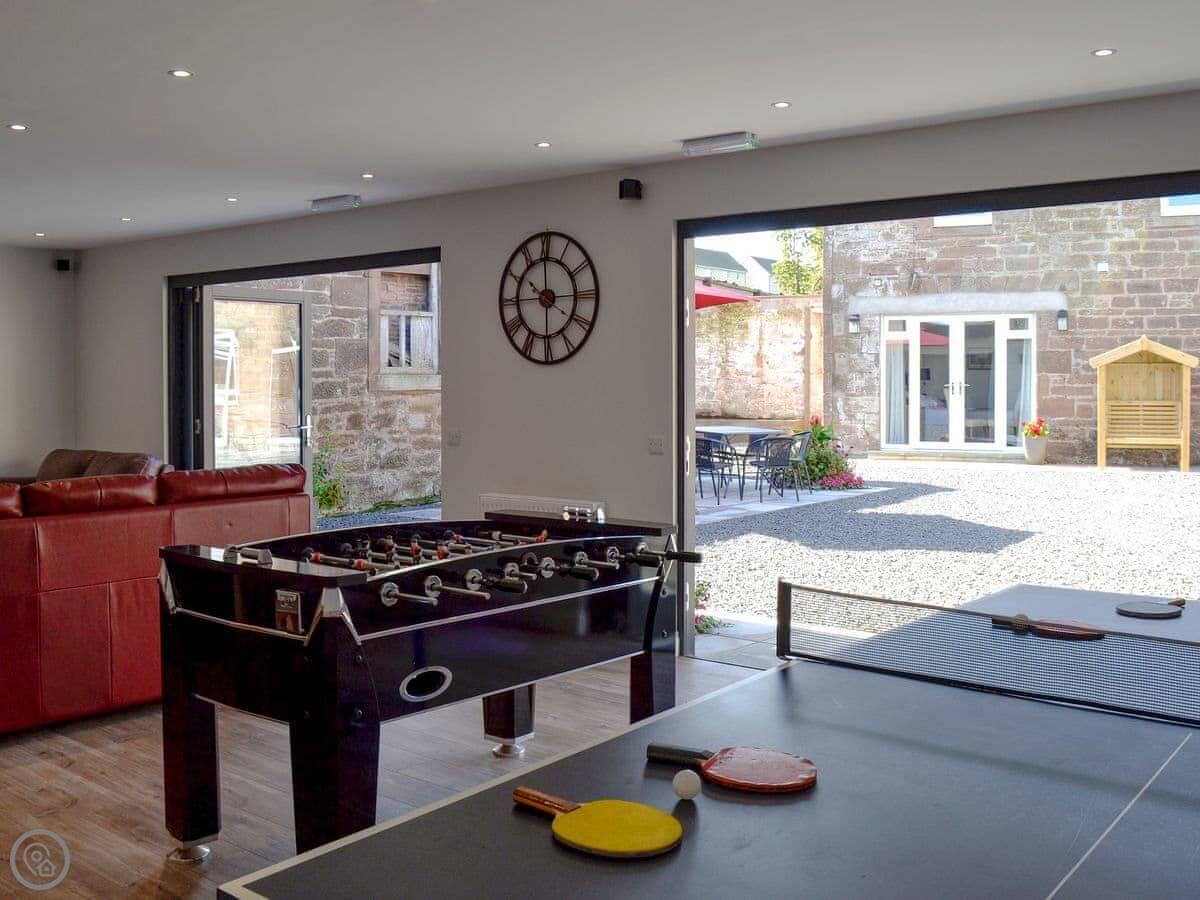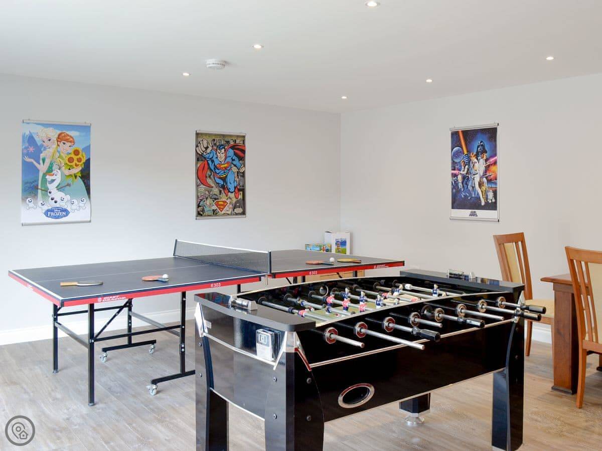 The main thing is the space. It's good for big groups or family get-togethers. There's a games room in a separate building outside, which is handy. The garden is enclosed. There's on-site parking and an electric vehicle charger.