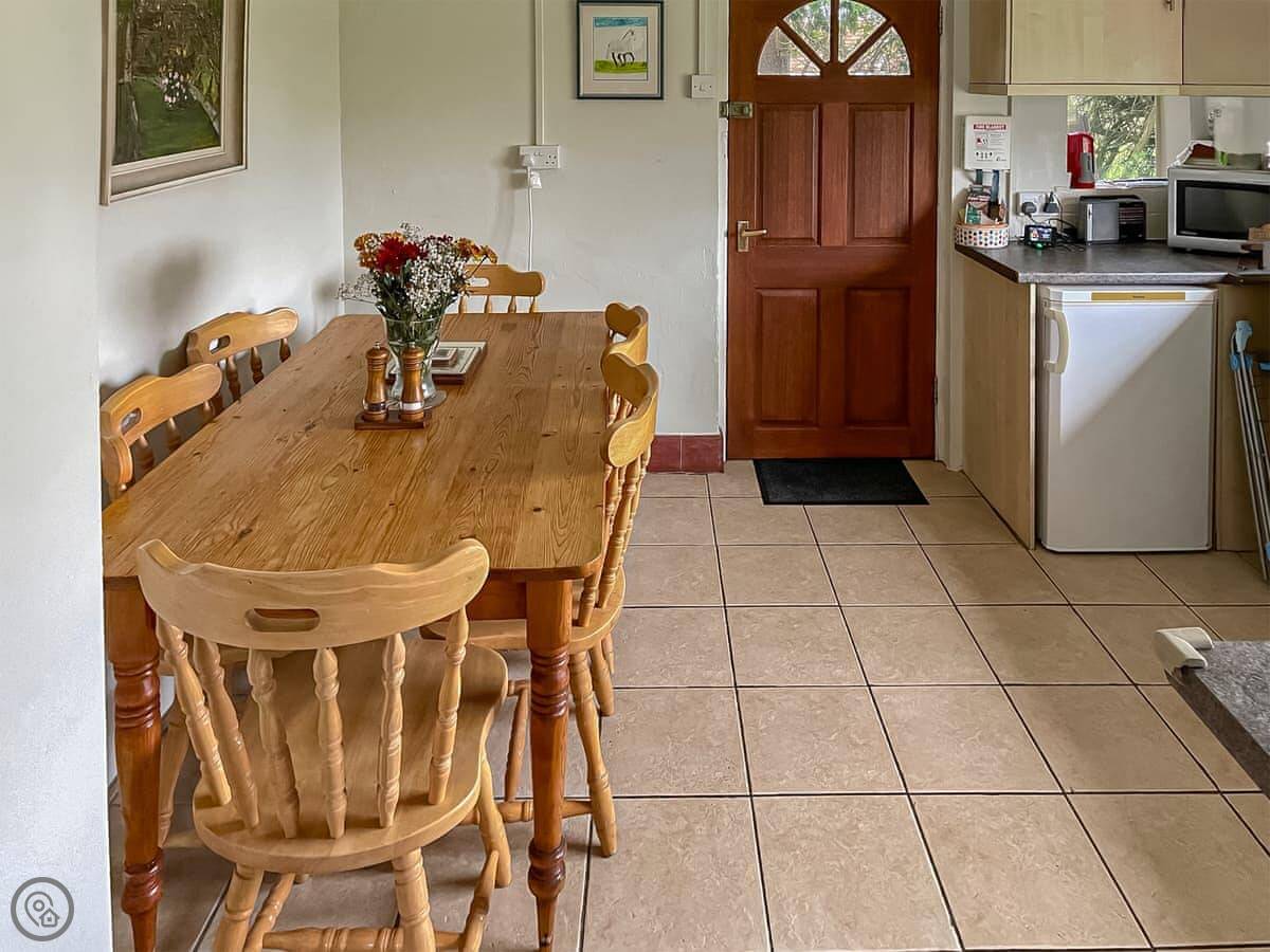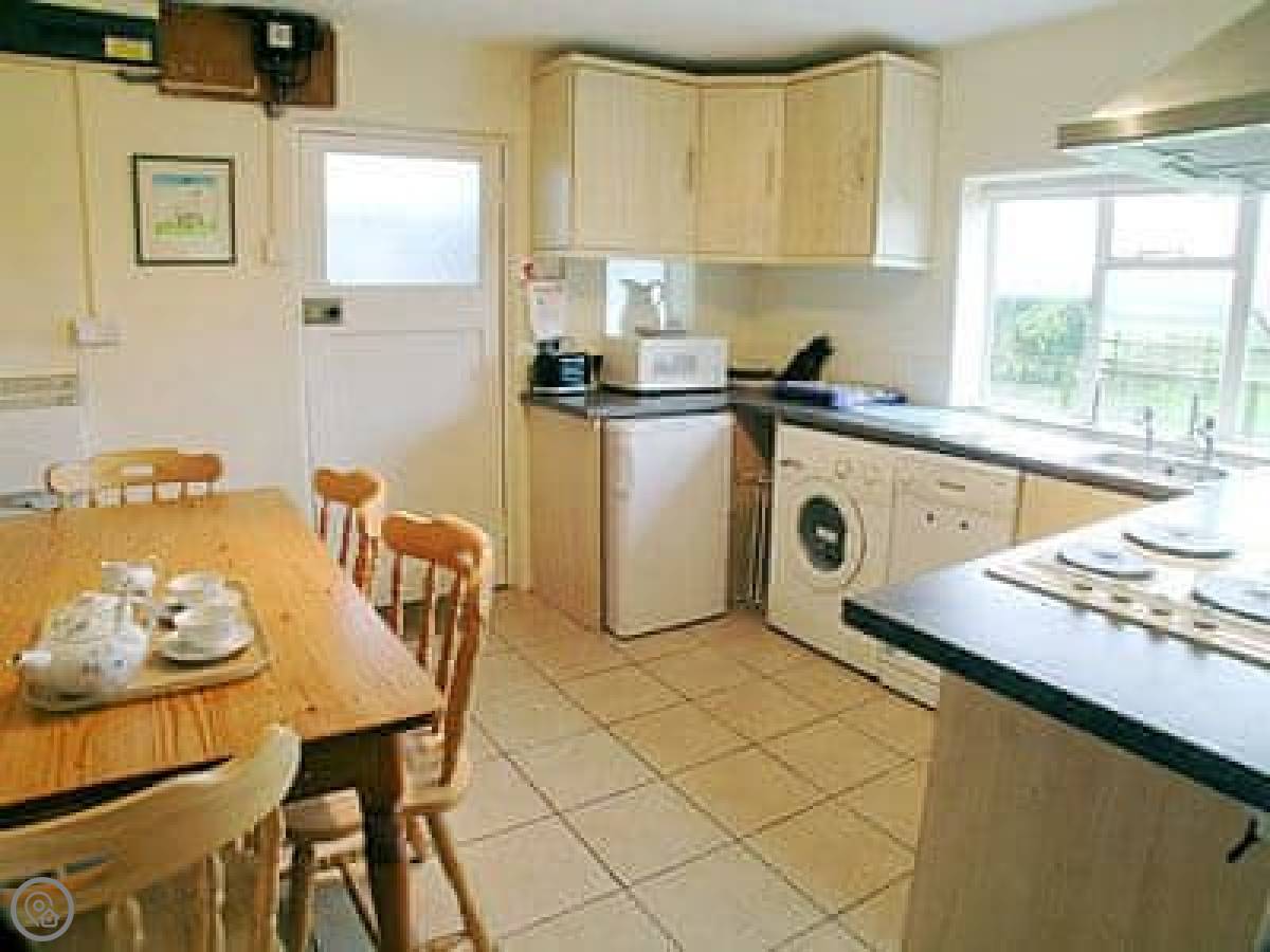 You can bring two dogs if you want. There’s bedding and towels for everyone, and a washing machine and dishwasher. The heating is storage heaters. And there’s a woodburning stove in the sitting room, which makes it nice in the evenings. We leave you a starter pack of logs.