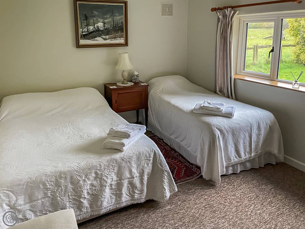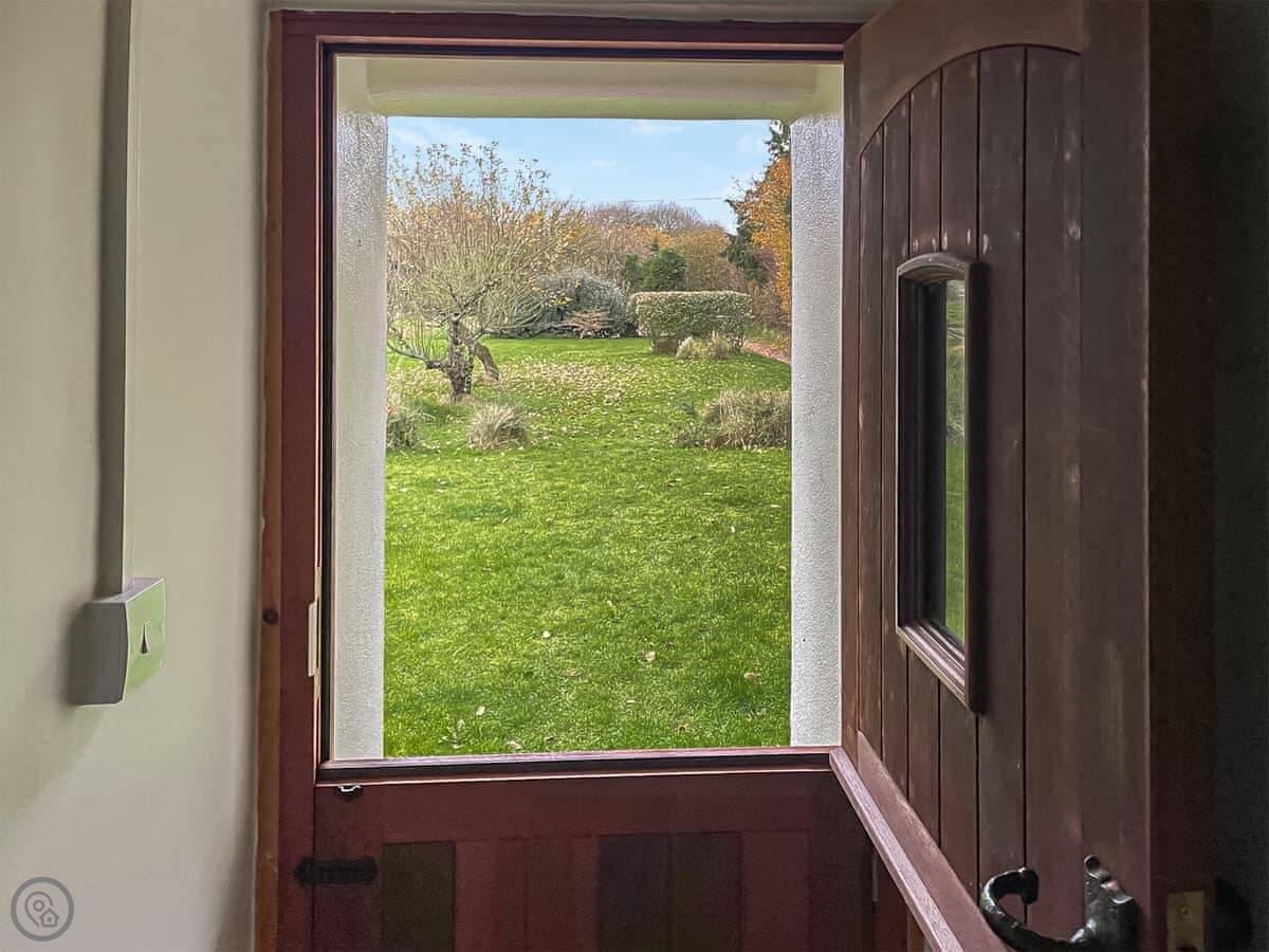 Edgecoombe is a bungalow. It's detached and sits on its own in a farmyard, out in the fields. You look out the windows and it’s just hills. The garden is yours. It’s a patio garden. There’s parking right outside.