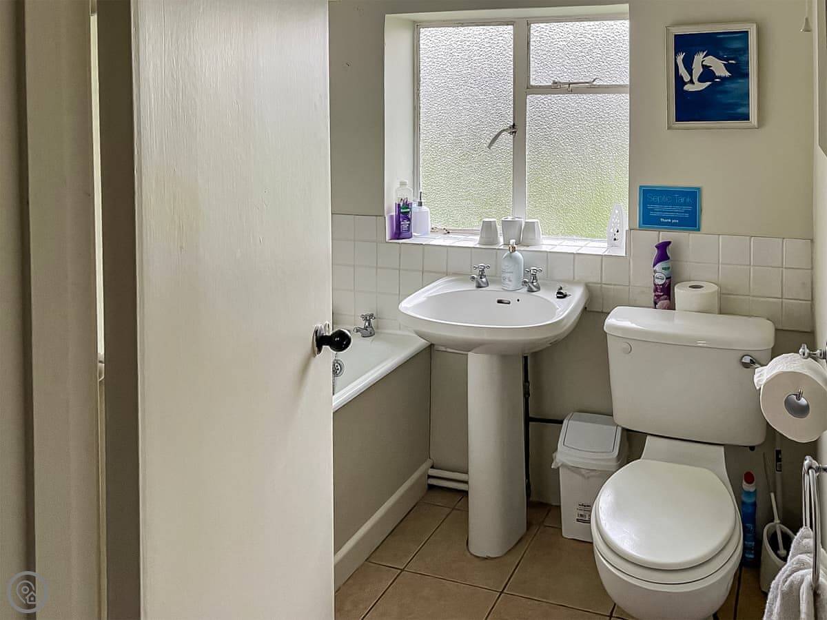 It sleeps five people. Two bedrooms, one bathroom. That’s a shower, not a bath. It’s got a two star rating. That means it’s comfortable and clean, but things might be a bit older. The toilet is separate from the bathroom.