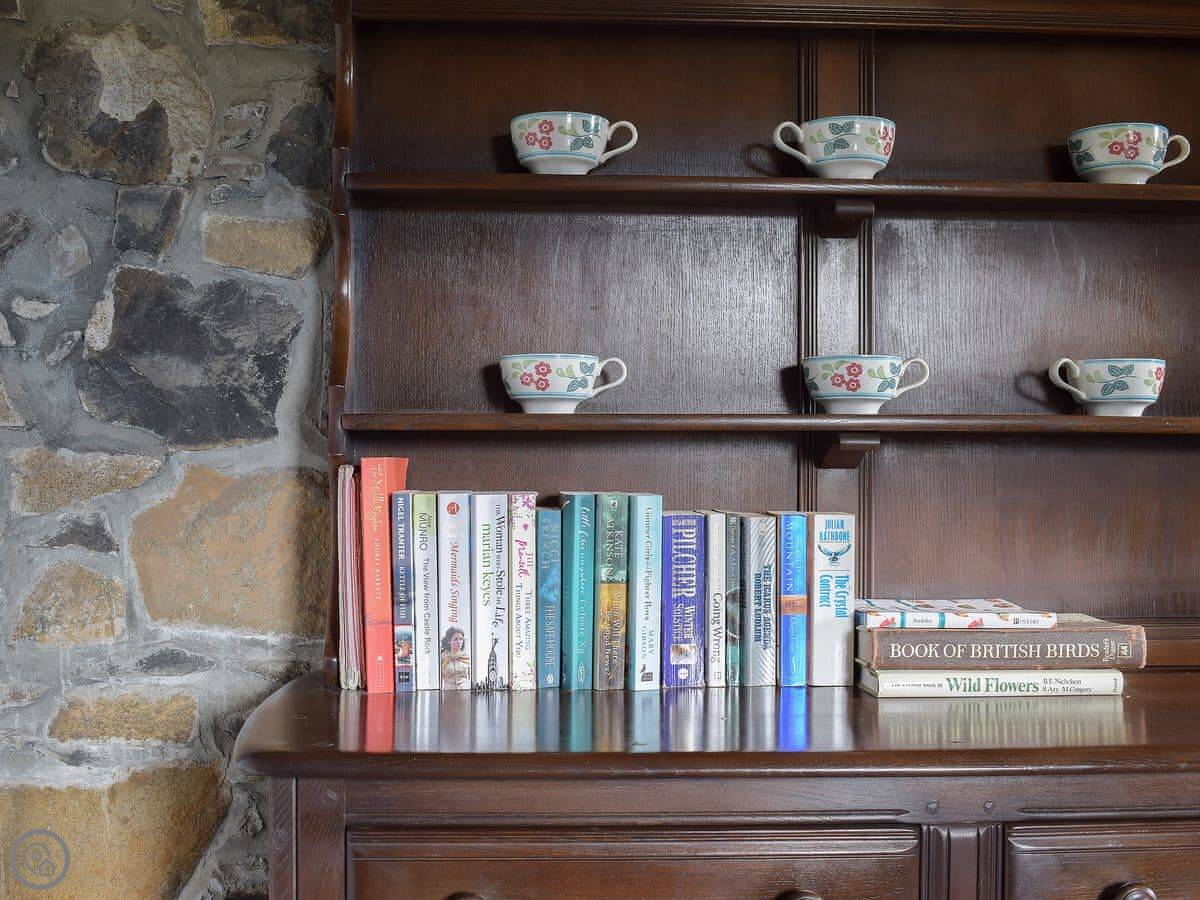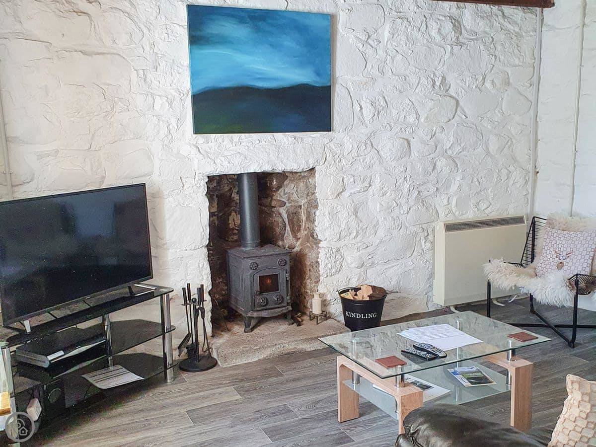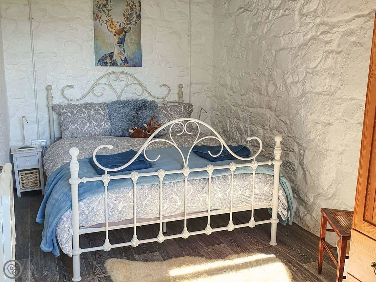 It sleeps two. One bedroom, one bathroom with a shower. It's got a wood burner in the living room and a separate dining room. It's a 4 Star place, which means it's comfortable and well-kept. It's been restored, so it's old but solid.