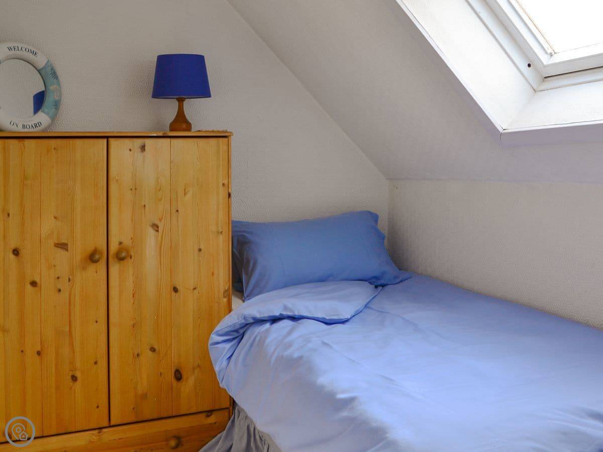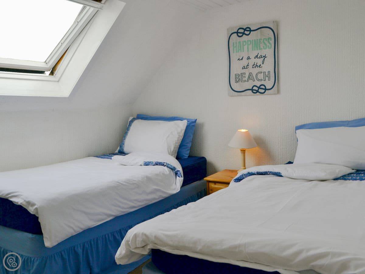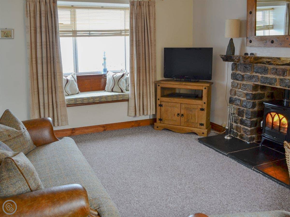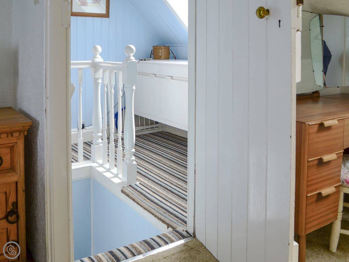 It sleeps five. Three bedrooms, one bathroom. It's a 3 Star place, so it's comfortable and clean but not swanky. There's a proper coal fire in the living room. The stairs are worth mentioning: they're the original, narrow cottage stairs. You'll want to watch your step.